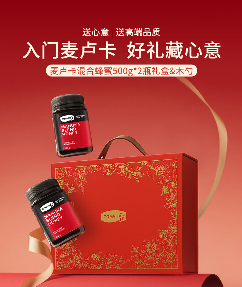 康维他(Comvita)新西兰麦卢卡混合蜂蜜礼盒装500g*2瓶年货礼盒春节过年送长辈礼物