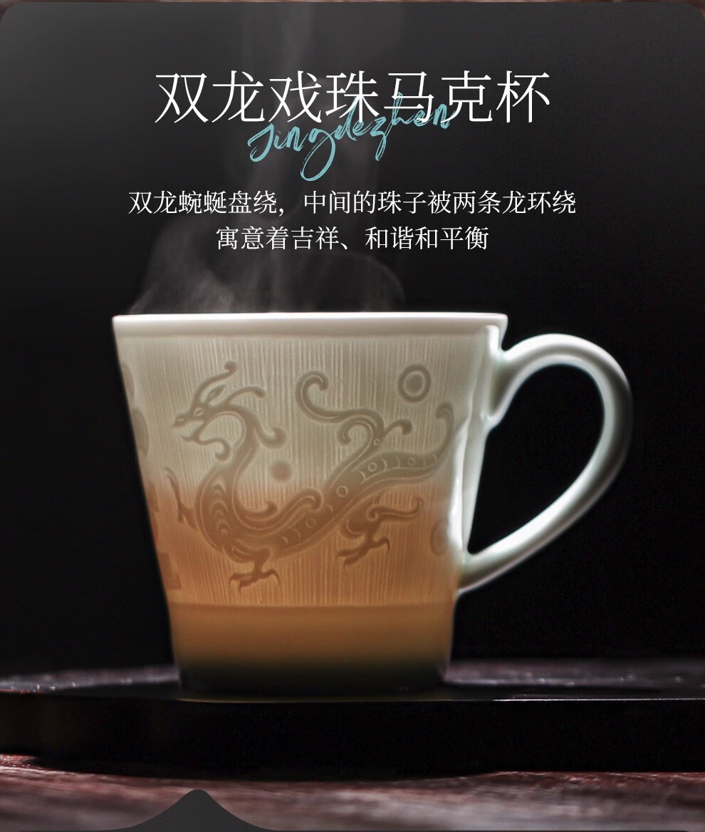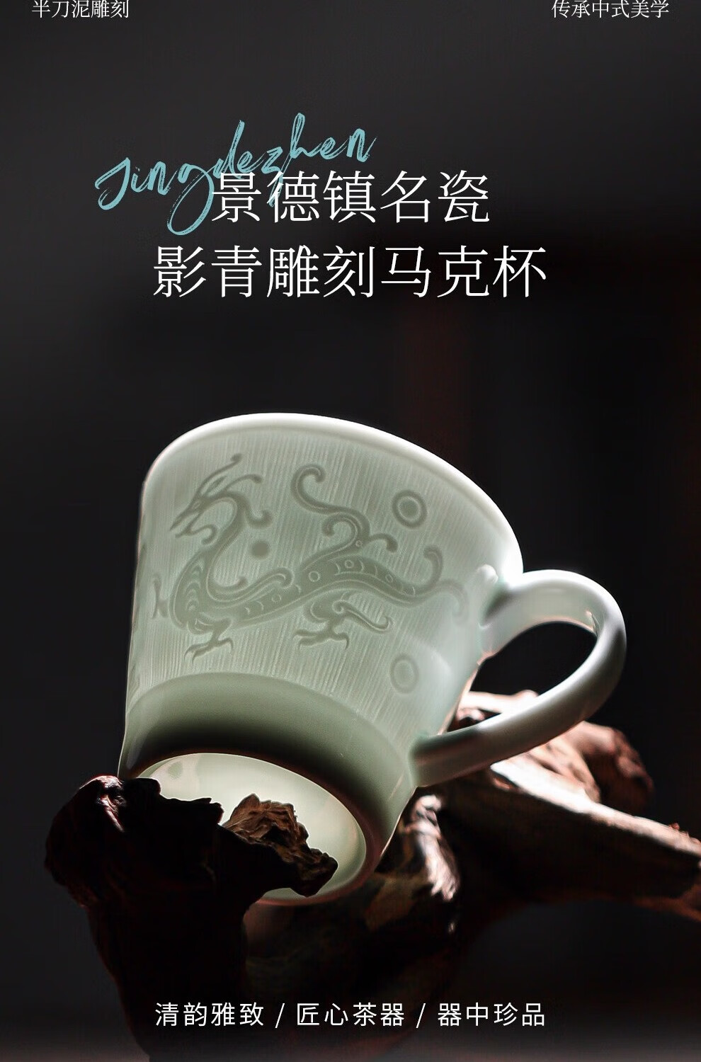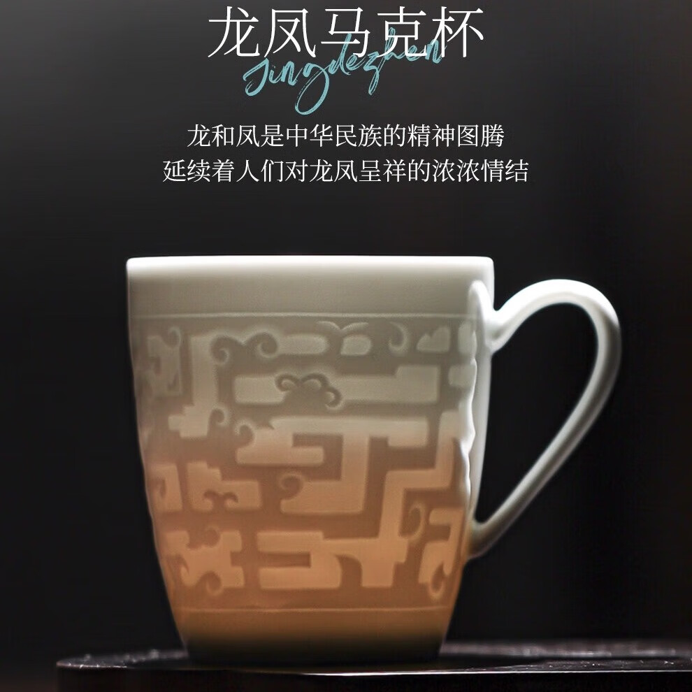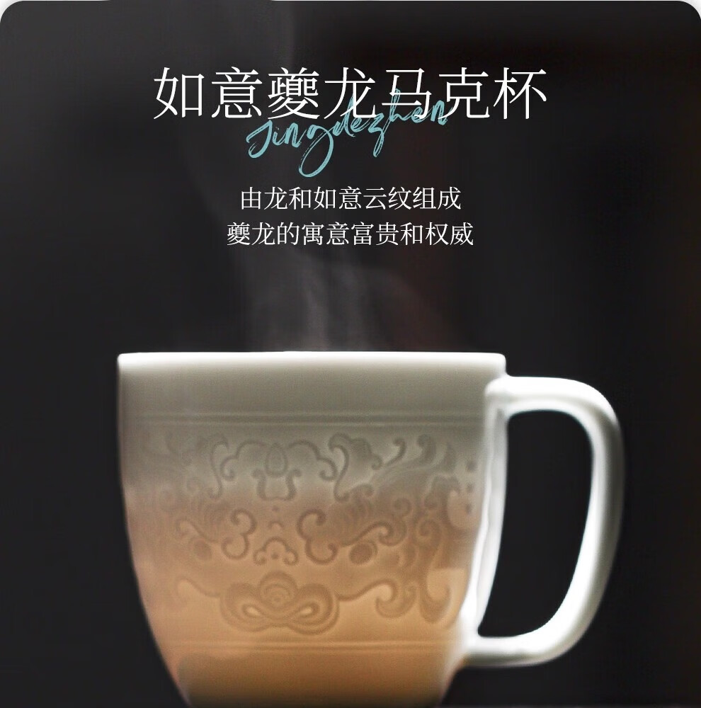jdz陶瓷影青白瓷马克杯家用办公室水杯高档高颜值送礼礼物咖啡杯 如意夔龙马克杯