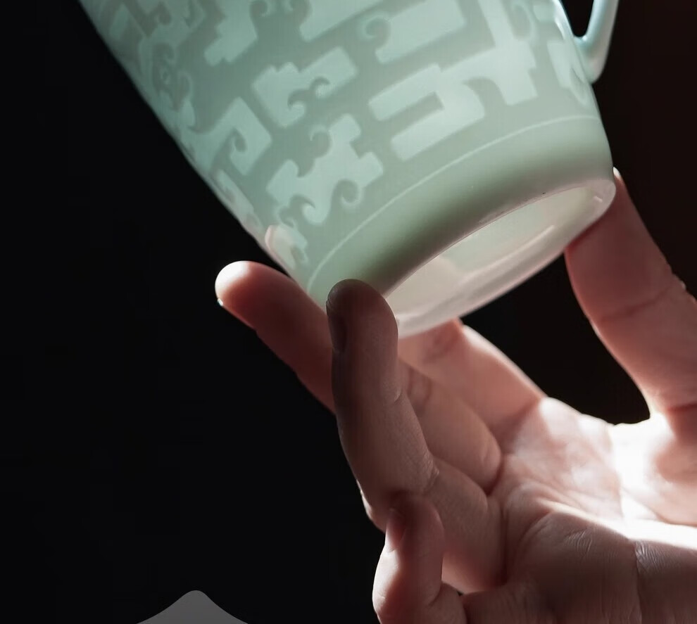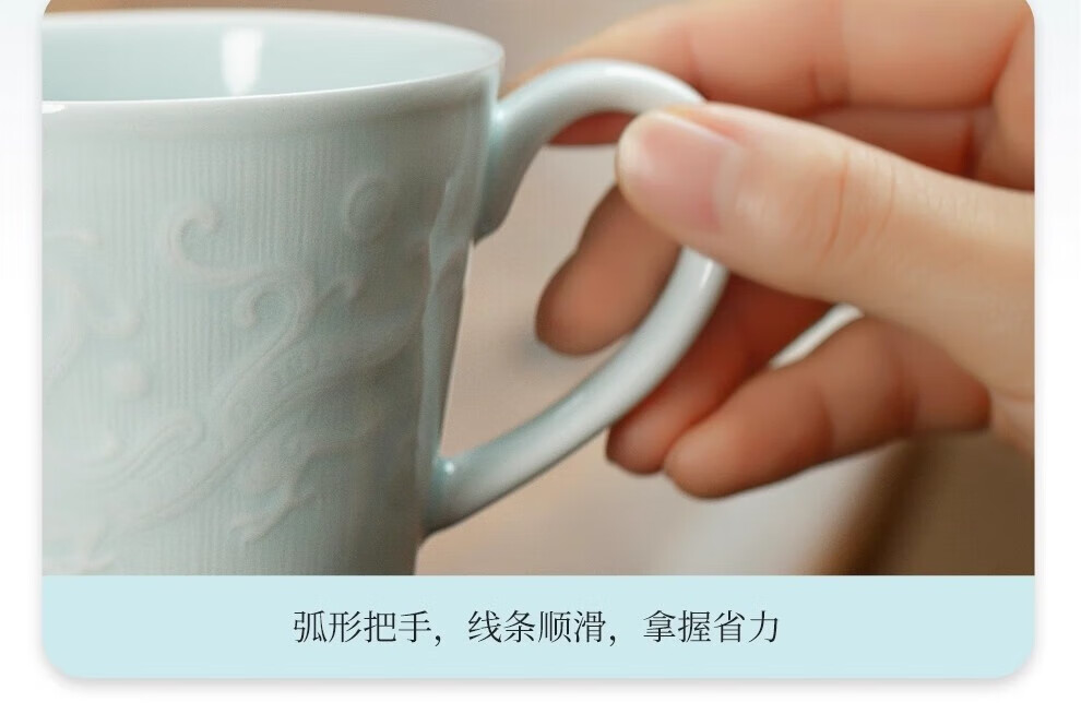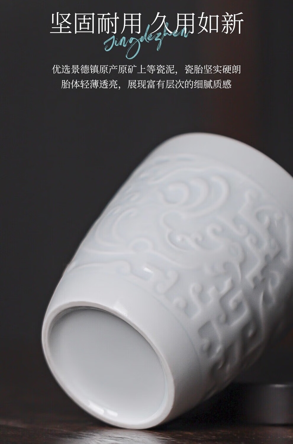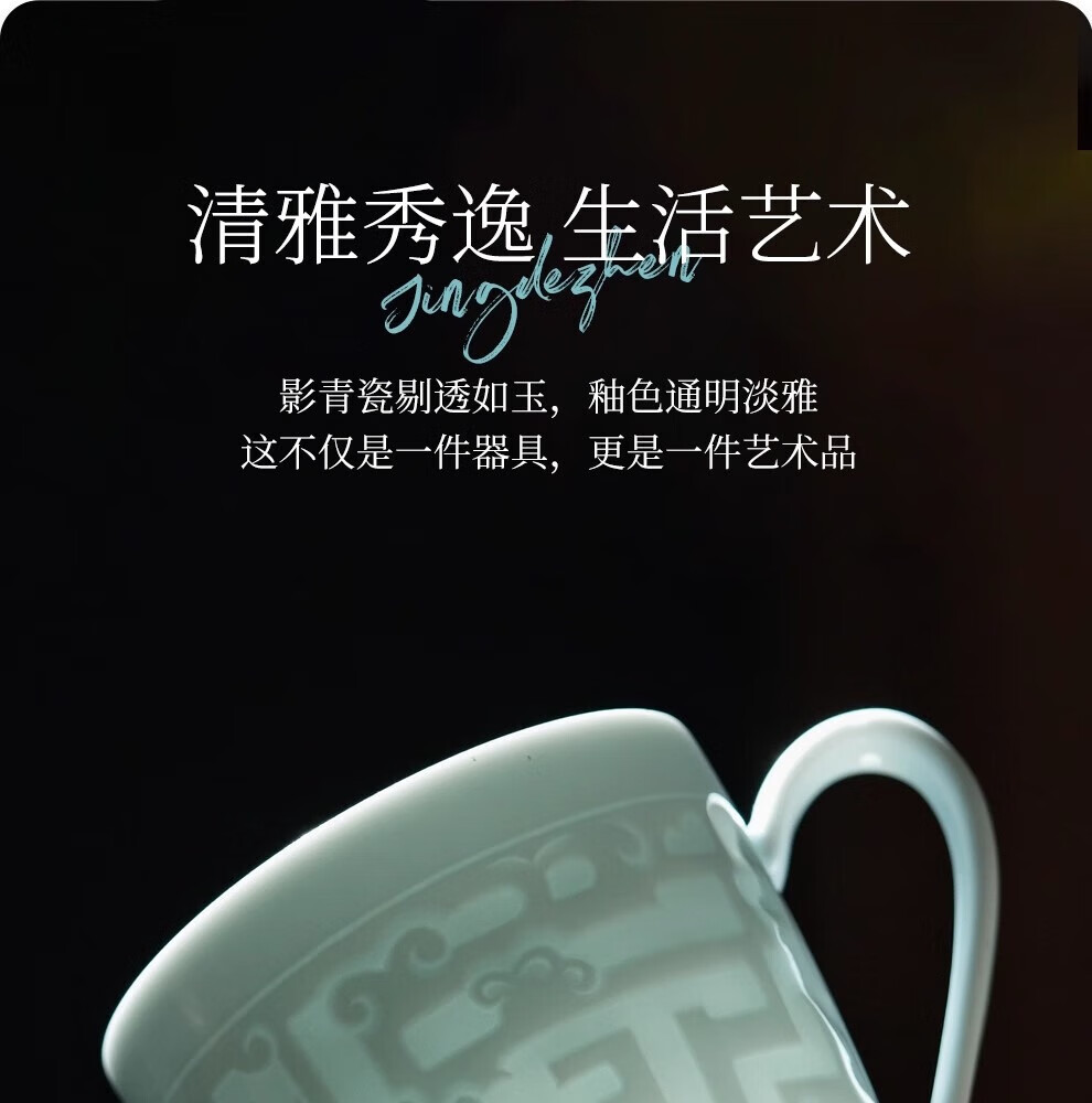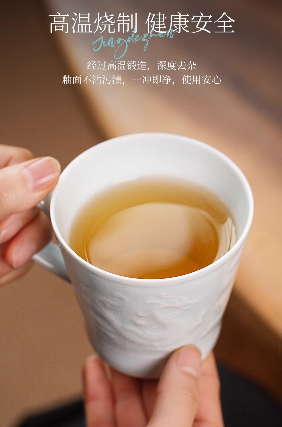 jdz陶瓷影青白瓷马克杯家用办公室水杯高档高颜值送礼礼物咖啡杯 如意夔龙马克杯