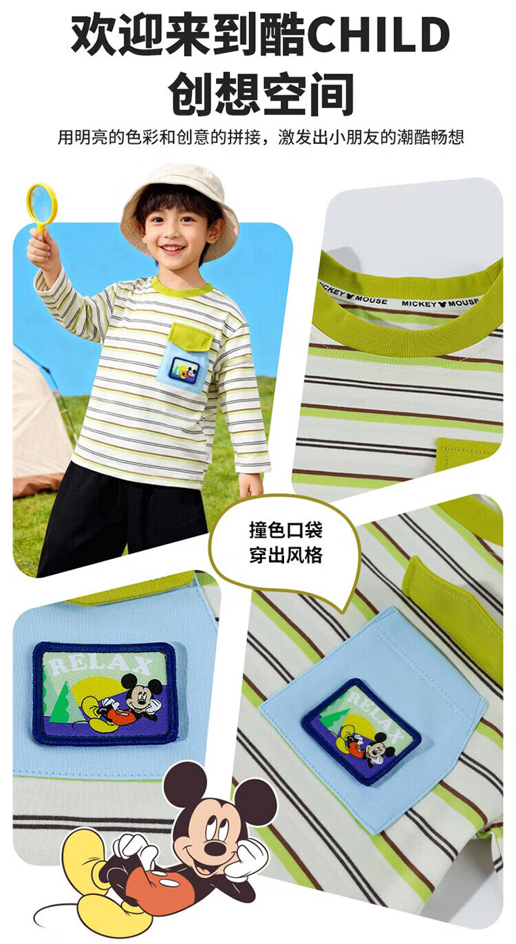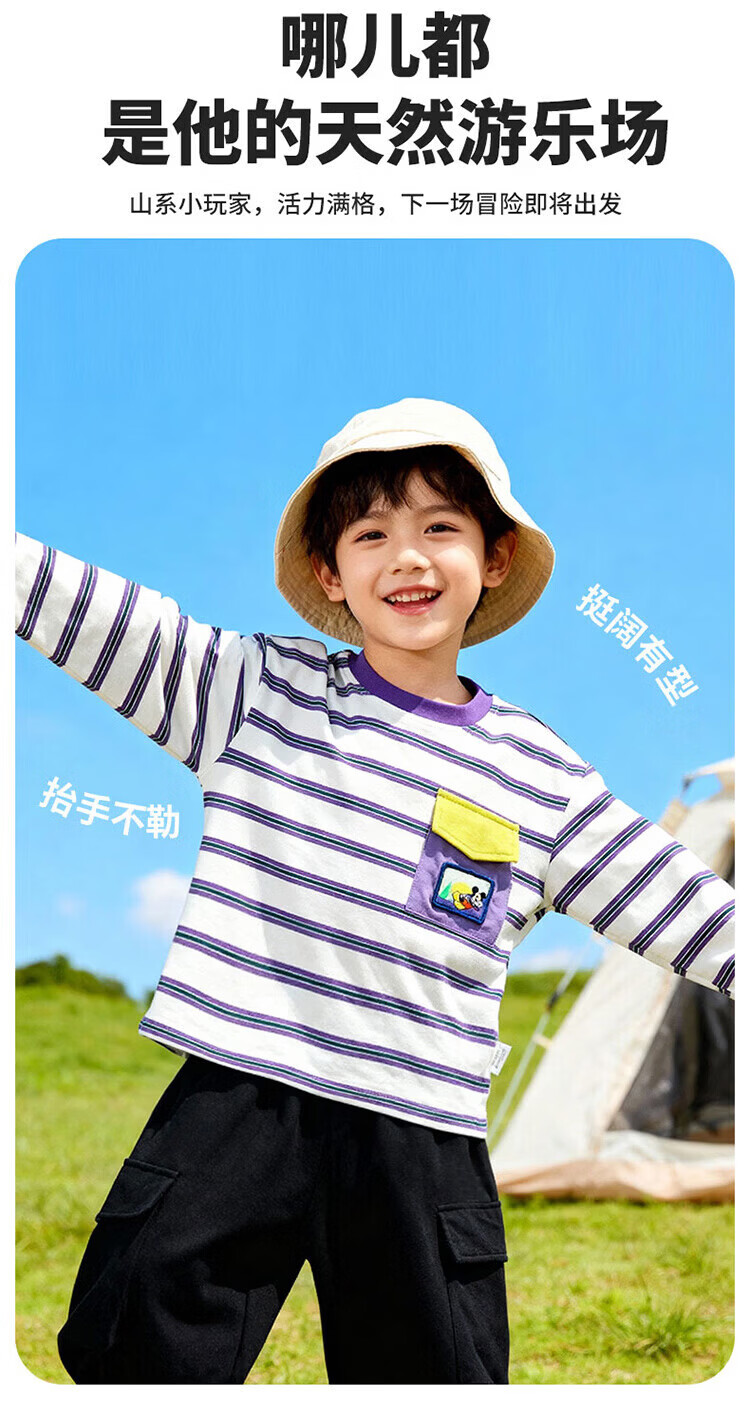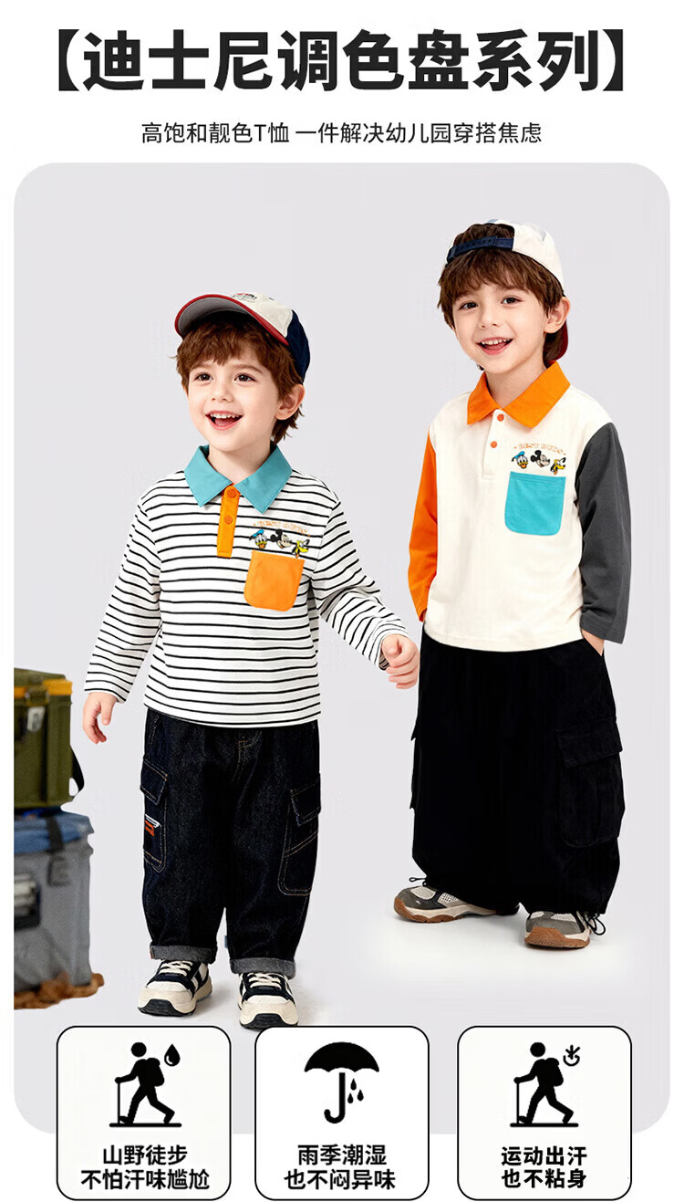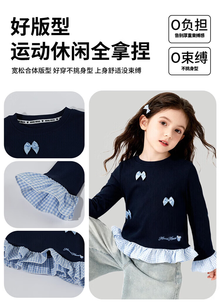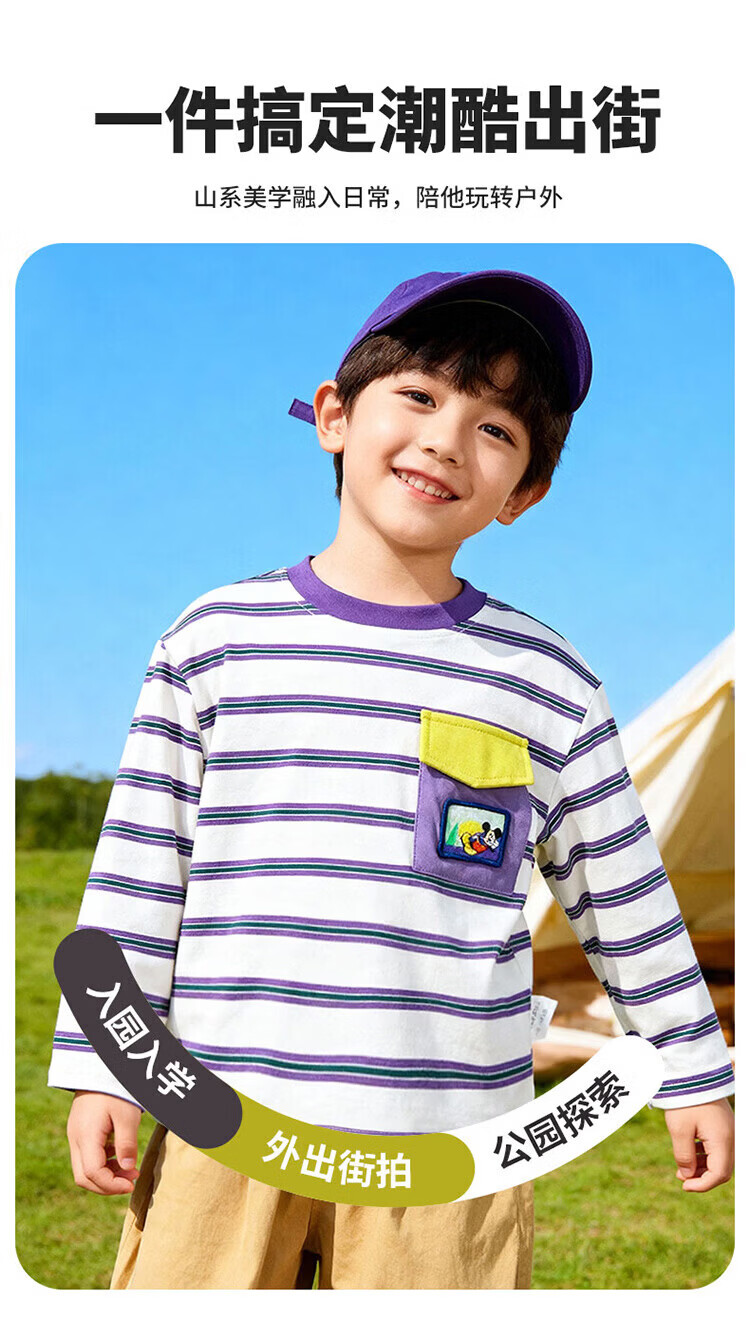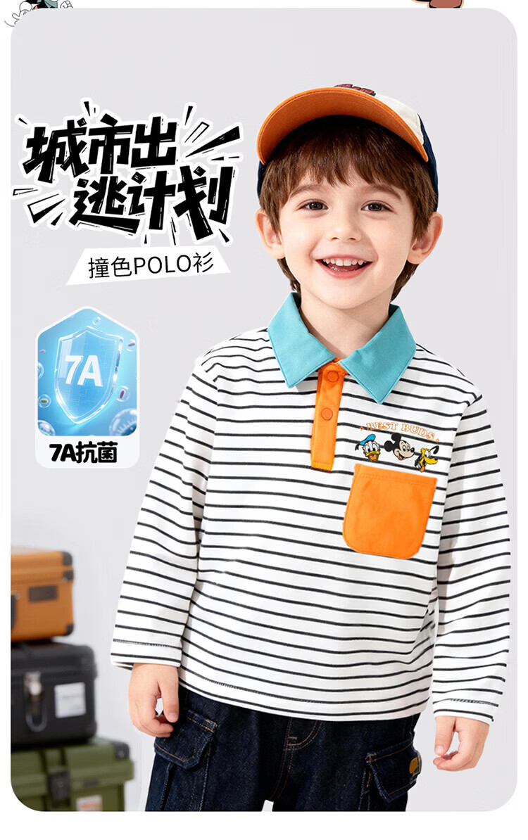 迪士尼(Disney)男女童春秋季甜美卡通长袖T恤运动休闲纯棉亲肤7A级抗菌上衣童装 黑白条纹polo衫 140 (建议8-10岁身高130-140cm)