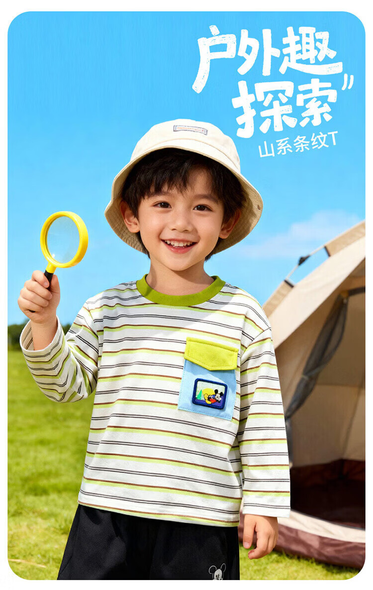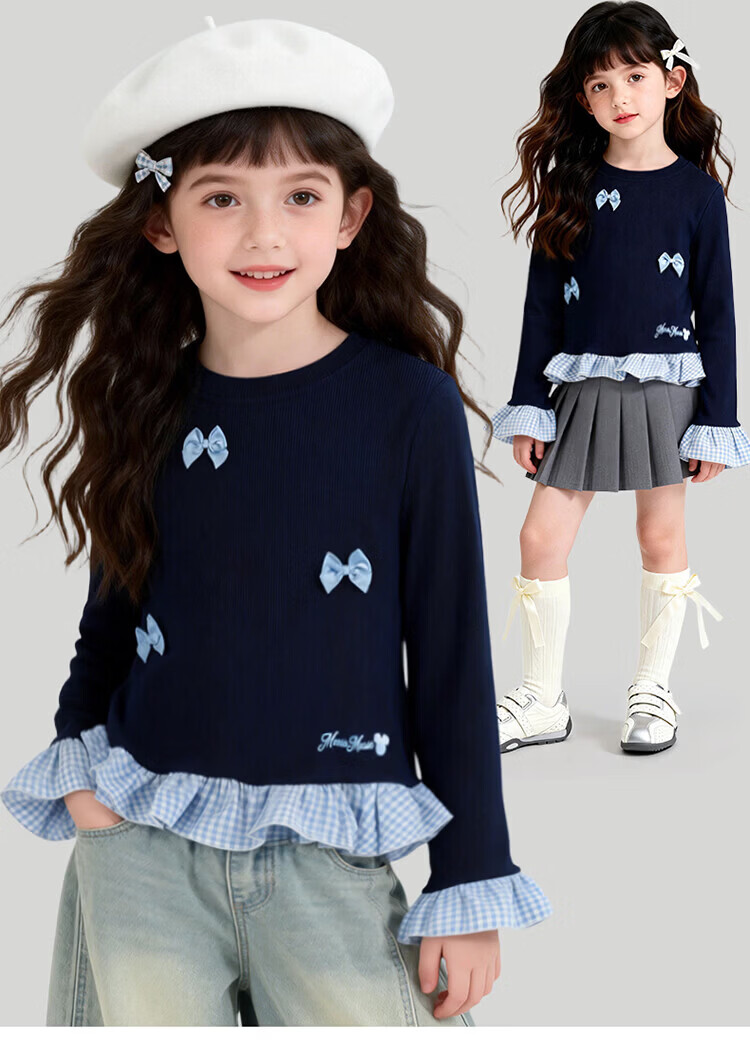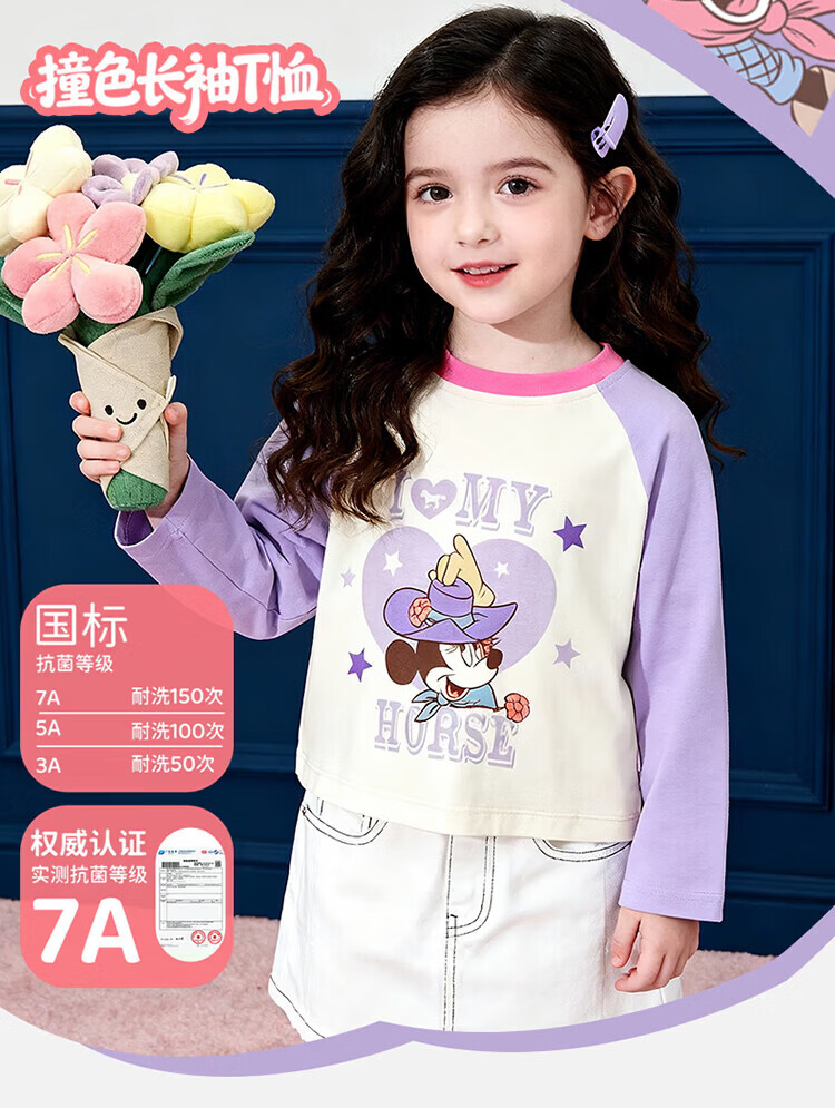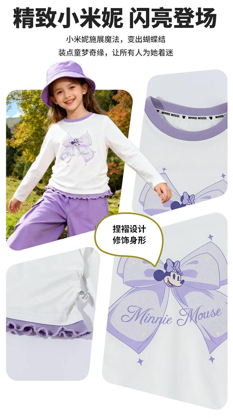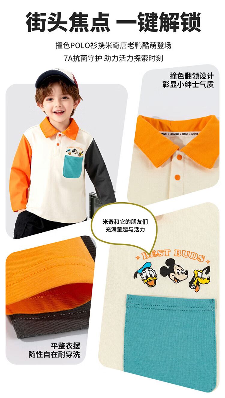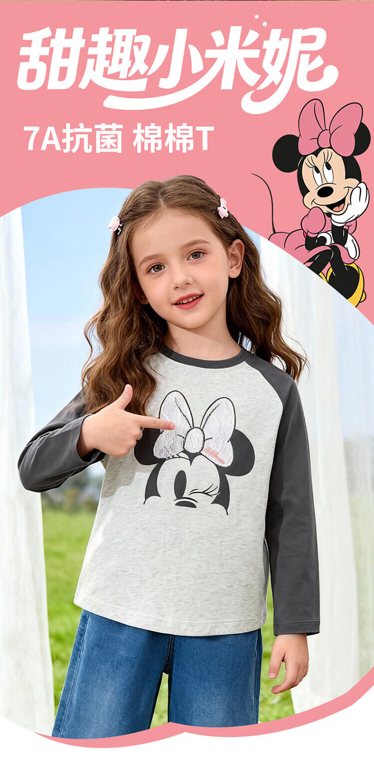 迪士尼(Disney)男女童春秋季甜美卡通长袖T恤运动休闲纯棉亲肤7A级抗菌上衣童装 黑白条纹polo衫 140 (建议8-10岁身高130-140cm)