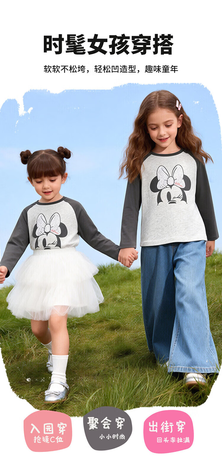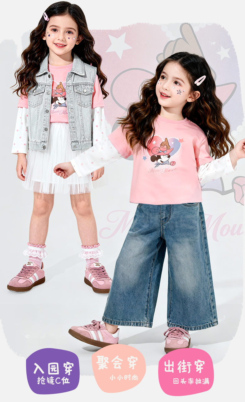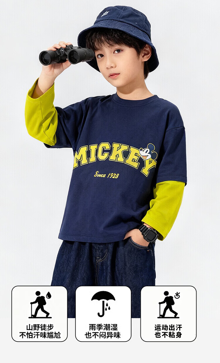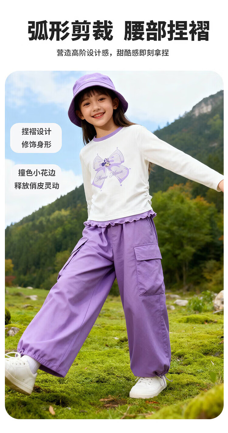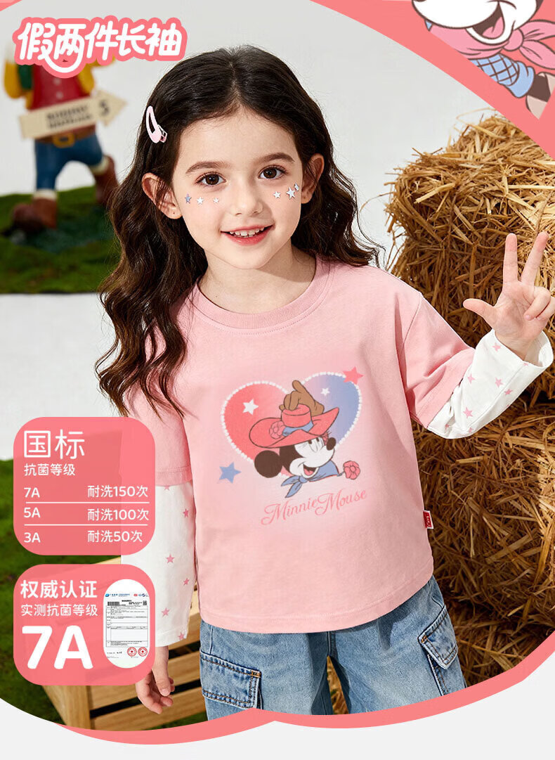 迪士尼(Disney)男女童春秋季甜美卡通长袖T恤运动休闲纯棉亲肤7A级抗菌上衣童装 黑白条纹polo衫 140 (建议8-10岁身高130-140cm)