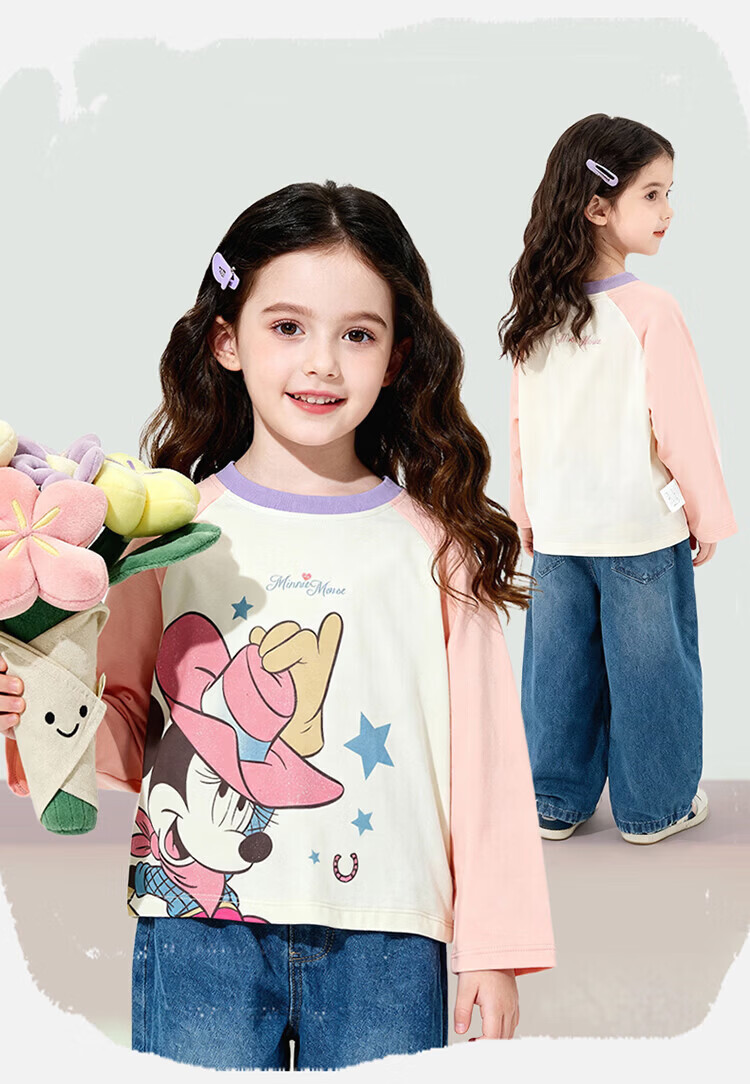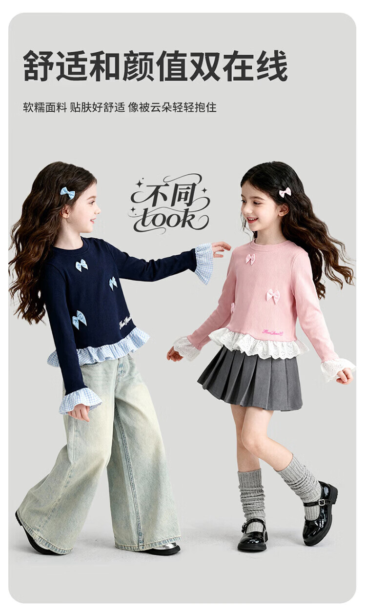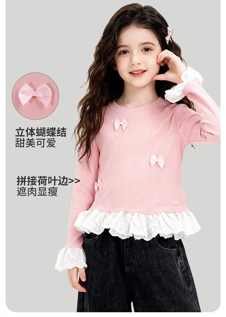 摩芭米mobami春秋女童T恤200g棉婴儿衣服纯棉T恤儿童宝宝插肩袖T恤 白色 130cm
