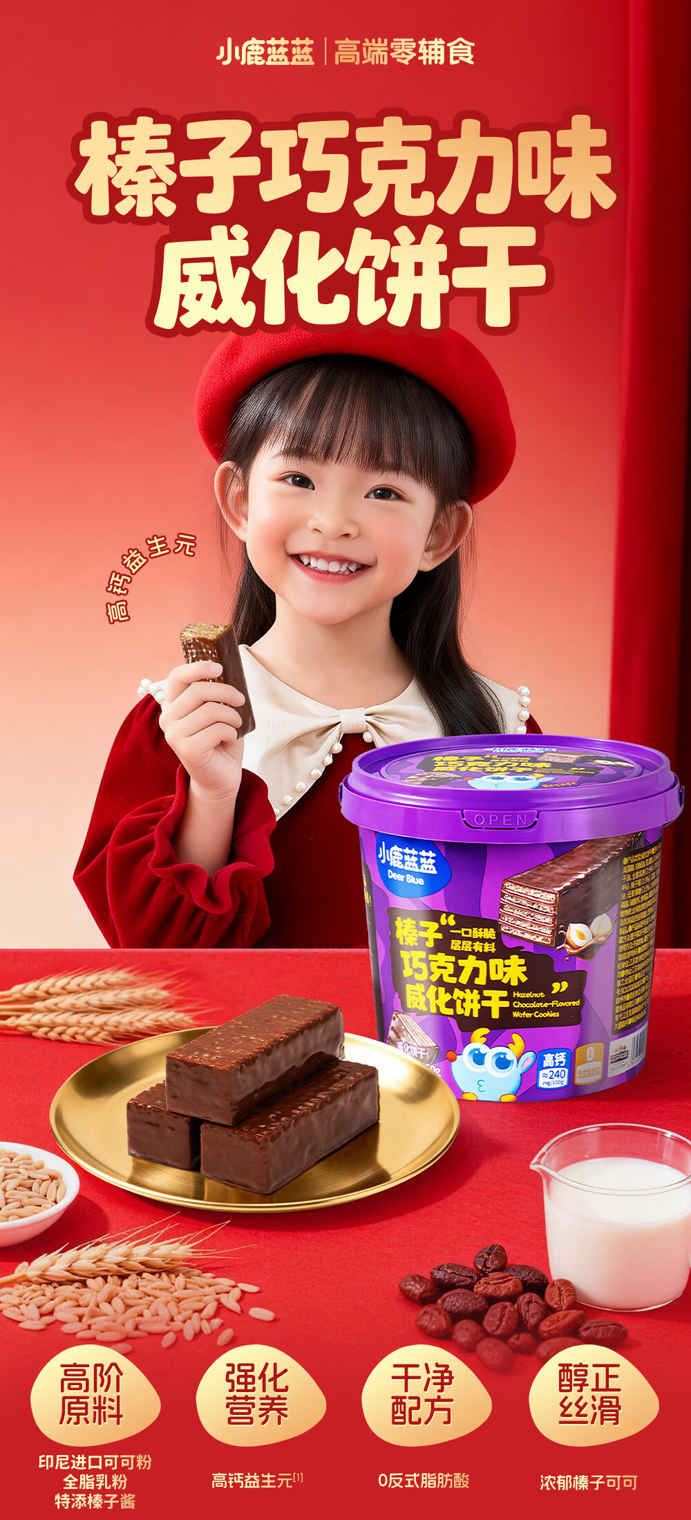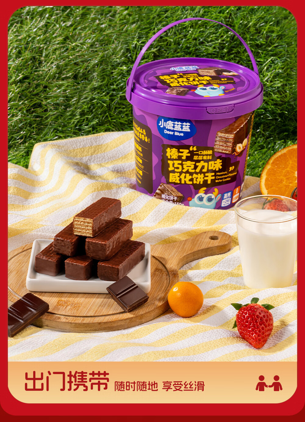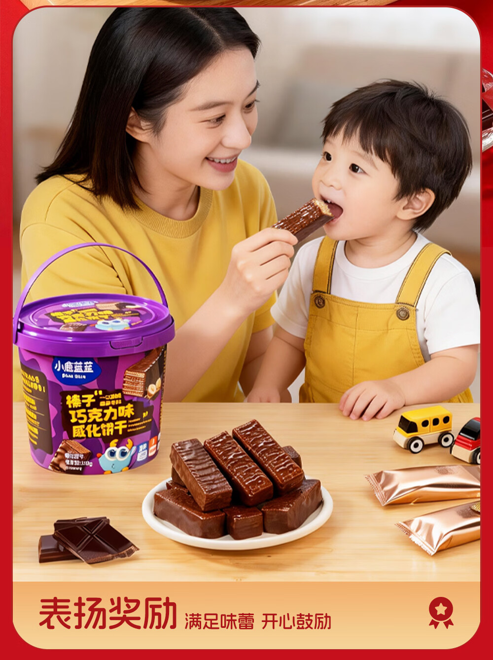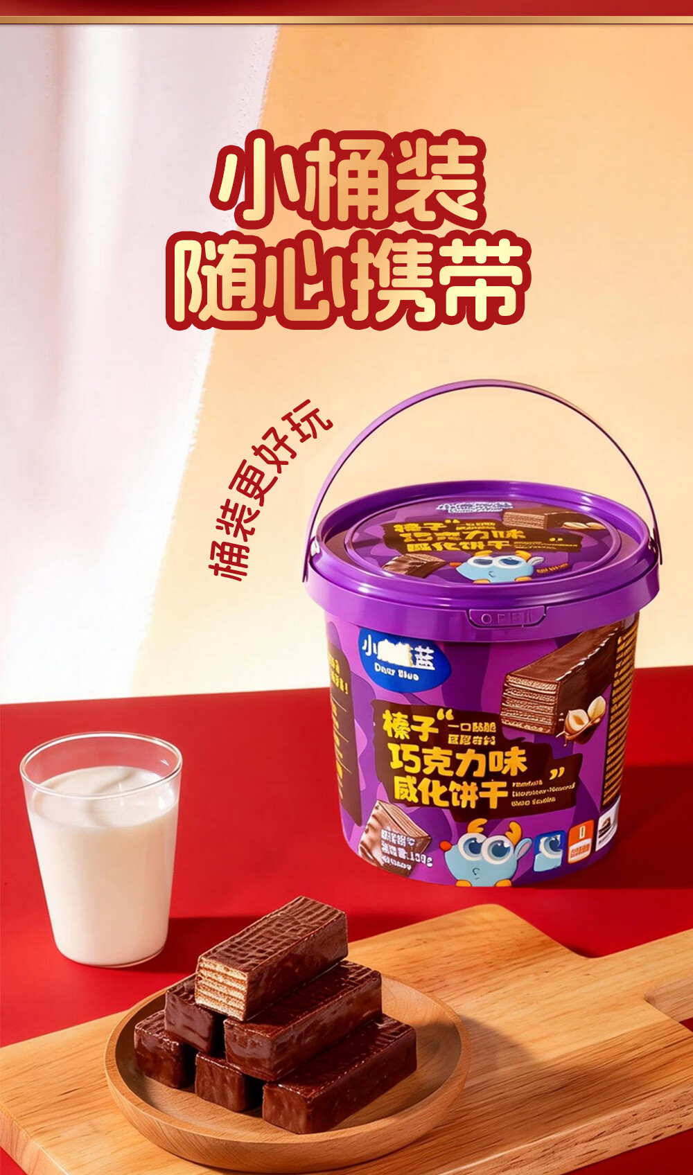 小鹿蓝蓝宝宝挖沙小工具桶装巧克力饼干儿童榛子巧克力味威化饼干150g桶装
