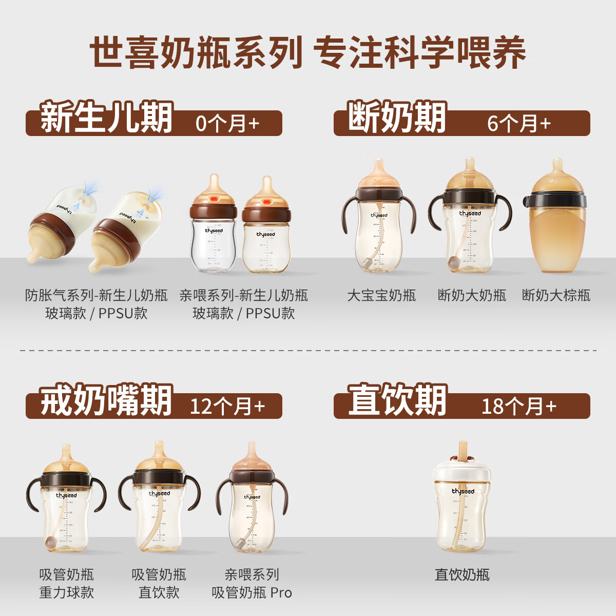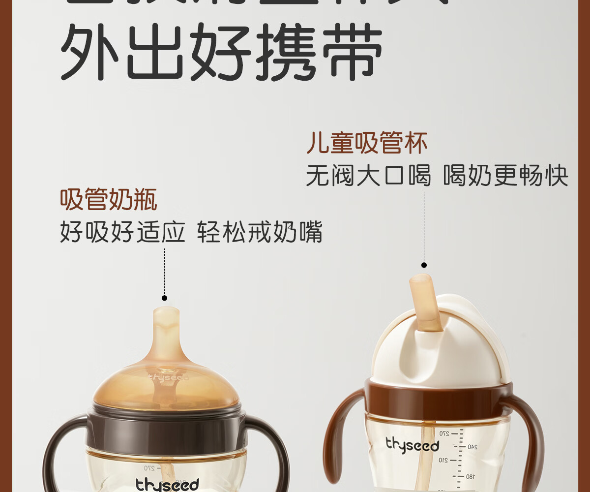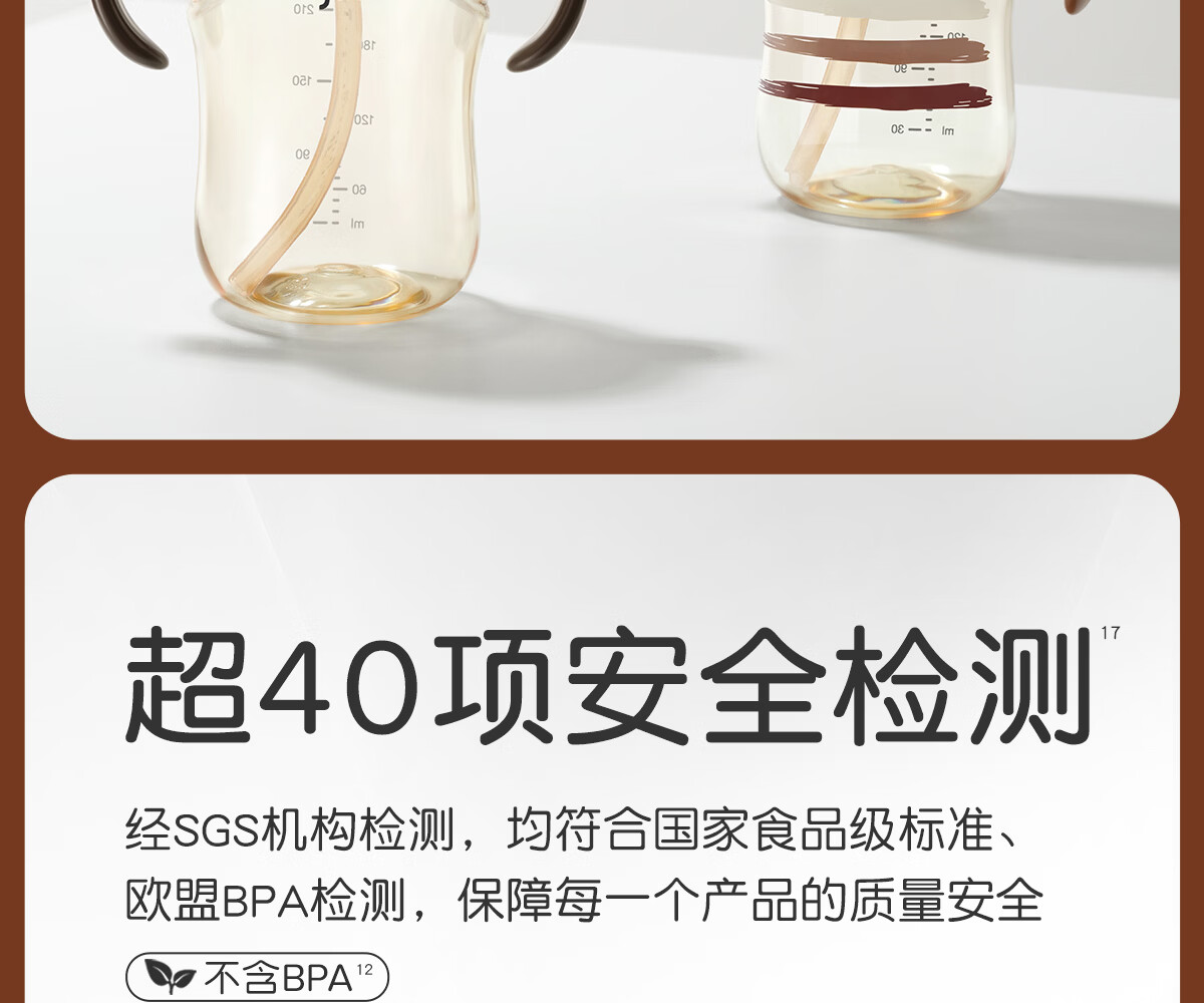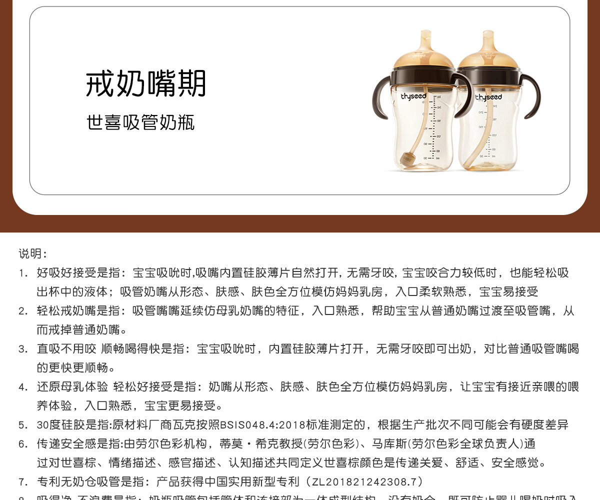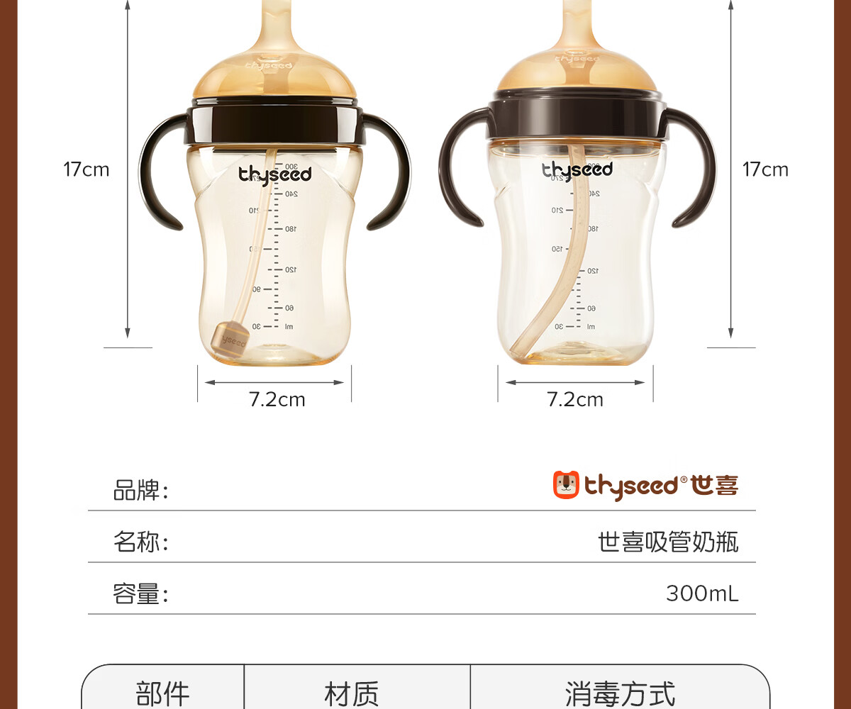 世喜奶瓶吸管奶瓶一岁以上宽口径ppsu婴儿断奶奶瓶防胀气硅胶奶嘴奶瓶 吸管奶嘴