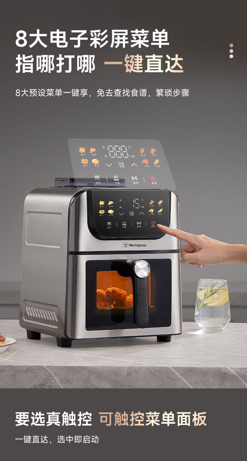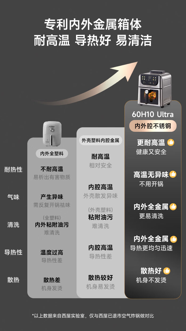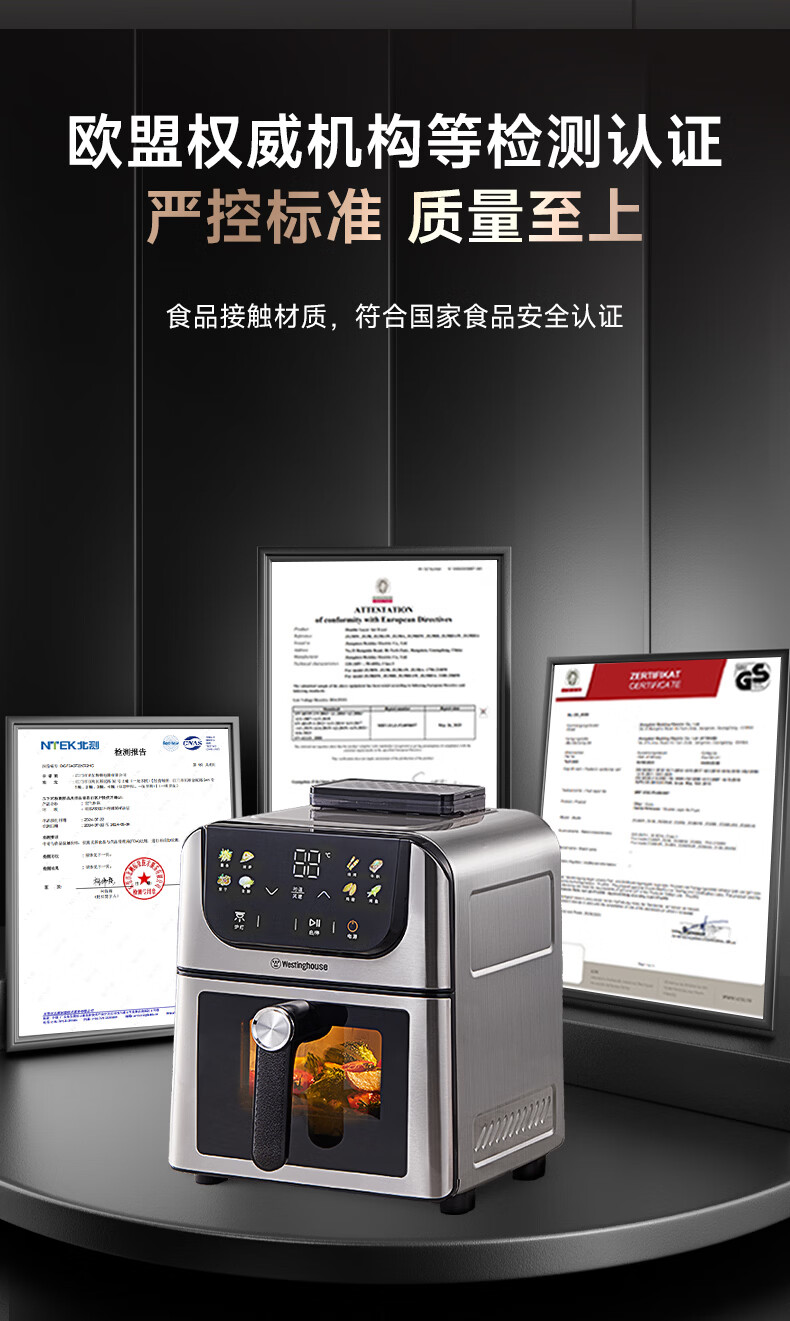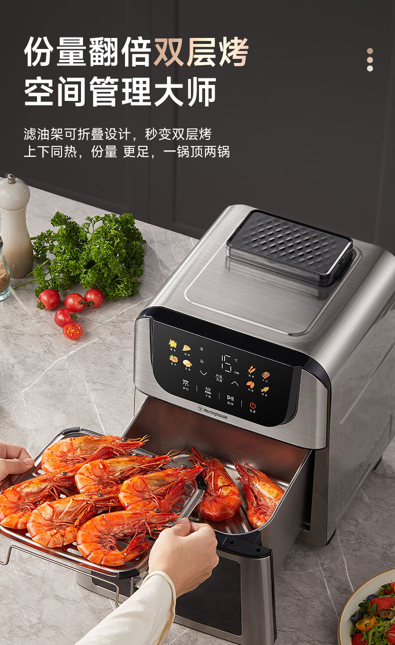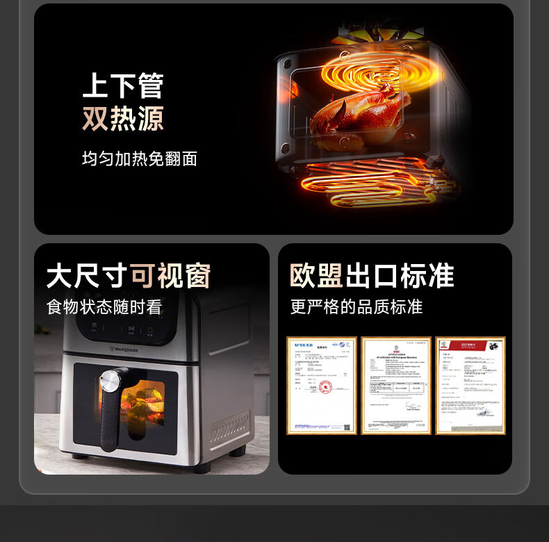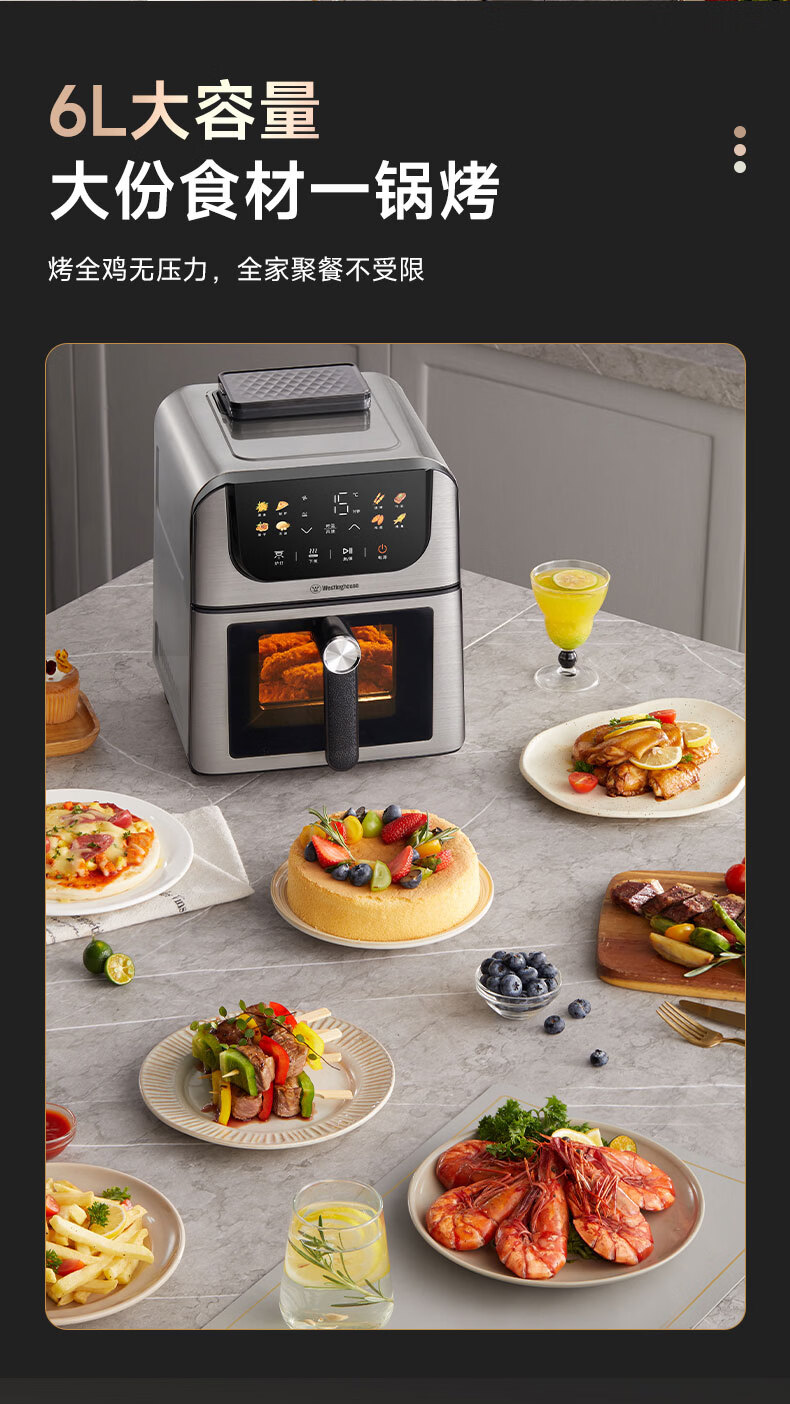 西屋空气炸锅不锈钢金属可视双热源免翻面6L大容量烤箱电炸锅 WKZ60H10 Ultra 6L