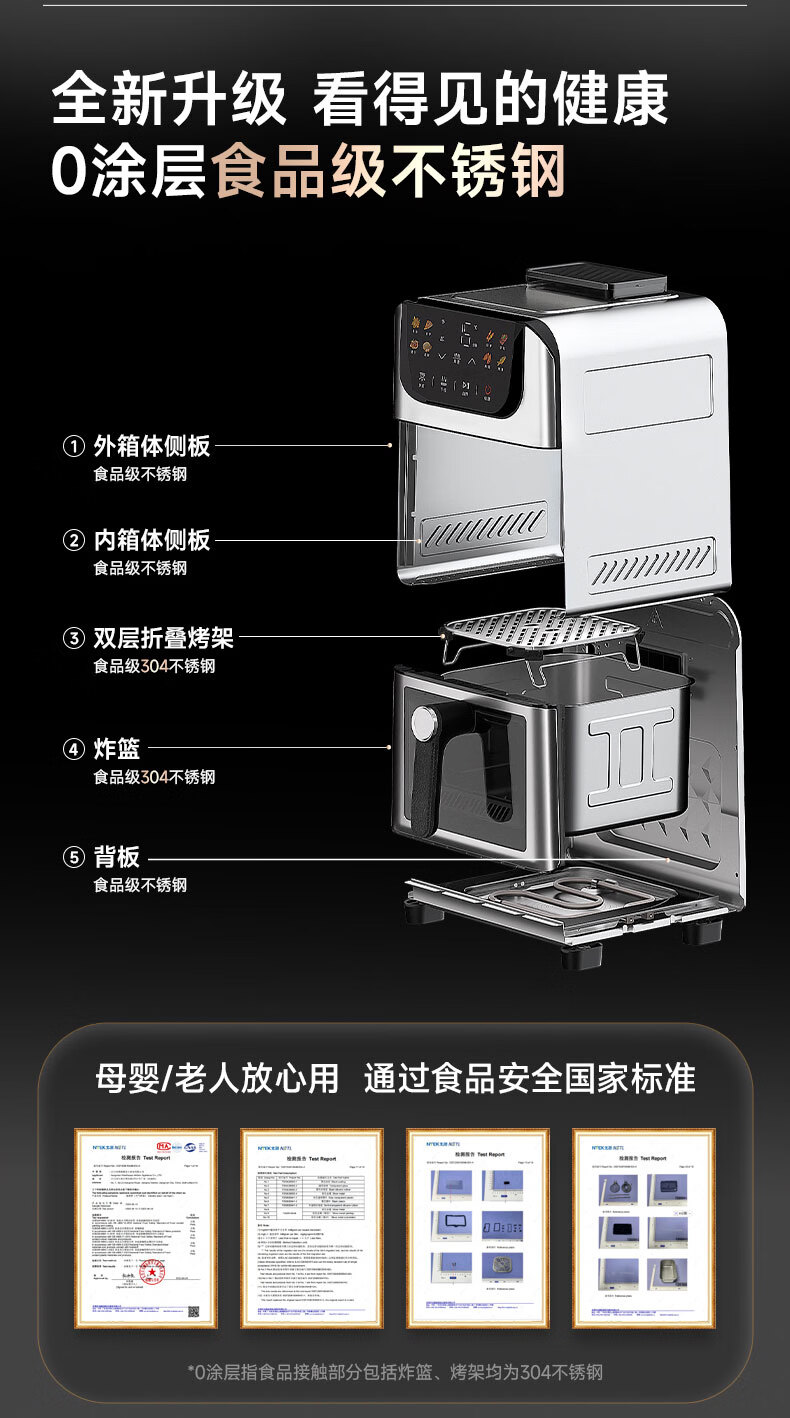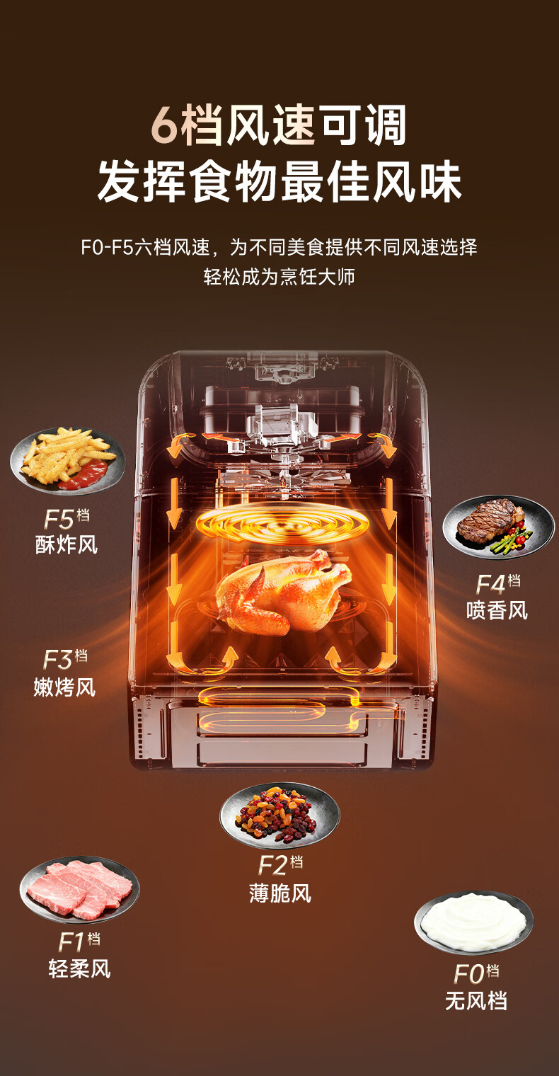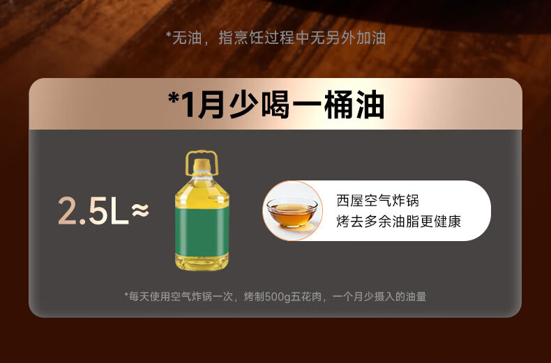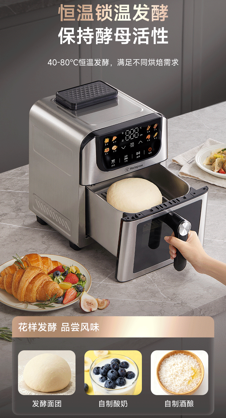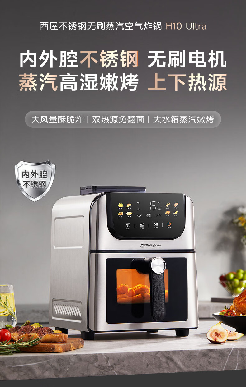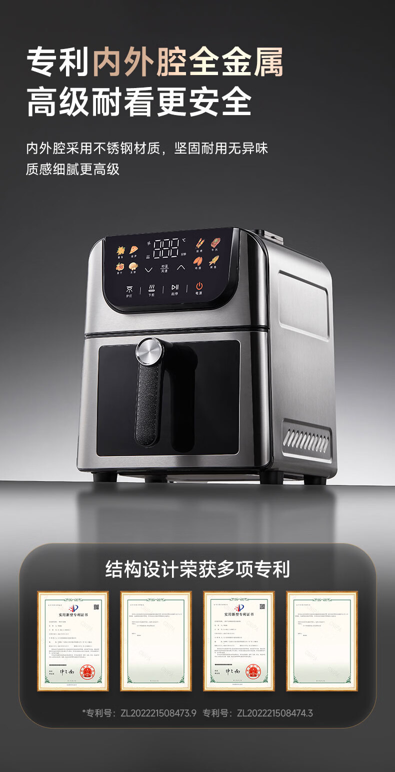西屋空气炸锅不锈钢金属可视双热源免翻面6L大容量烤箱电炸锅 WKZ60H10 Ultra 6L