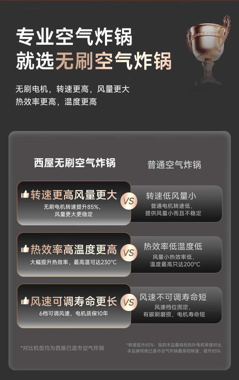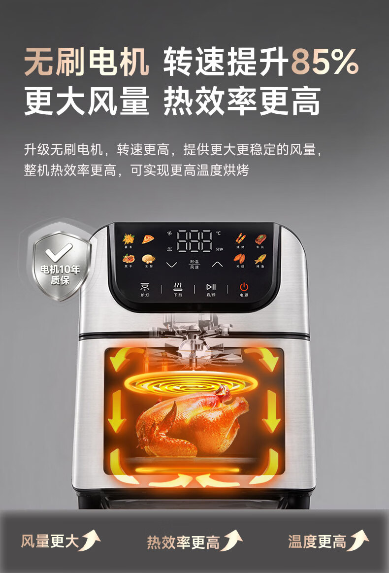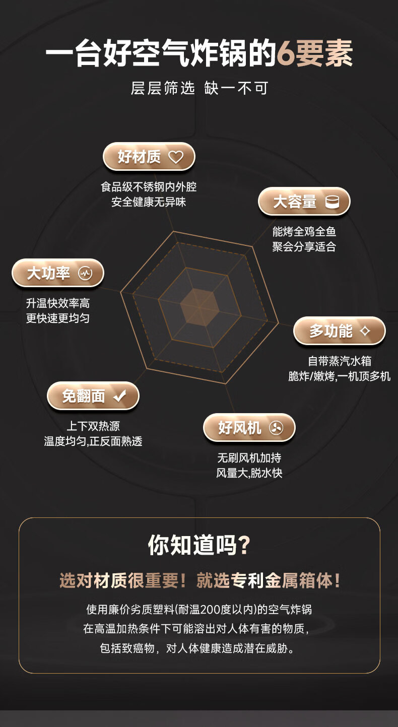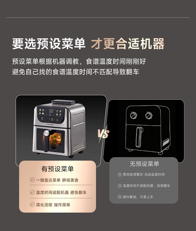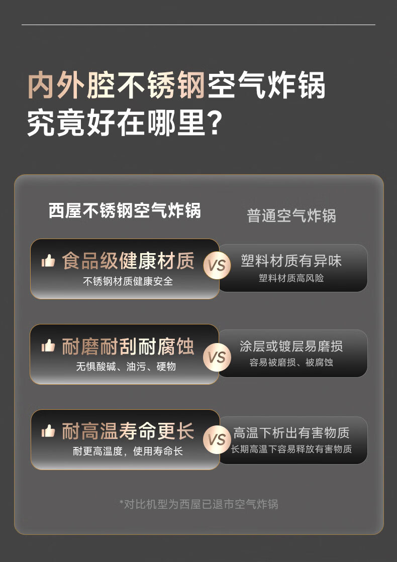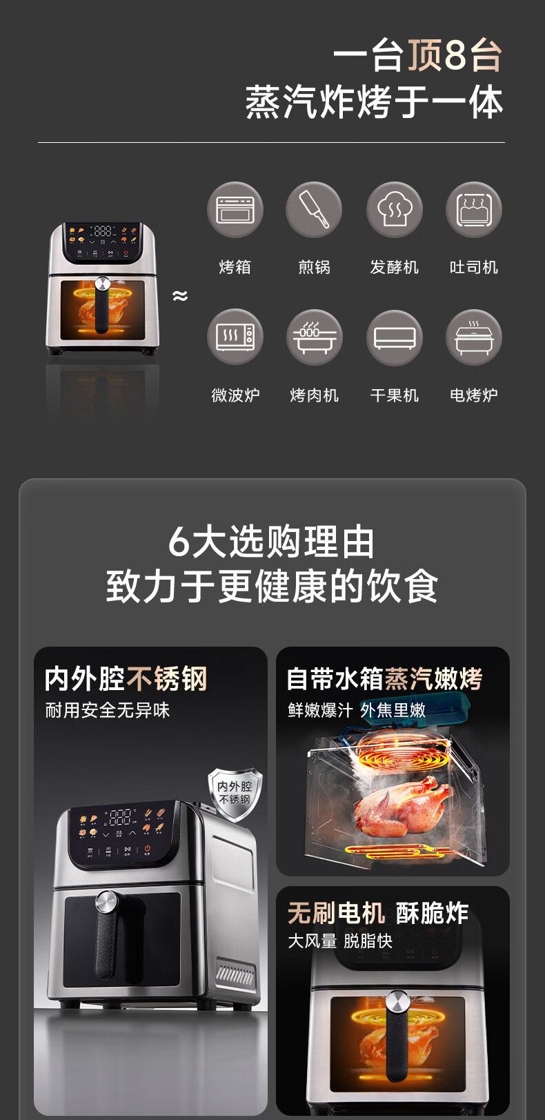 西屋空气炸锅不锈钢金属可视双热源免翻面6L大容量烤箱电炸锅 WKZ60H10 Ultra 6L