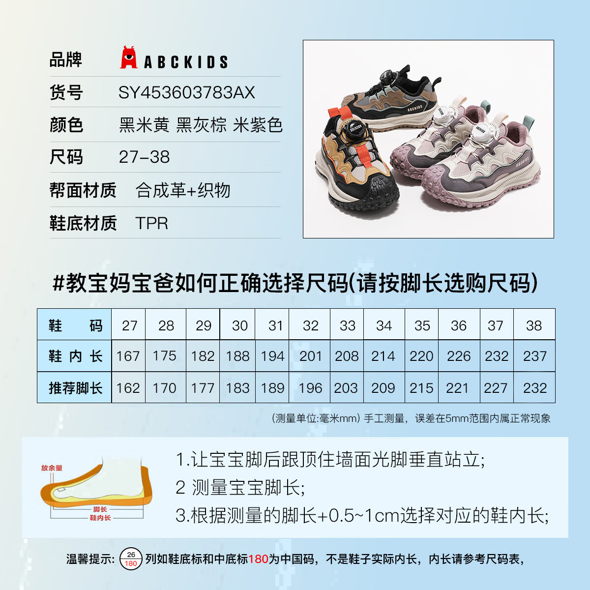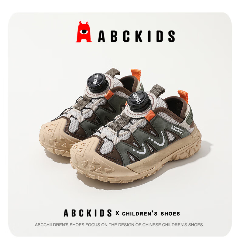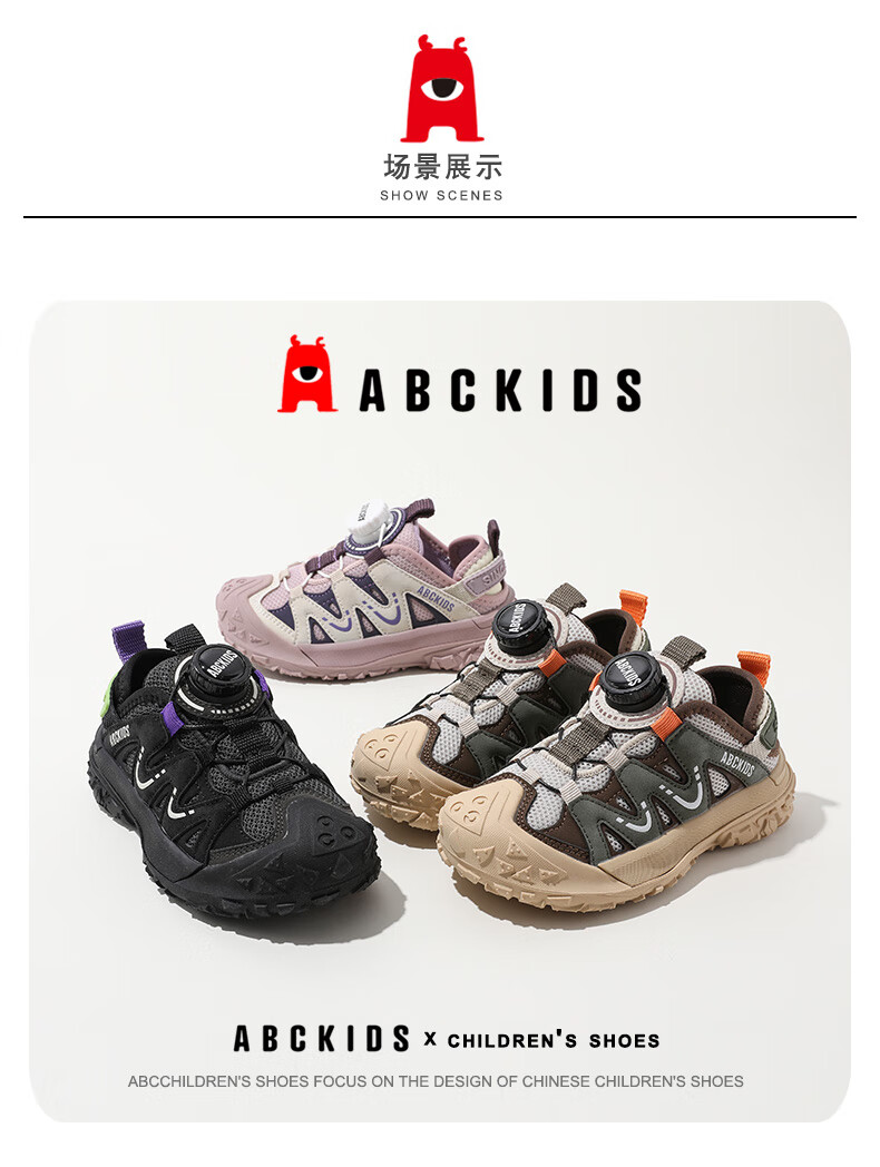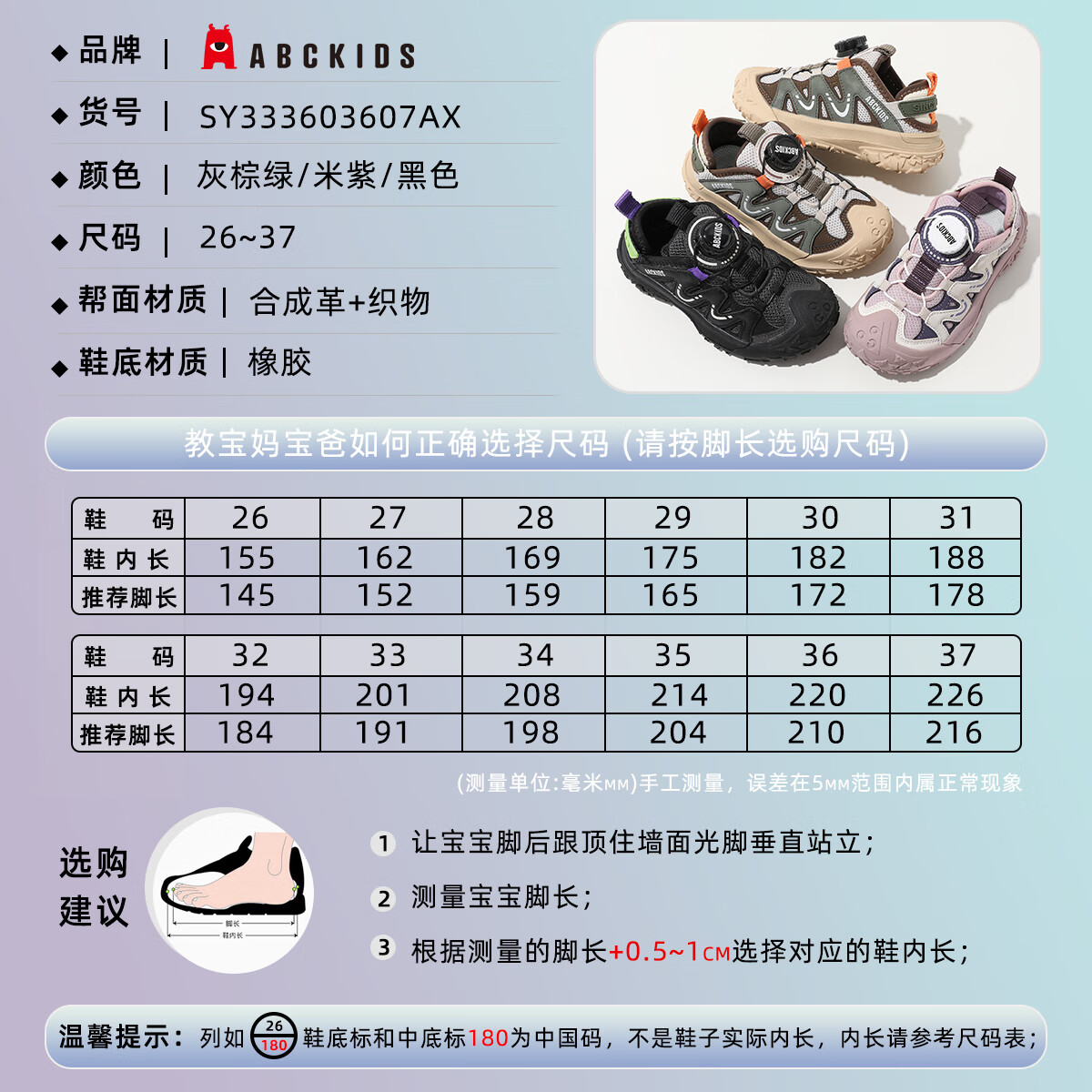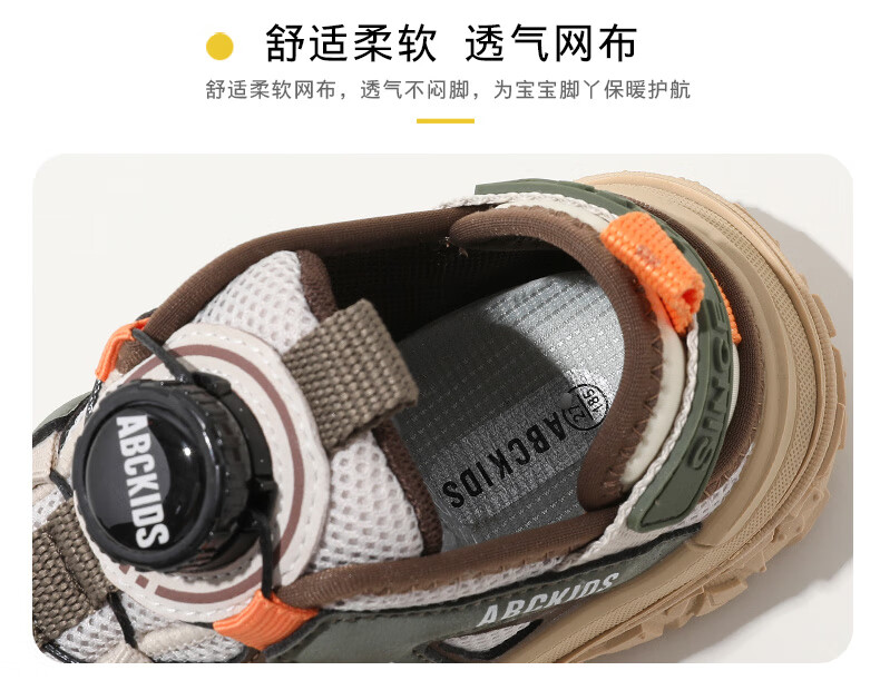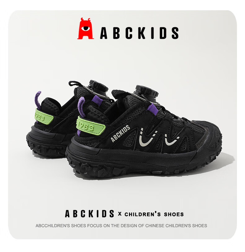 ABC KIDS儿童运动鞋2026春季新款男童运动鞋网布透气旋钮扣女童休闲跑步鞋 黑色 32 内长约19.4cm