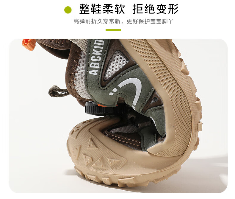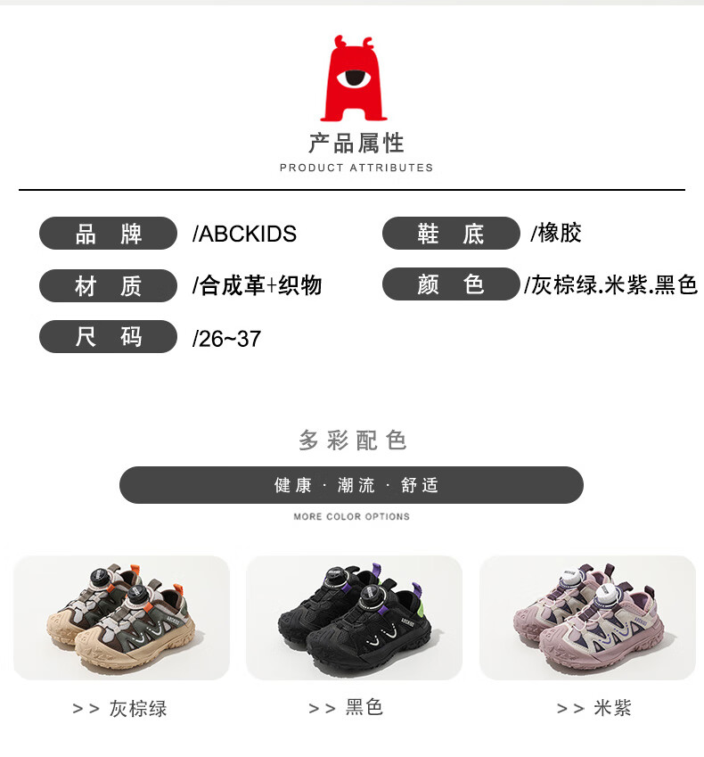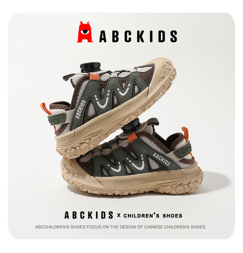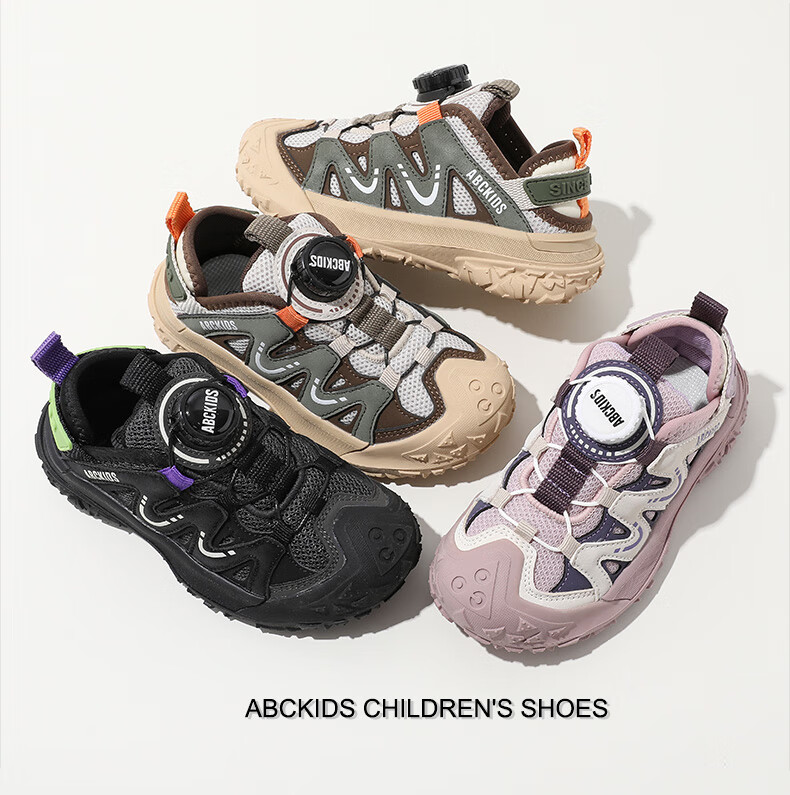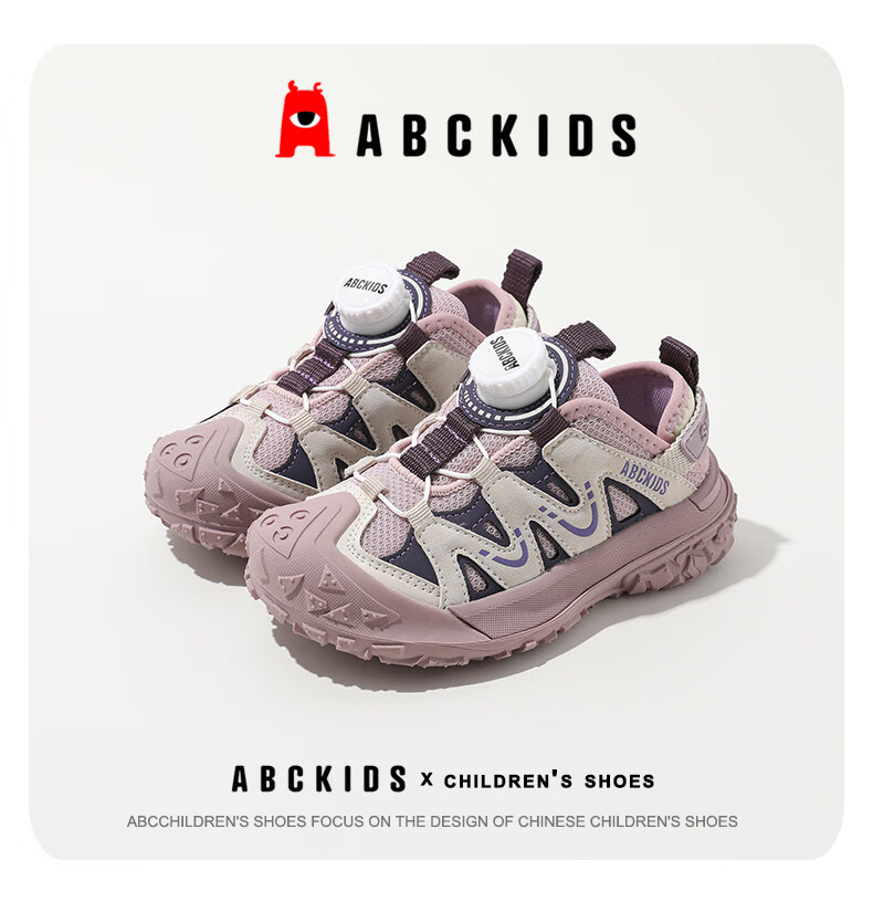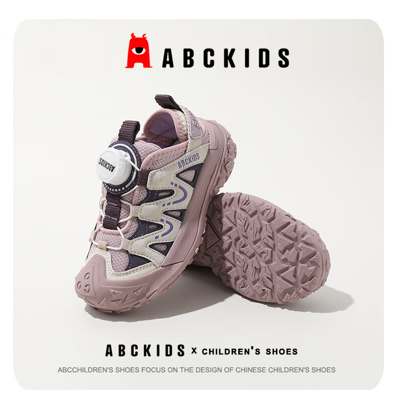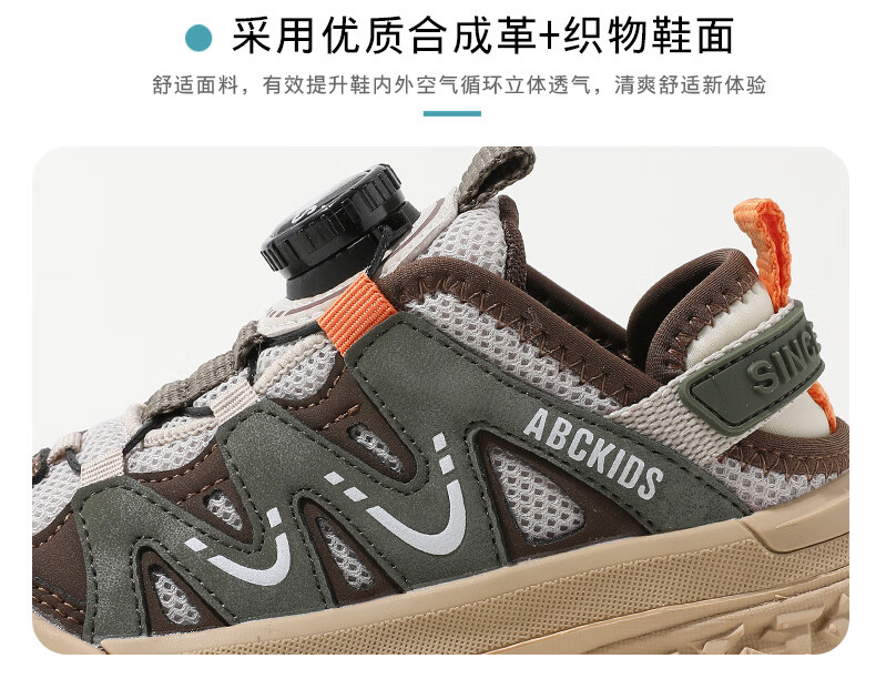 ABC KIDS儿童运动鞋2026春季新款男童运动鞋网布透气旋钮扣女童休闲跑步鞋 黑色 32 内长约19.4cm