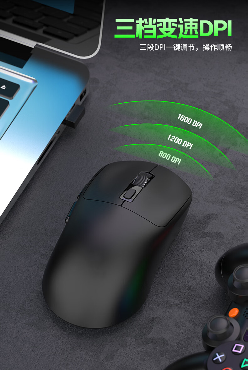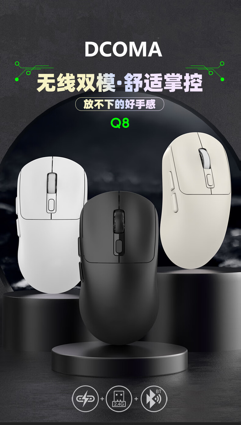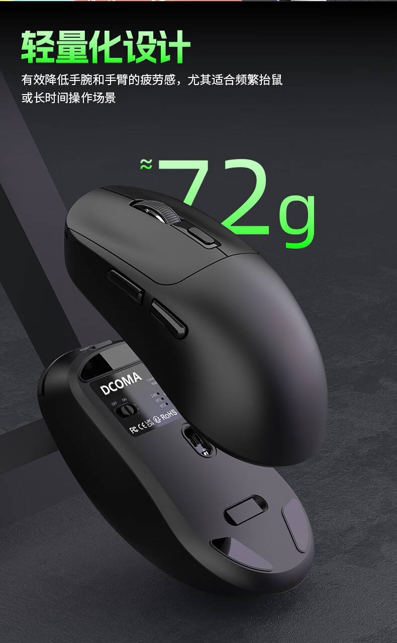 DCOMA轻量化无线鼠标家用办公游戏充电双模蓝牙静音LED笔记本台式电脑 轻量化可充电三模蓝牙静音无线鼠标-黑色+送鼠标垫