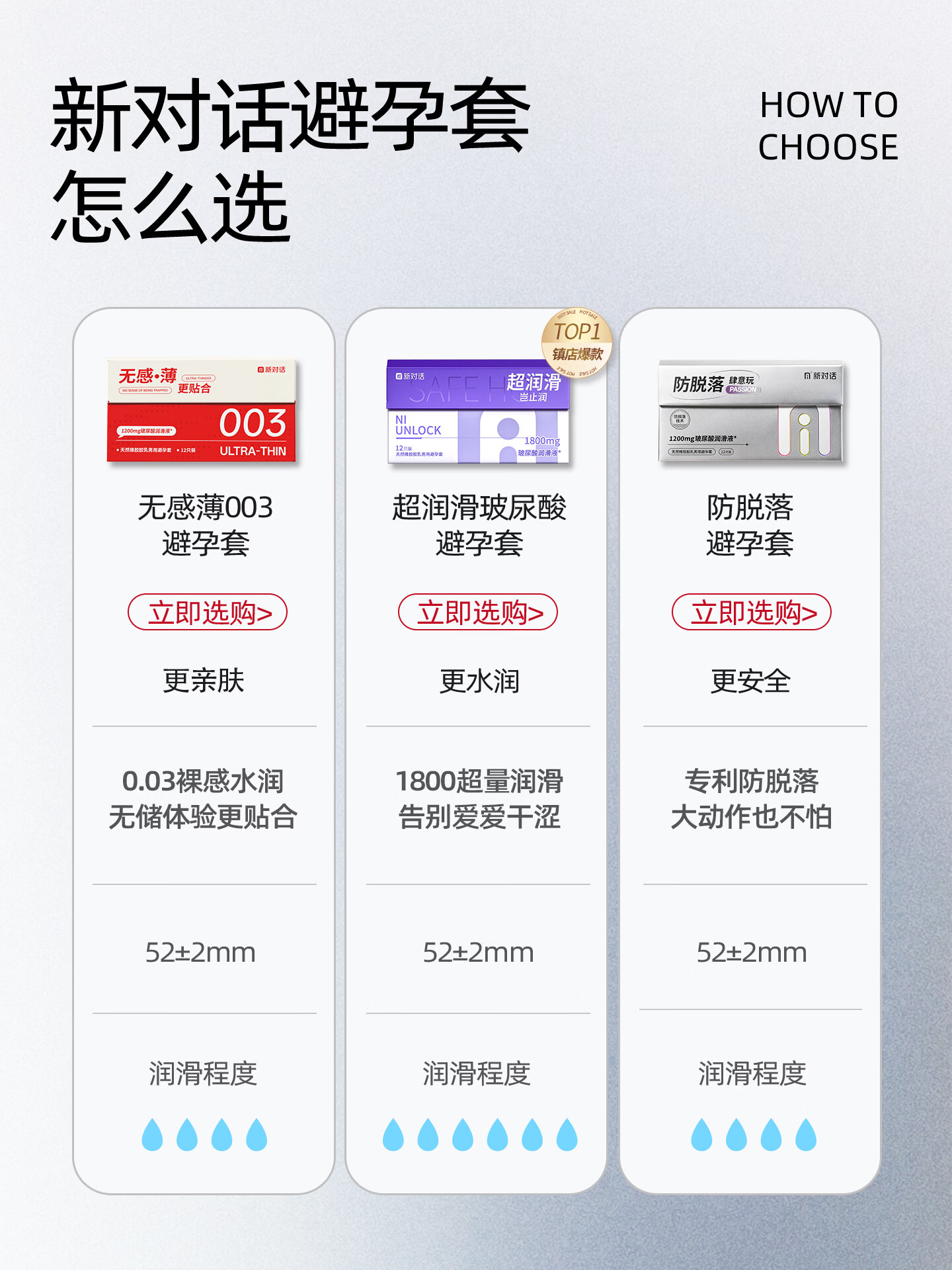 NI新对话避孕套防脱落无储玻尿酸防滑脱免洗安全套男用官方正品旗舰 全家福囤货【共44只】送体验装试用