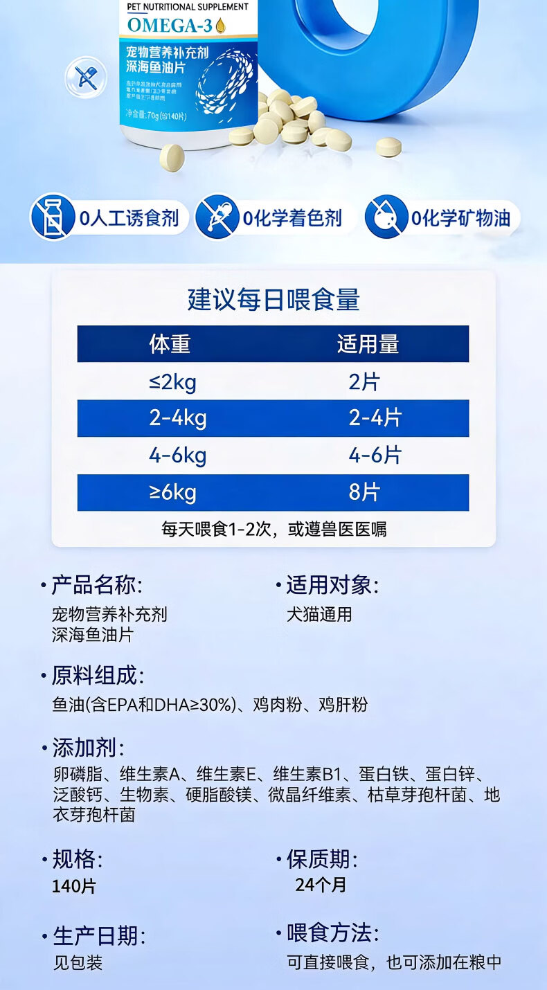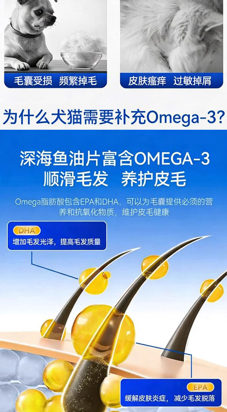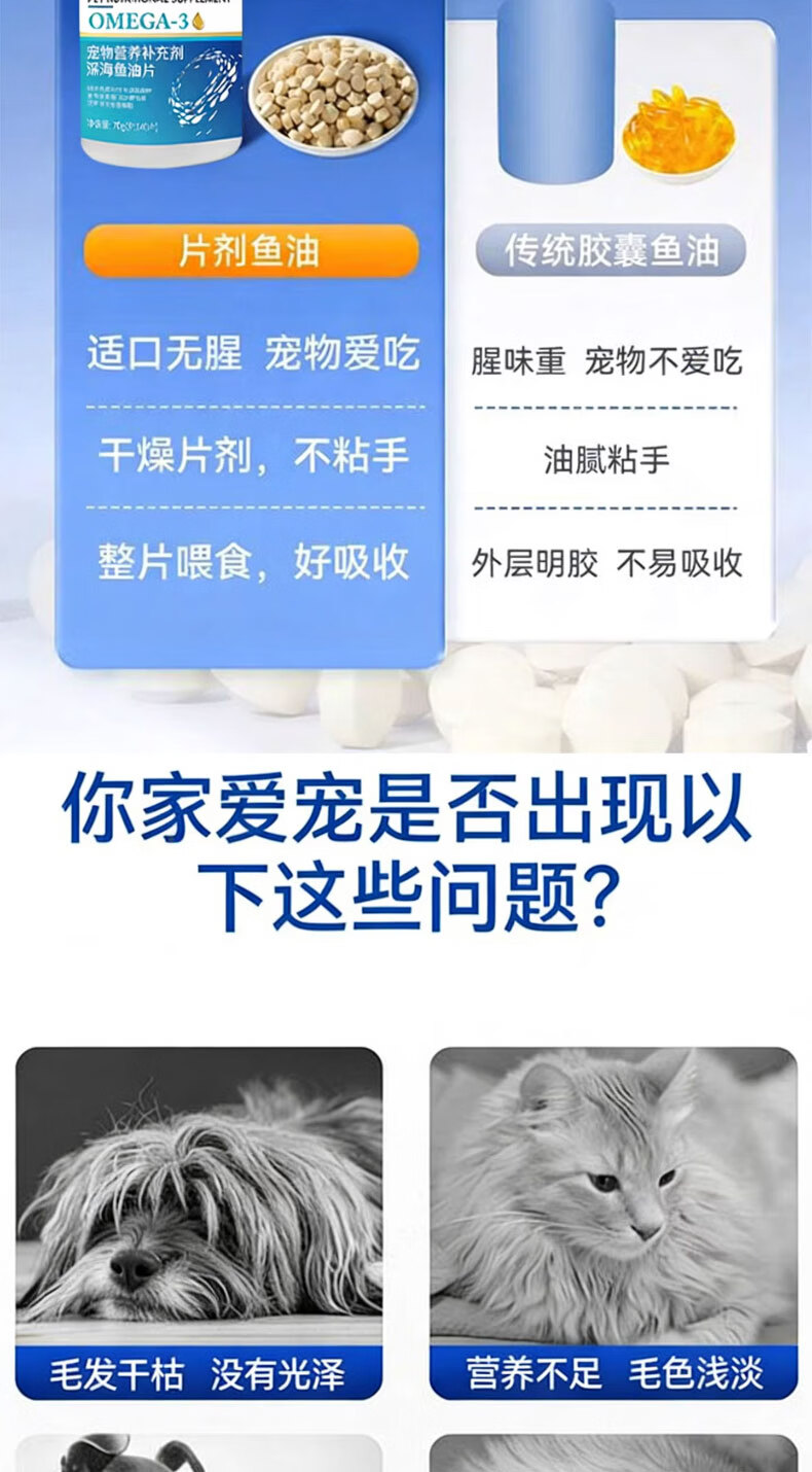 BBLAB猫掉毛严重吃什么防止脱毛深海鱼油片猫用宠物鱼油猫咪专用防掉毛 1瓶【140片】
