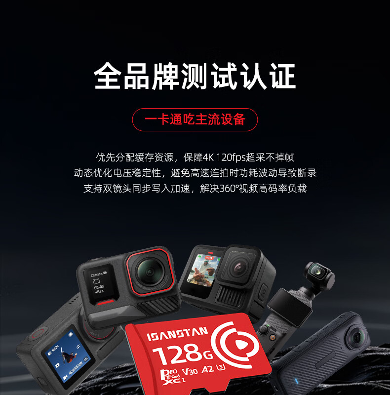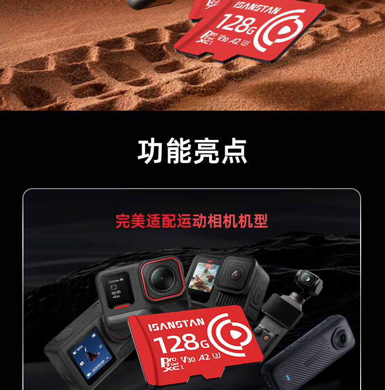 闪立派TF卡适用于DJI大疆action4内存卡action5pro运动相机储存卡pocket3/2/无人机Mini御Air2高速U3 128G【运动相机内存卡】+送读卡器