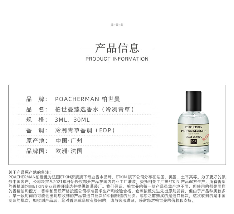柏世曼冷冽青草香水 冷香型持久淡香绿意清新男女士中性香水学生 107号冷冽青草10ml