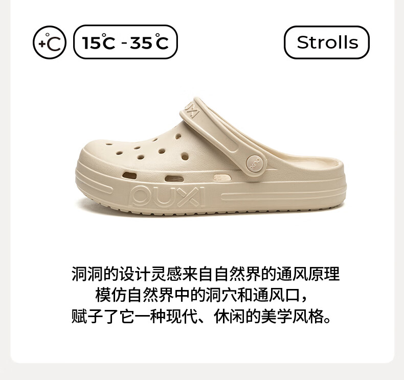 朴西经典爆款洞洞凉拖鞋沙滩必备休闲夏季户外防滑防臭一脚蹬包头拖鞋 奶昔白【朴西正品*假一罚十】 39-40 【鞋型偏小 推荐拍大一码】