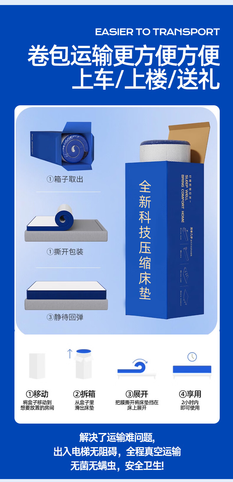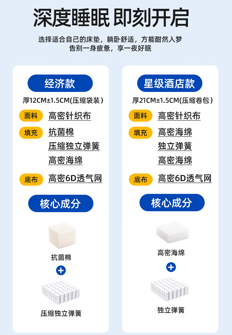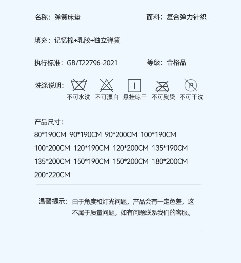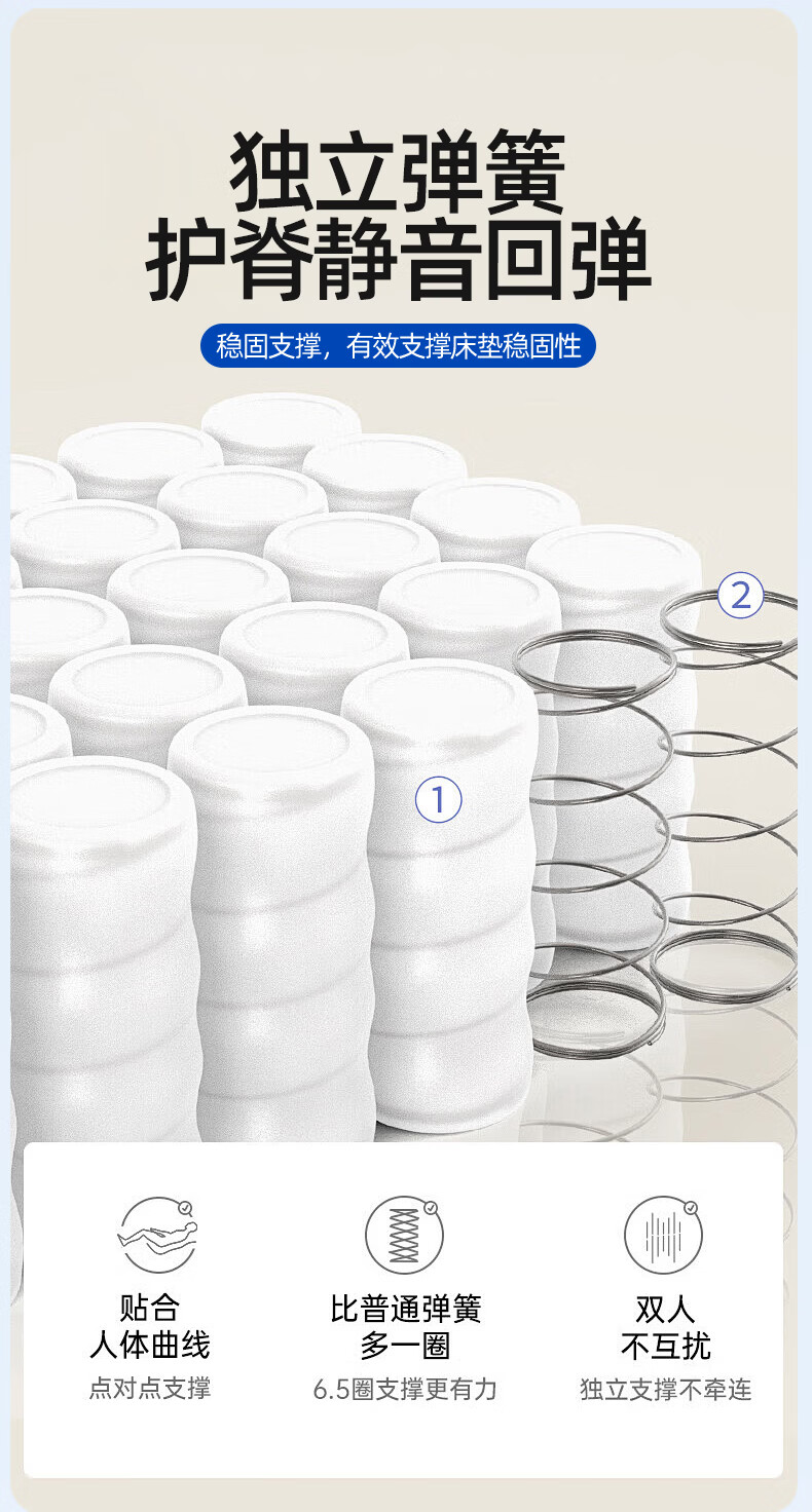 VJE记忆棉乳胶床垫1.5米x2米加厚独立弹簧偏硬床褥垫家用席梦思垫子 小蓝盒白-厚约24cm-弹簧乳胶 200*220cm