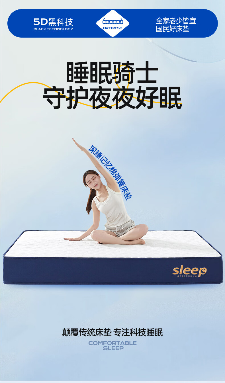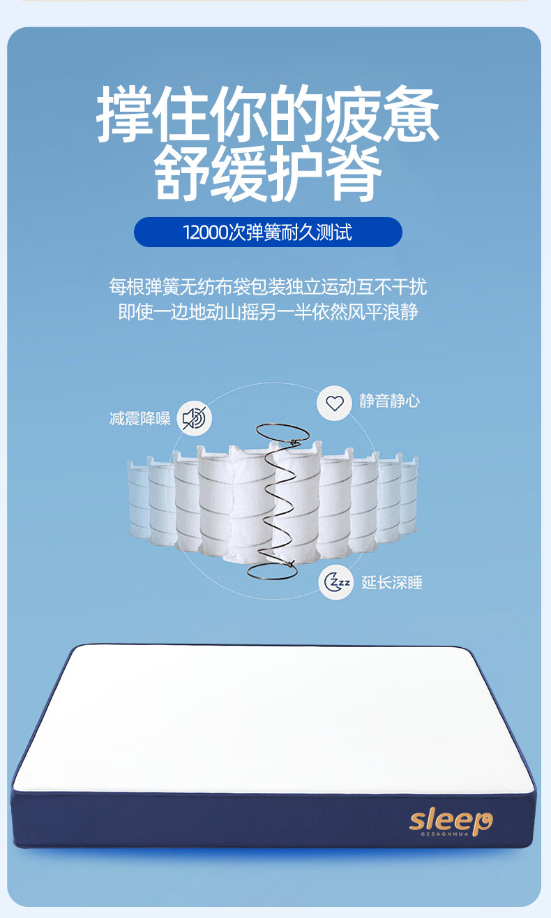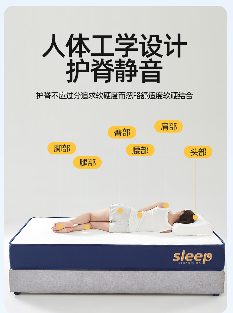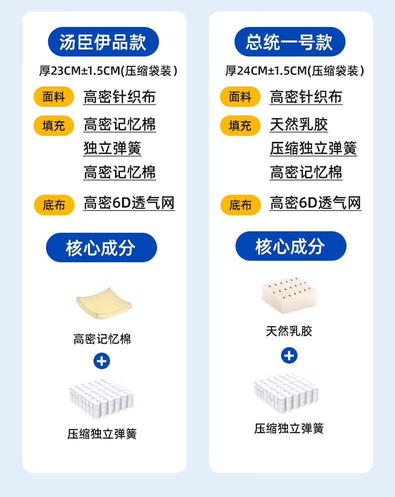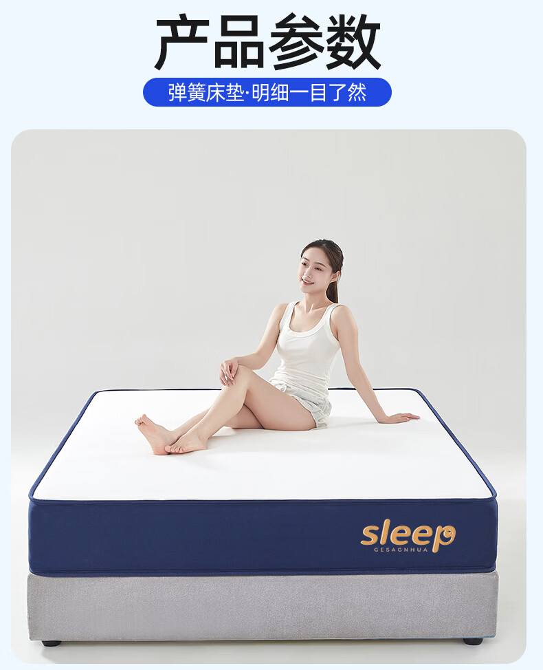 VJE记忆棉乳胶床垫1.5米x2米加厚独立弹簧偏硬床褥垫家用席梦思垫子 小蓝盒白-厚约24cm-弹簧乳胶 200*220cm