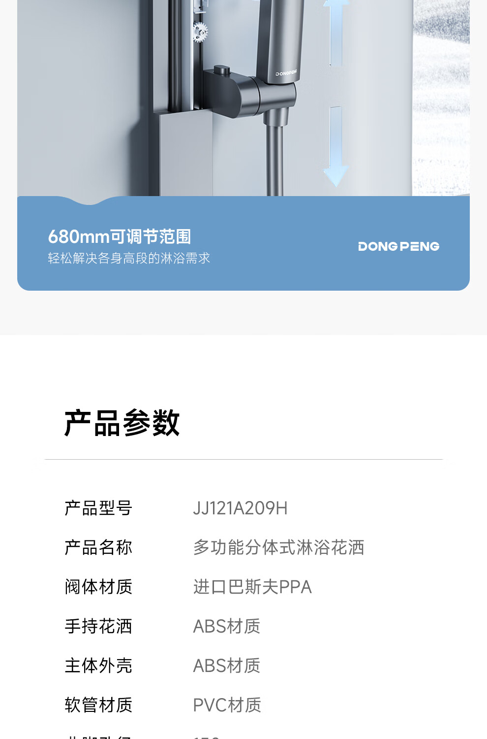 东鹏(DONGPENG)东鹏(DONGPENG)淋浴花洒简易二功能巴斯夫主体冷热淋浴花洒套装 【209H巴斯夫水路智芯控温简易款花洒】 无规格