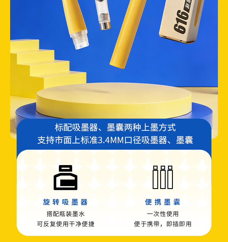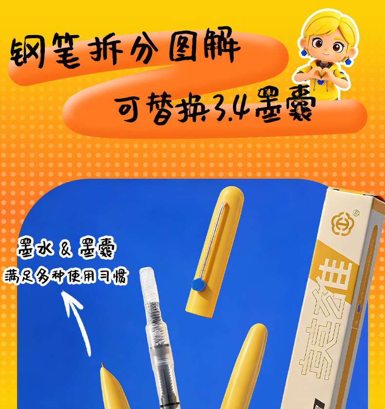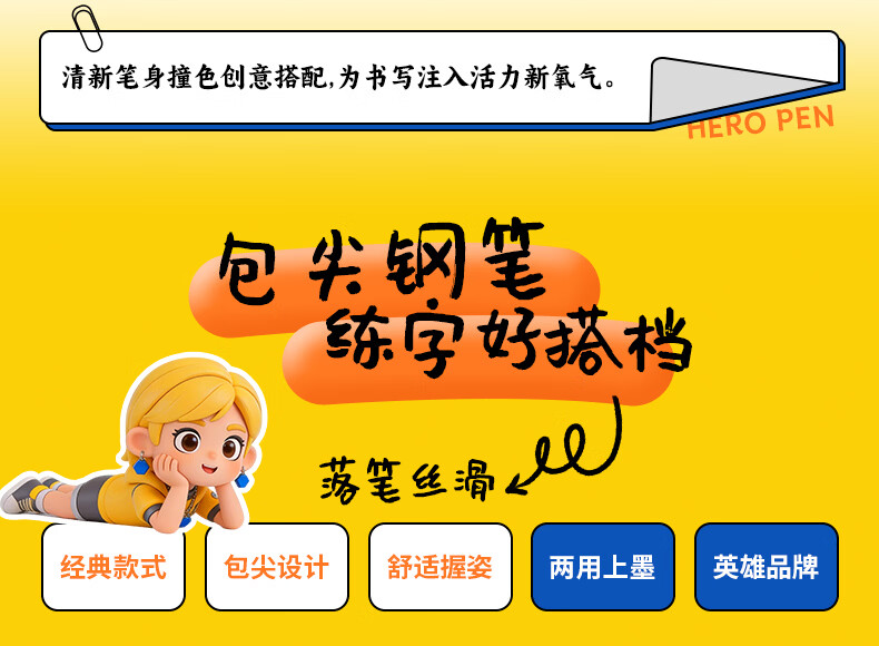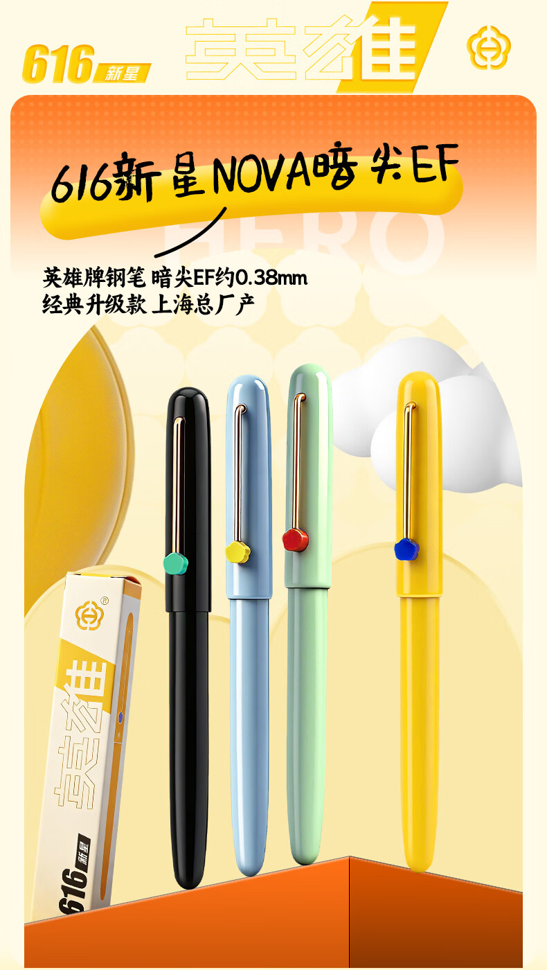 英雄(HERO)钢笔 【开学礼物】签字笔书写练字笔学生墨水笔初学练字男女生日礼物三四年级墨囊EF尖 616新星 黄+绿+蓝+黑【赠20支墨囊】