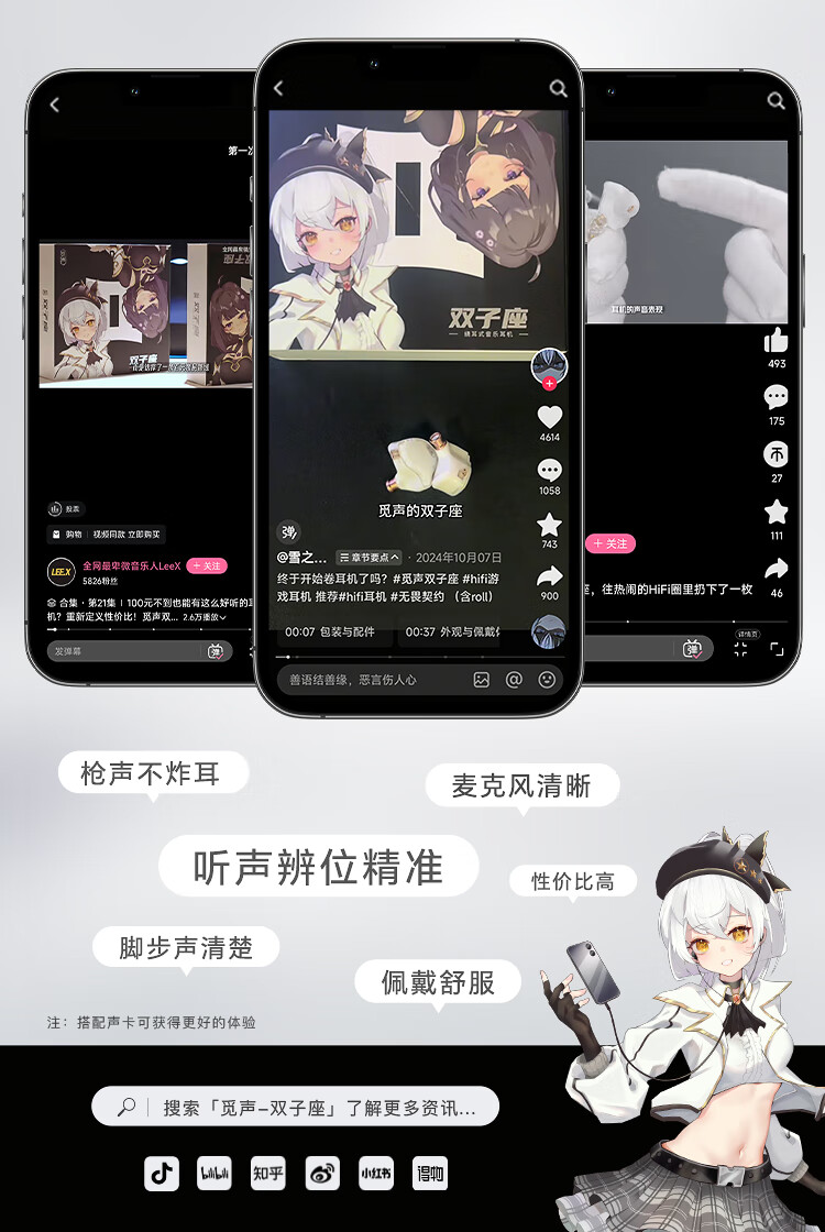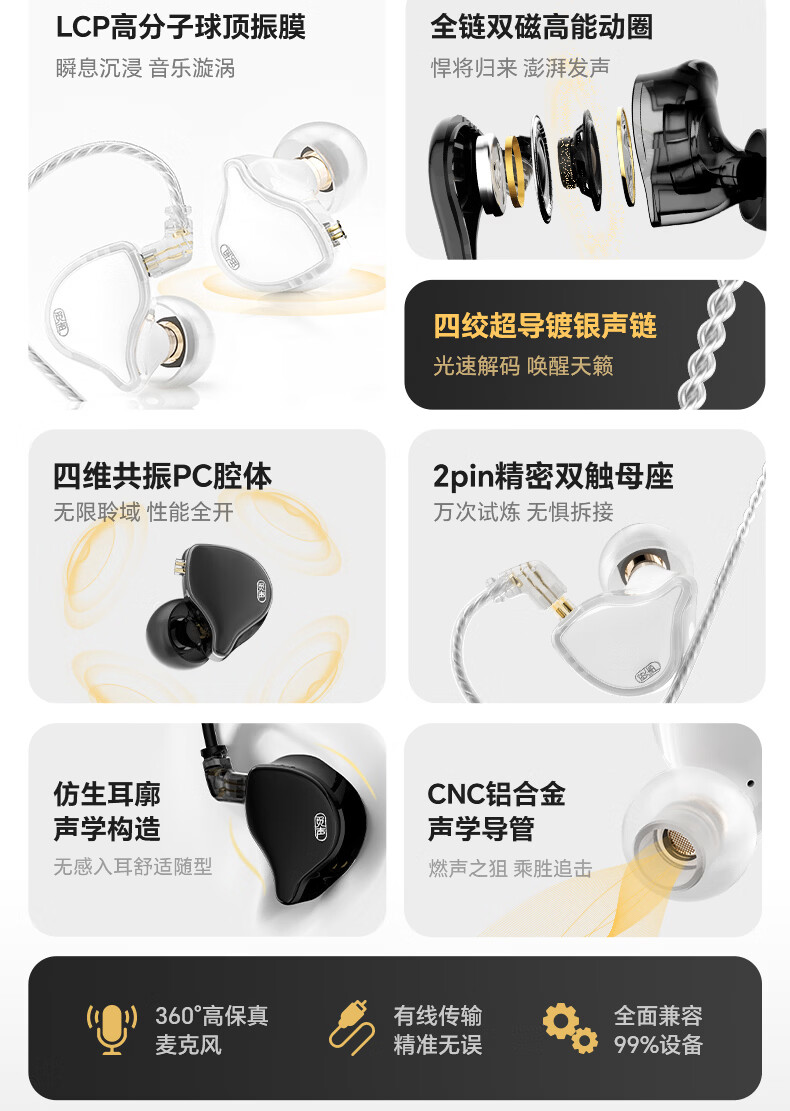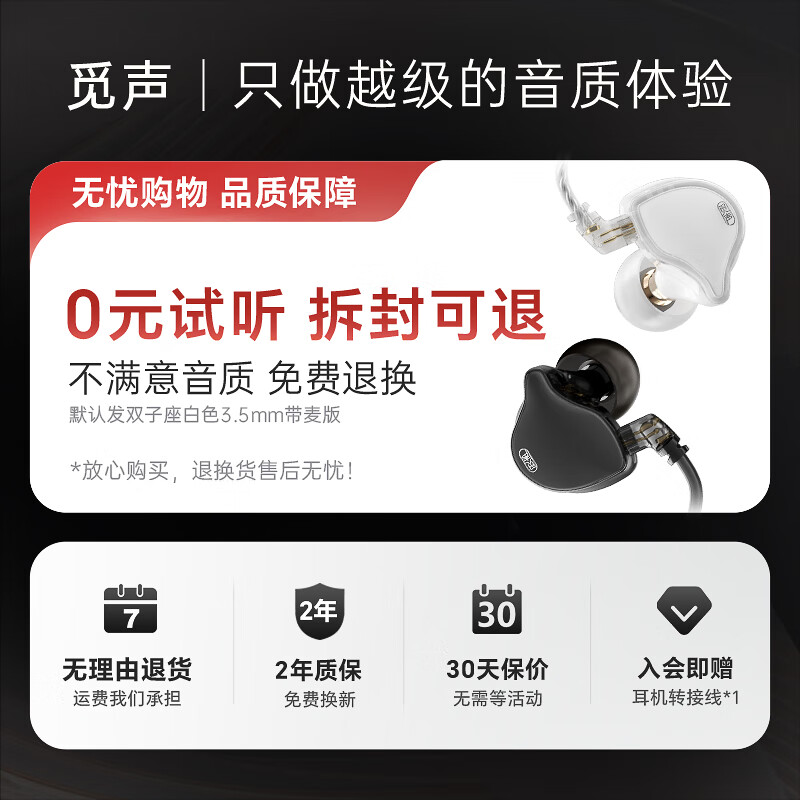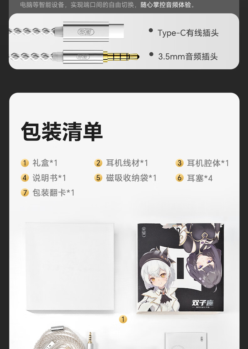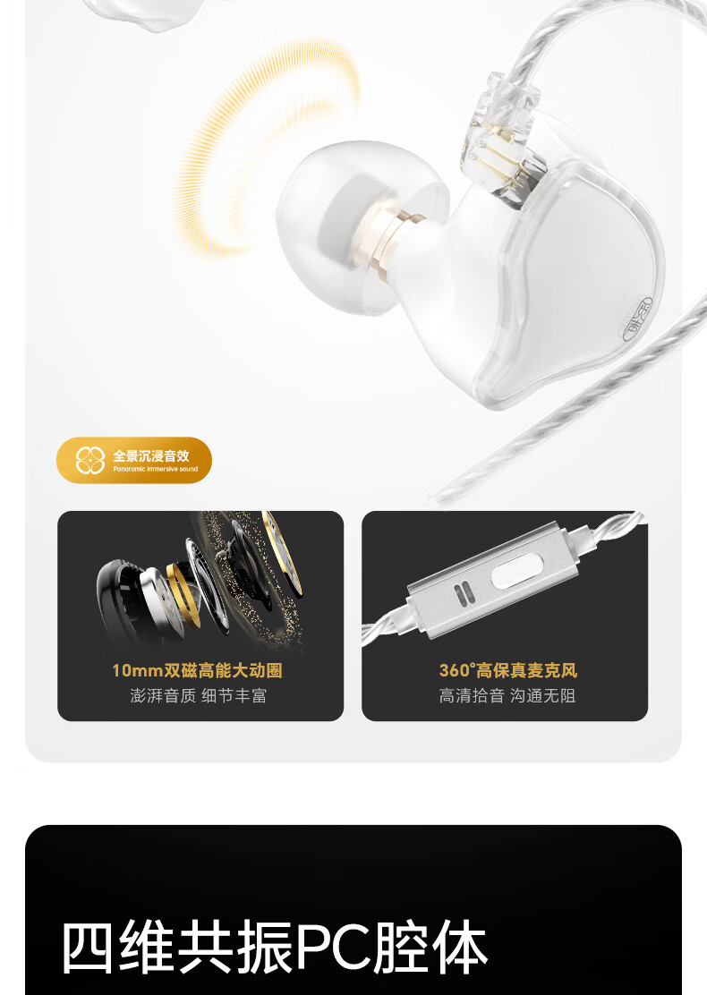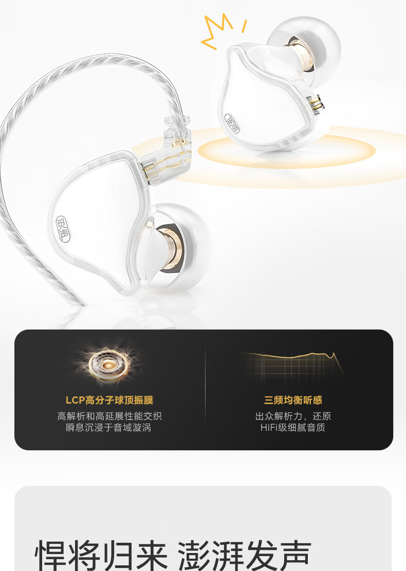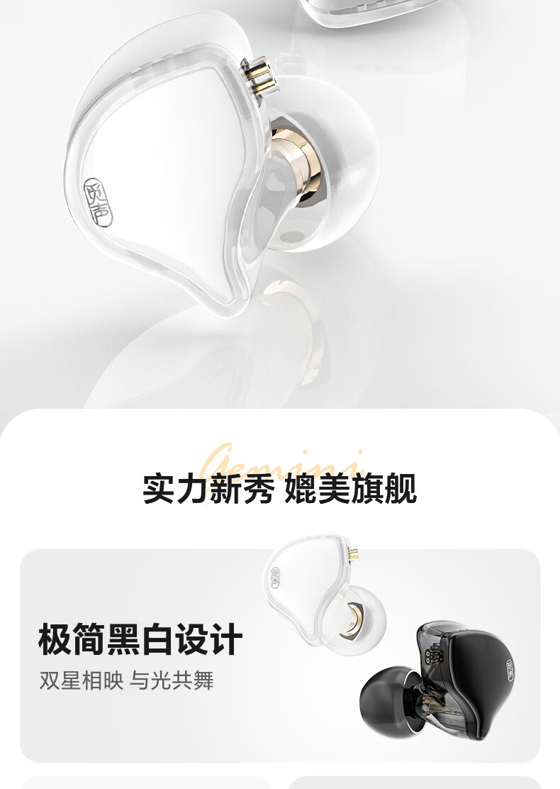 觅声双子座入耳式有线耳机HiFi级高音质专业听声辨位fps电脑游戏电竞专用带麦音乐吃鸡三角洲可换线 白瓷-3.5mm带麦-入会赠迷你声卡