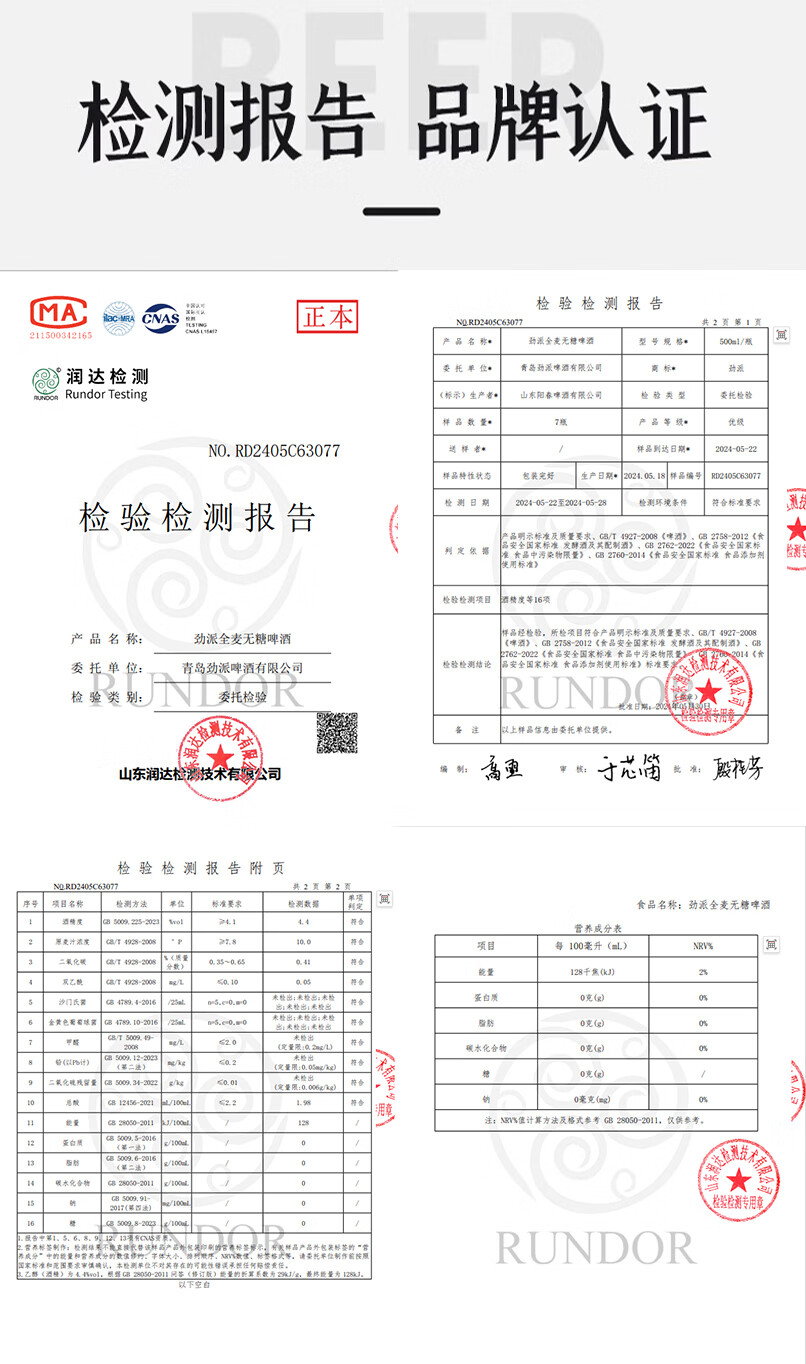 劲派无糖啤酒0糖0脂肪0碳水无添加拉格零糖零脂全麦精酿零糖啤酒整箱 零糖啤酒 500mL 12罐 礼盒装
