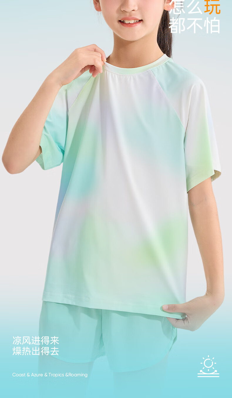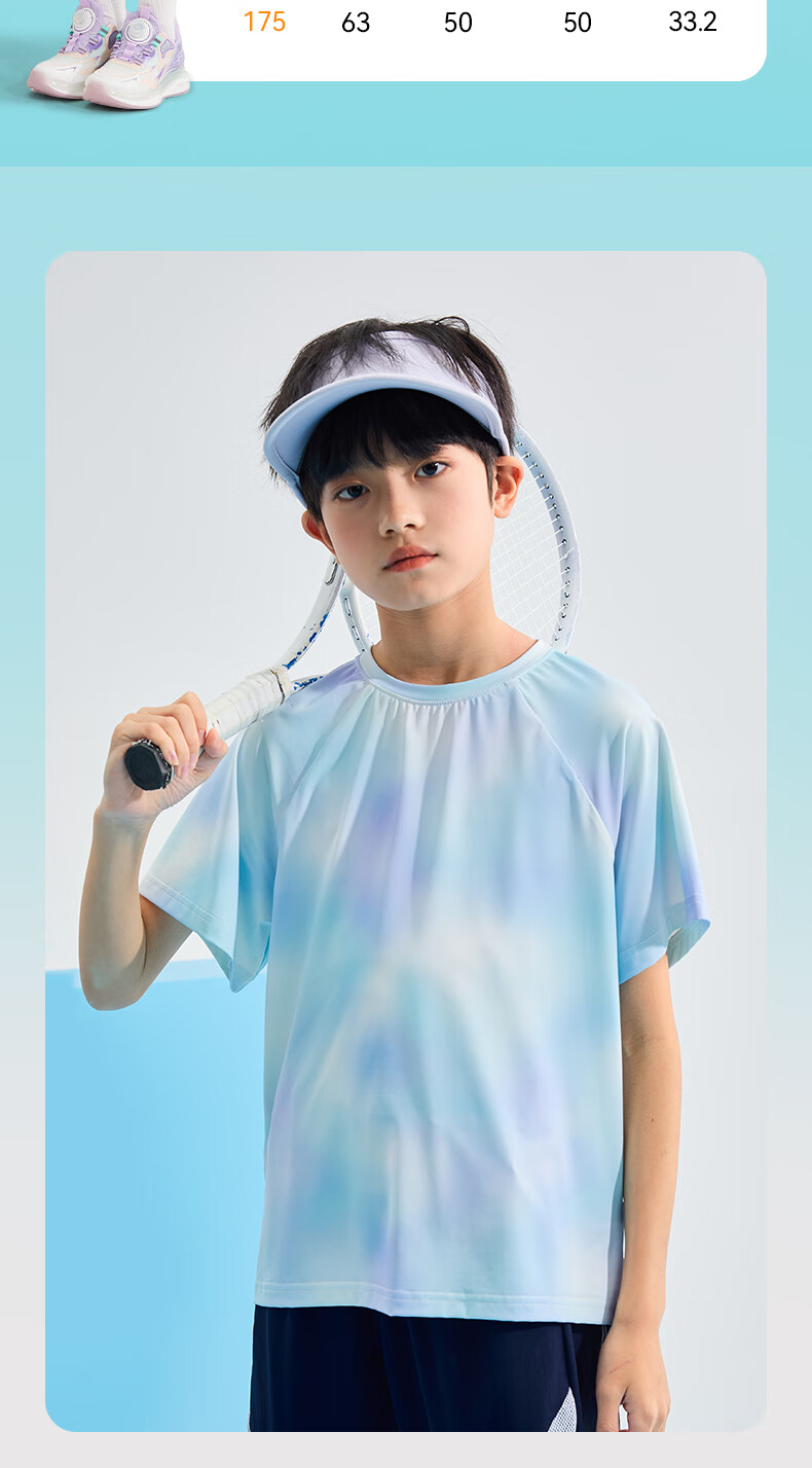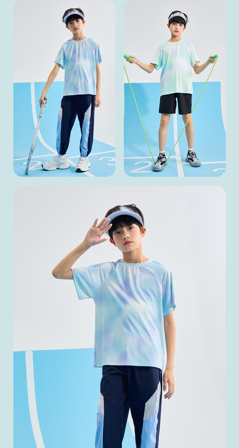 回力童装男童套装夏季2026新款儿童运动速干短裤女童扎染夏装凉感短袖 蓝紫/H白回力小K-黑/H白回力小K 130