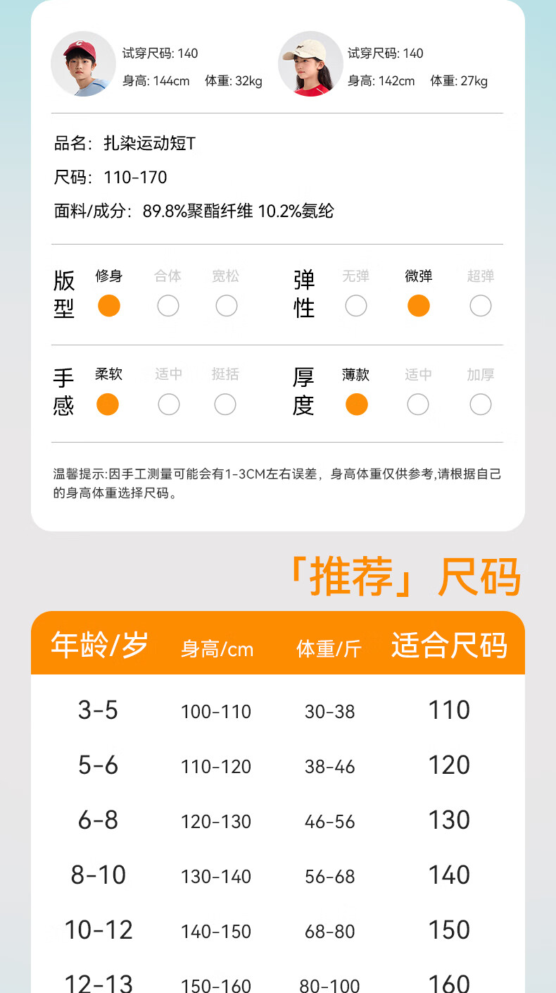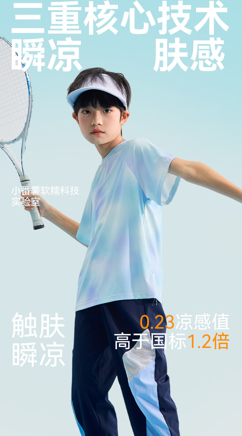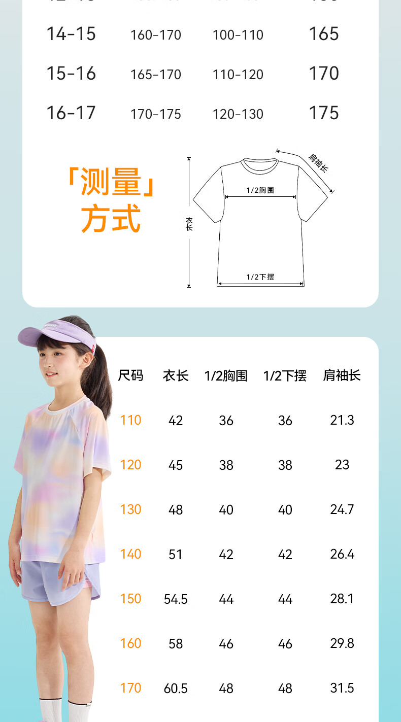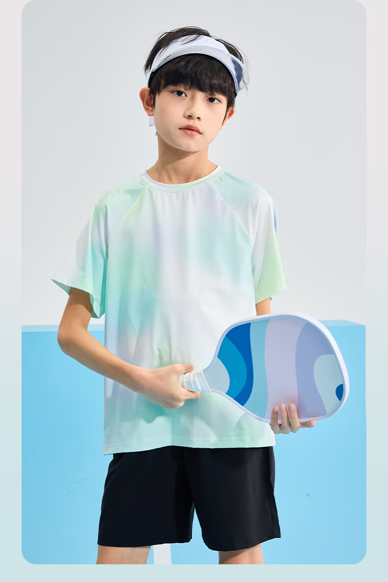 回力童装男童套装夏季2026新款儿童运动速干短裤女童扎染夏装凉感短袖 蓝紫/H白回力小K-黑/H白回力小K 130