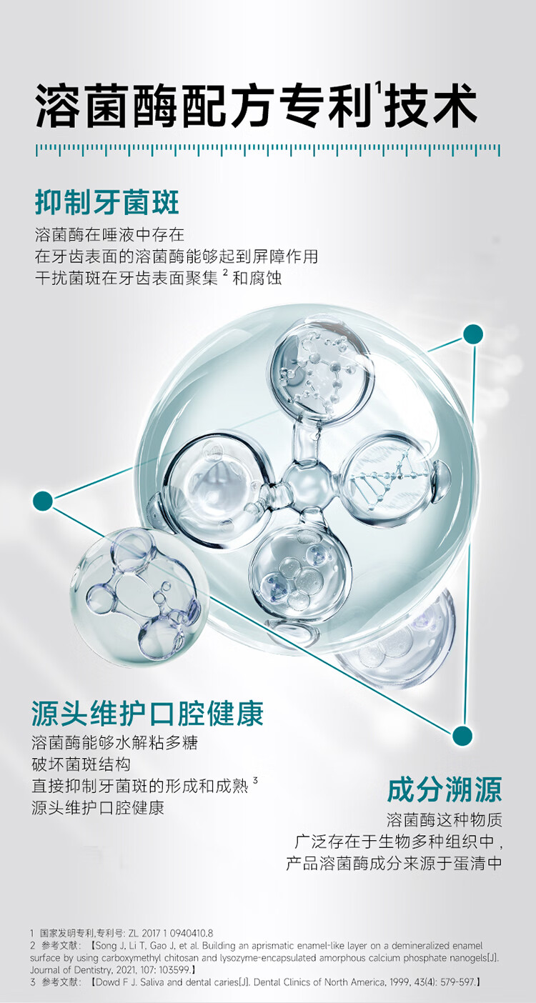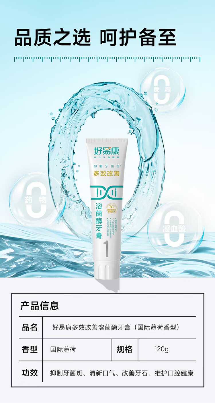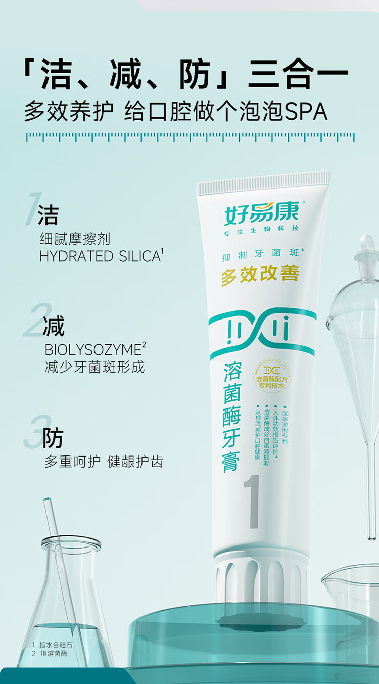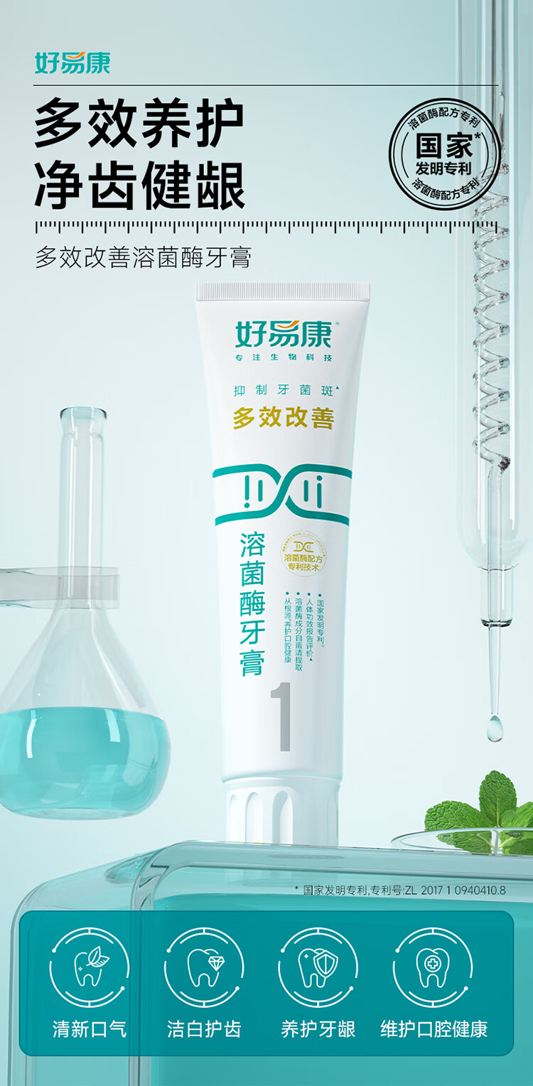 好易康溶菌酶牙膏 清新口气抑制牙菌斑洁白去渍多效养护 1号5支装【120g*5】