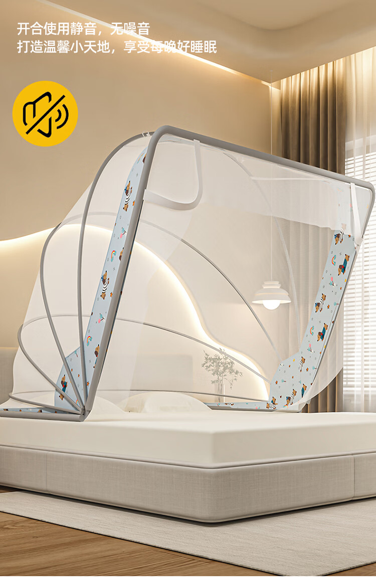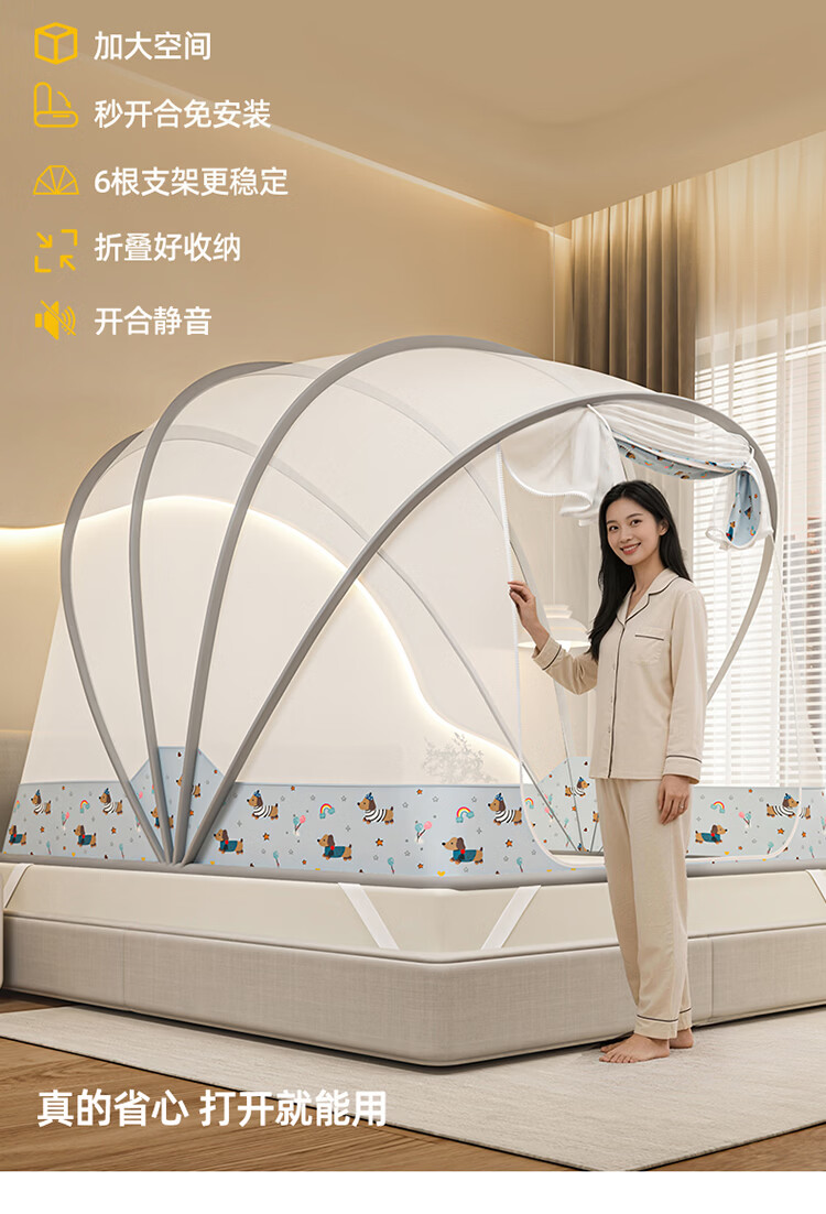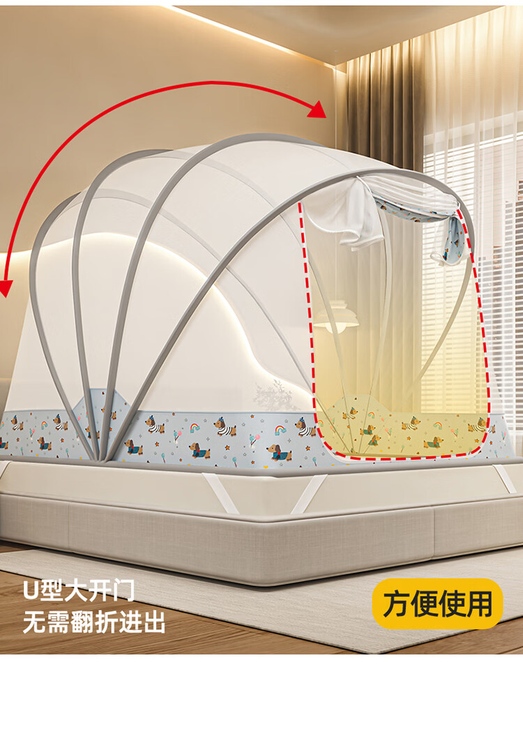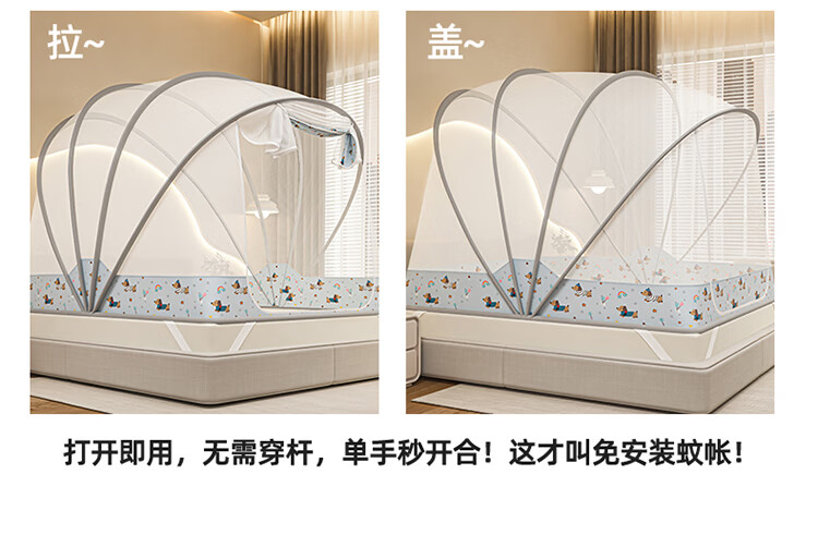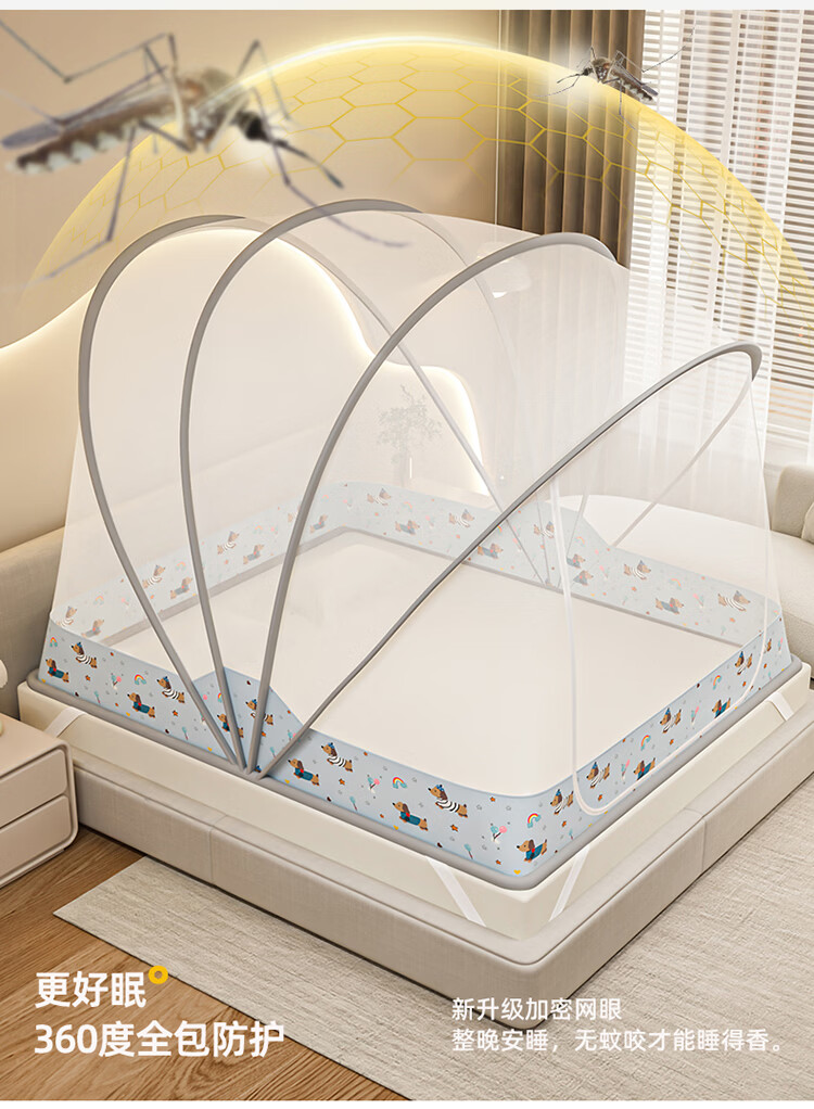 无印良品蒙古包蚊帐1.5x2米家用免安装蚊帐床上帐篷一体式可折叠防蚊防摔 格子【加密帐纱 加粗钢股】 190cm*100cm*90cm 【1.2m床】