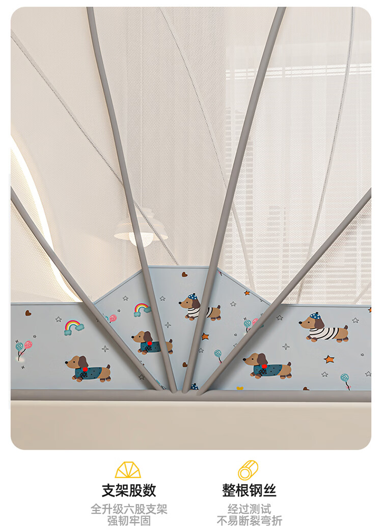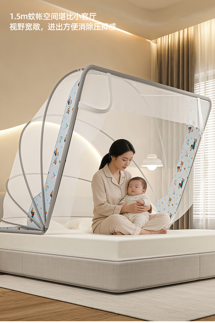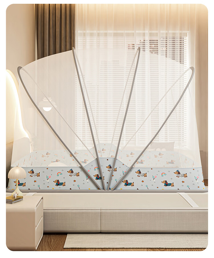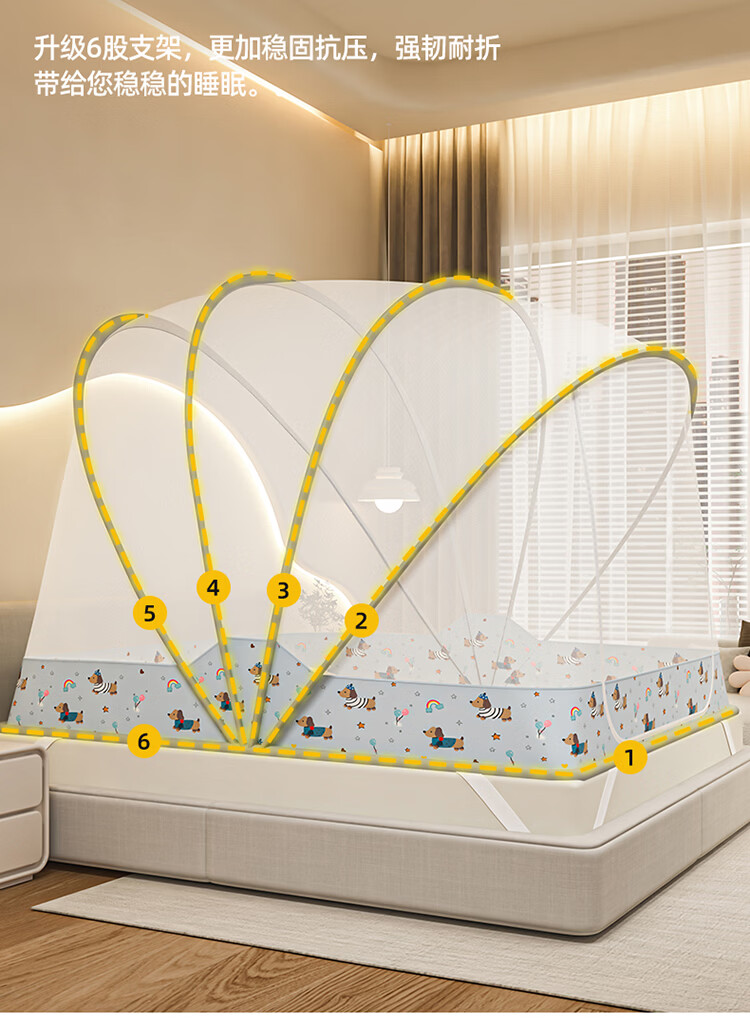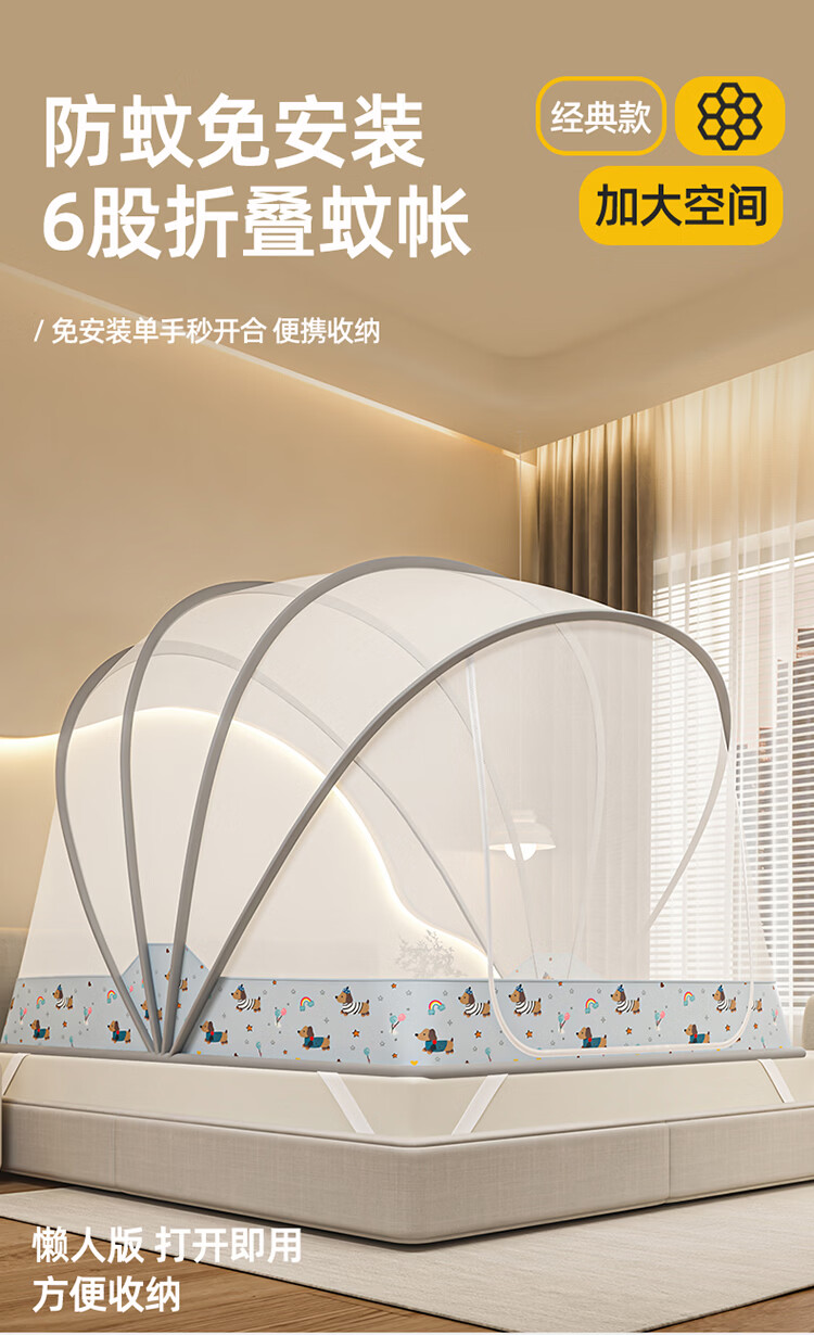 无印良品蒙古包蚊帐1.5x2米家用免安装蚊帐床上帐篷一体式可折叠防蚊防摔 格子【加密帐纱 加粗钢股】 190cm*100cm*90cm 【1.2m床】