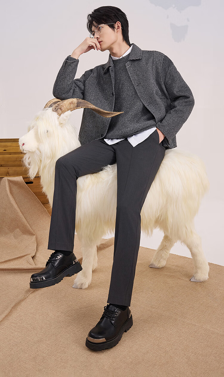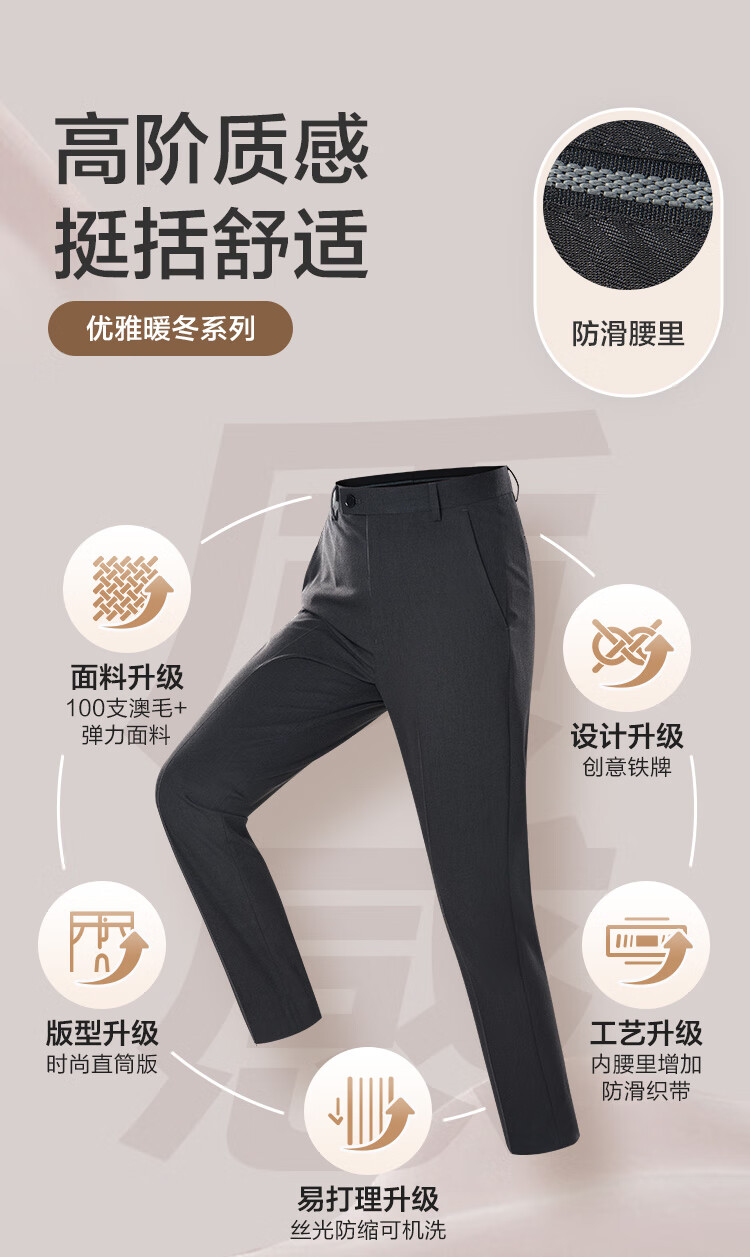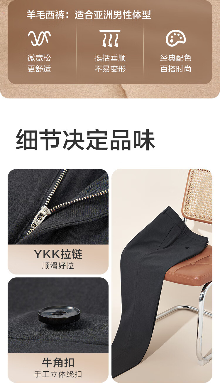 京东京造【可机洗羊毛西裤】裤子男商务休闲裤西装送礼物新春情人节黑34
