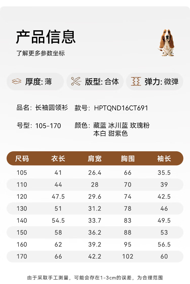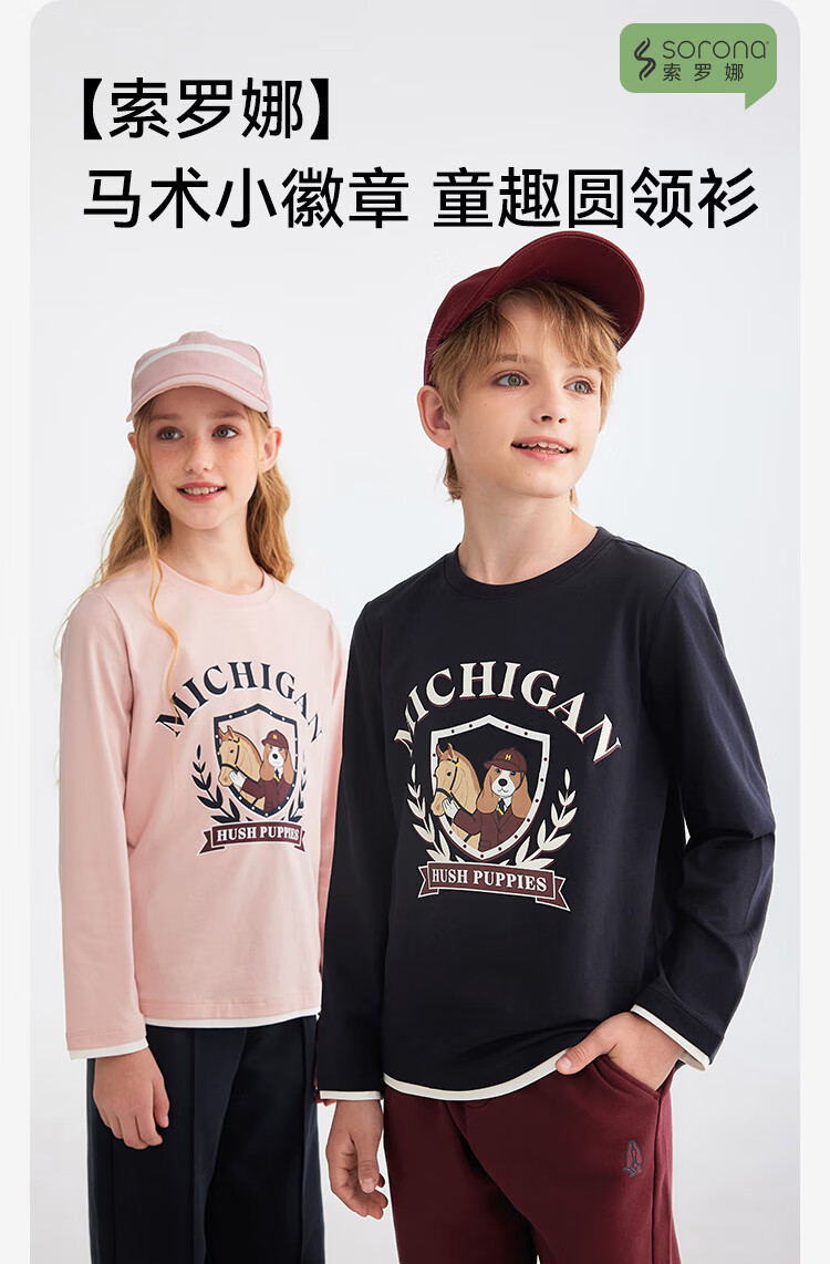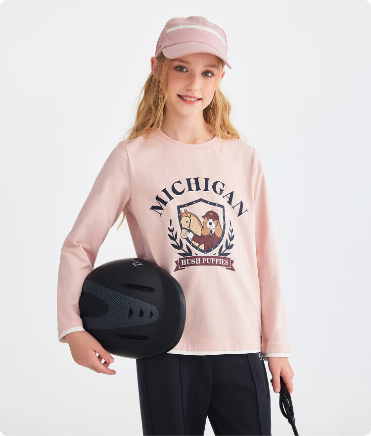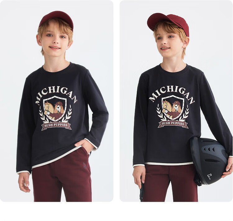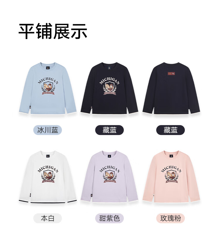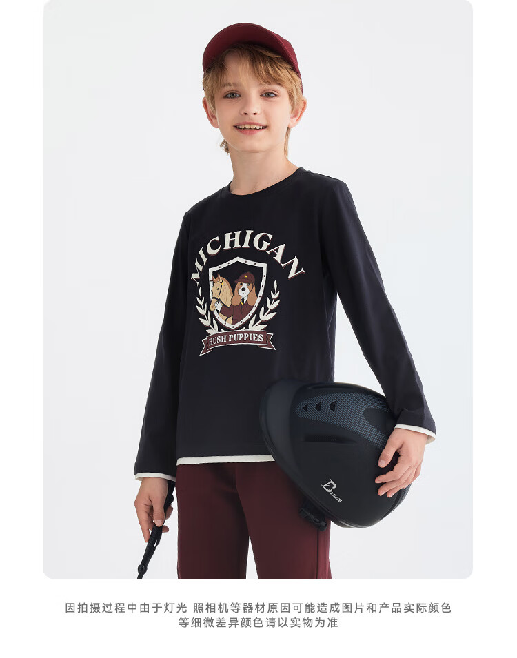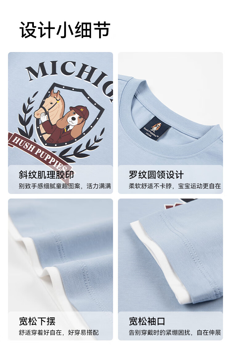 暇步士(Hush Puppies)童装儿童男女童2025秋季新款舒适百搭卡通印花经典长袖圆领衫 冰川蓝 170 cm