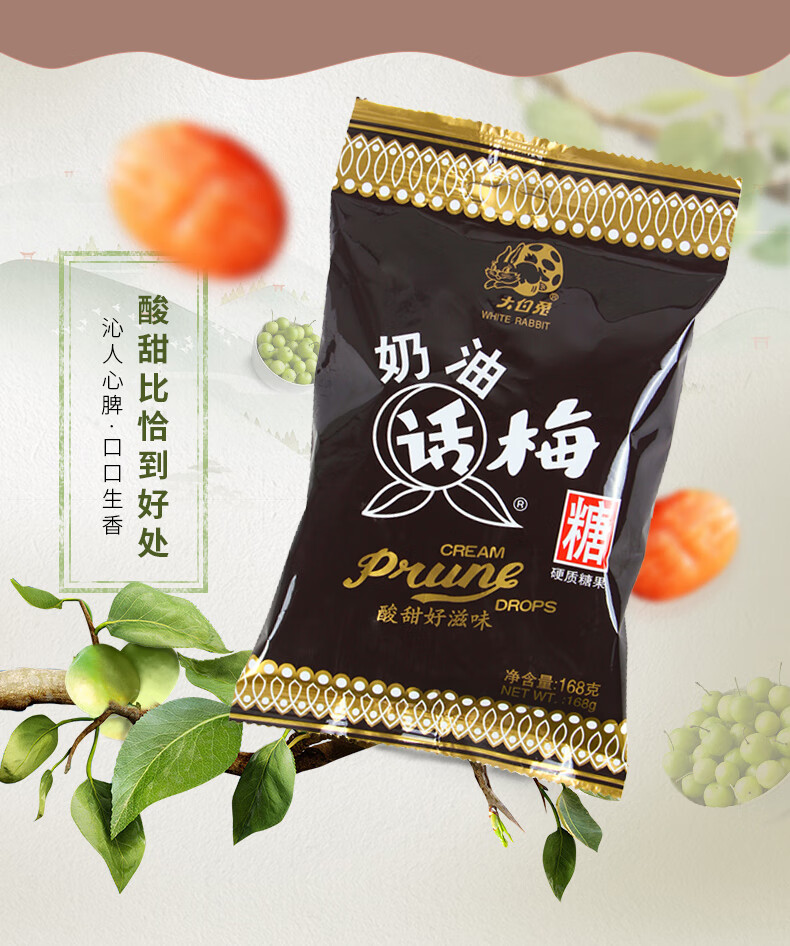大白兔奶油话梅糖168g约30颗 酸甜新年零食上海特色硬糖果小包装