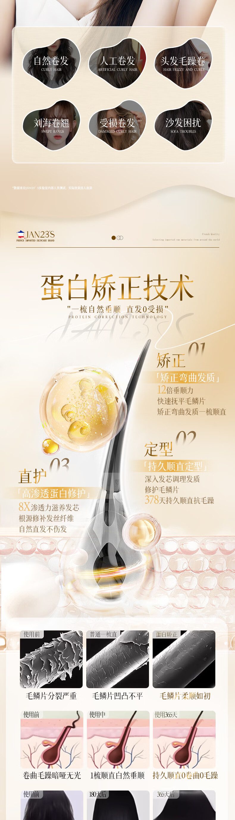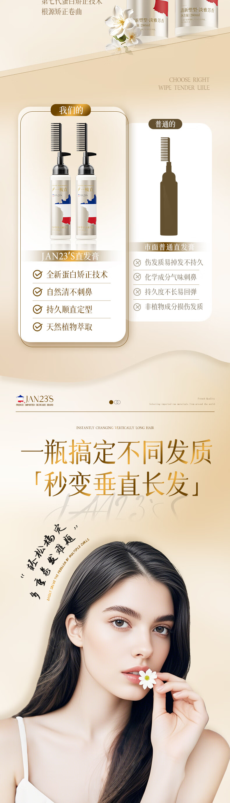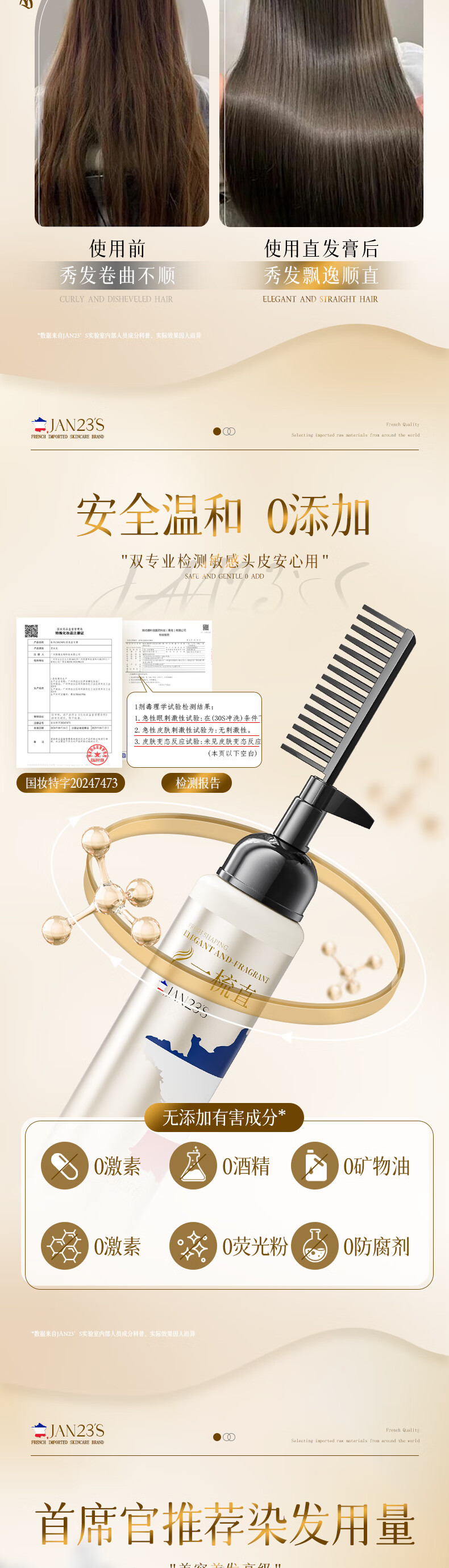 JAN23'S蛋白矫正直发膏头发免夹免拉一梳直柔顺软化剂不伤发男女士280ml