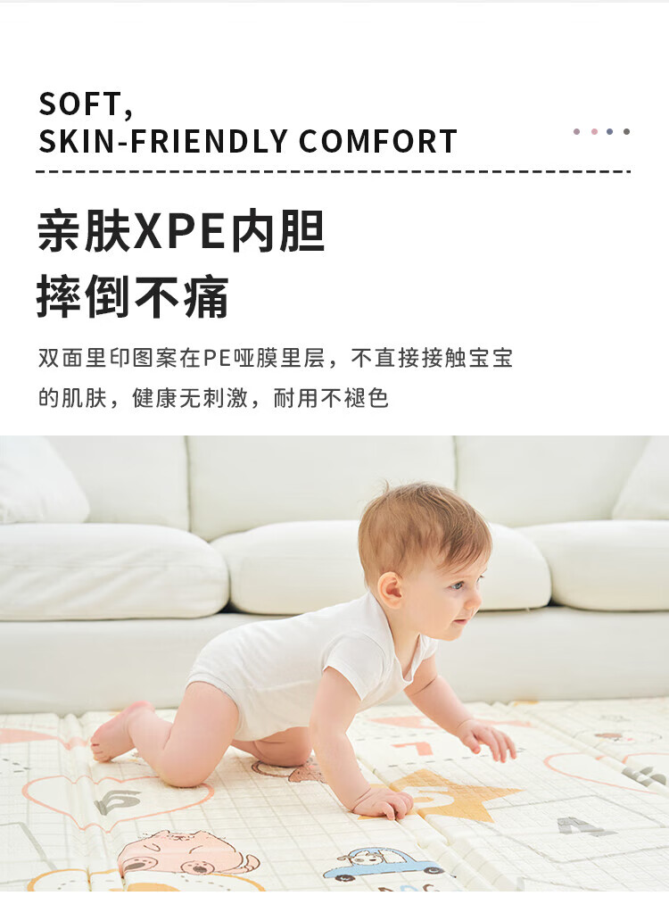 乐缔XPE爬行垫婴儿宝宝爬爬垫双面加厚家用可折叠泡沫地垫200/180/1CM