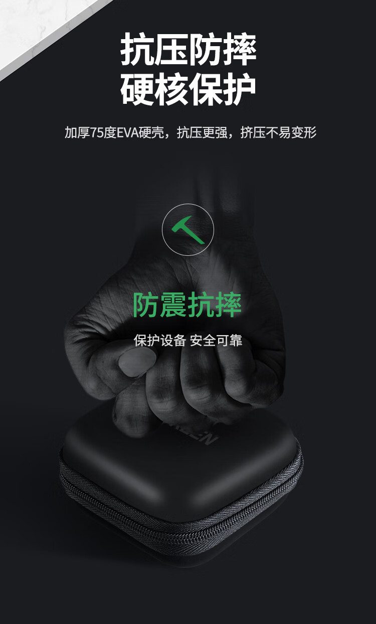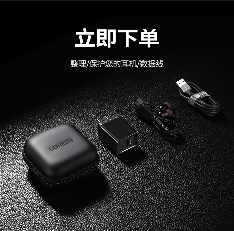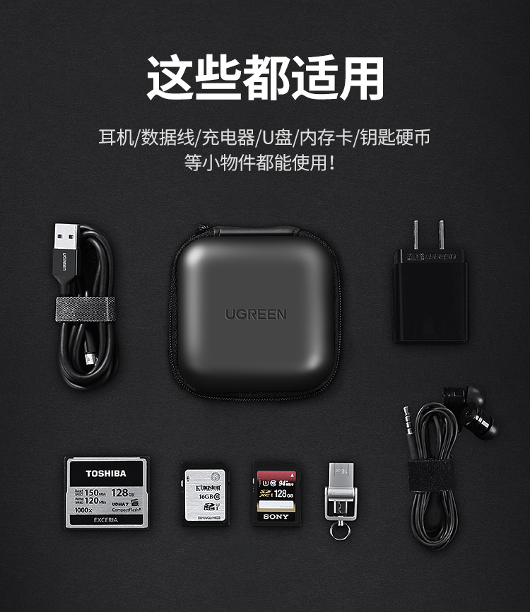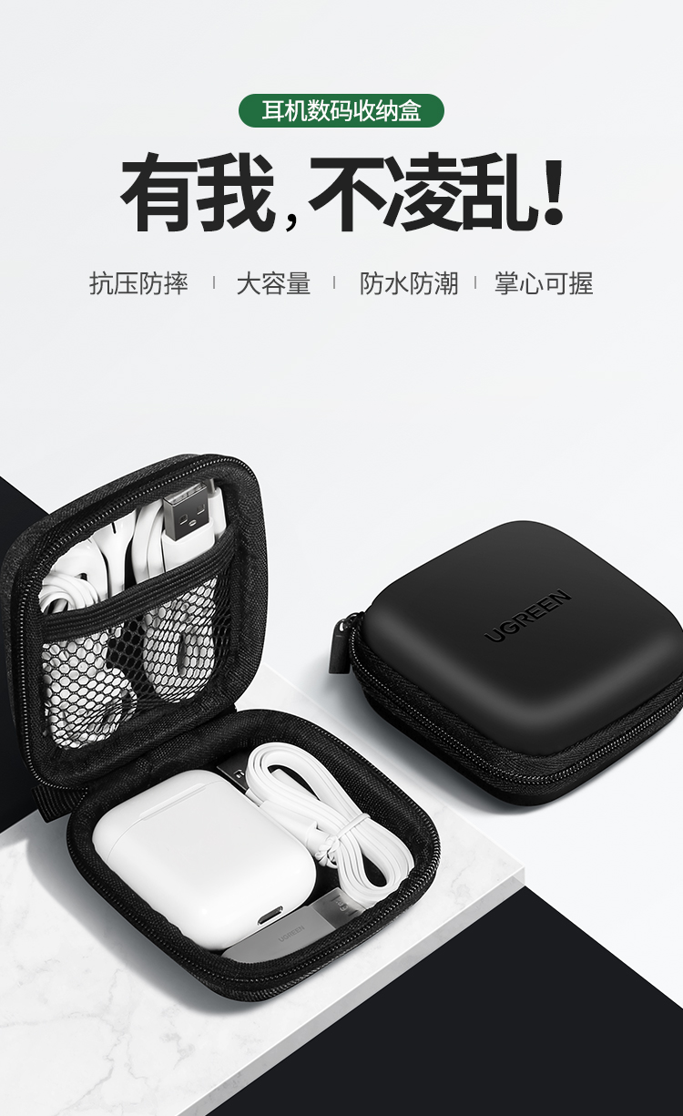 绿联 耳机收纳盒 数据线充电器U盘读卡器U盾内存卡收纳包便携式小巧旅游蓝牙耳机包防震减压数码整理包