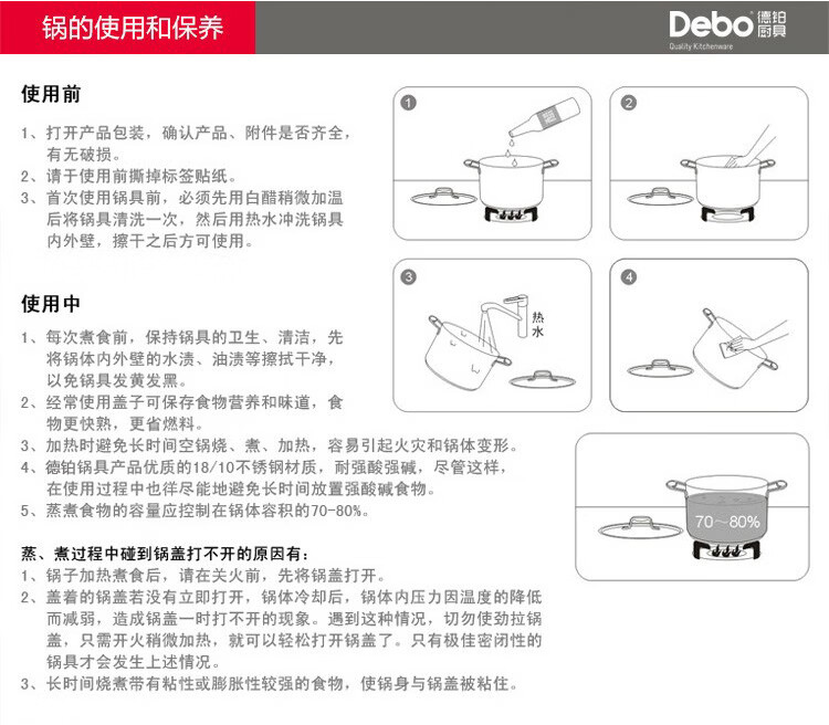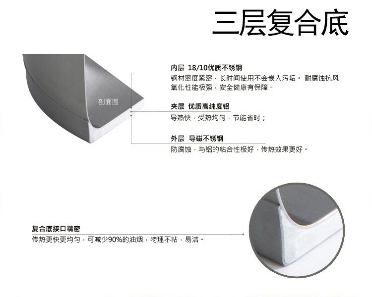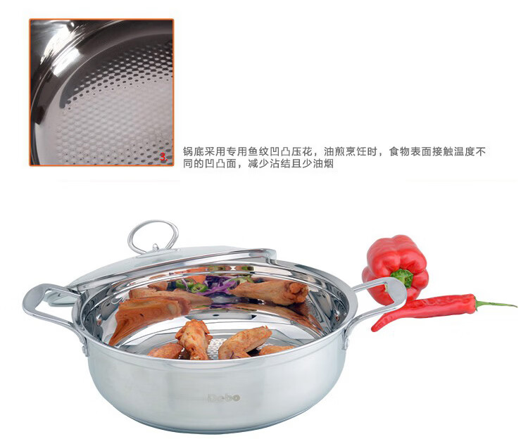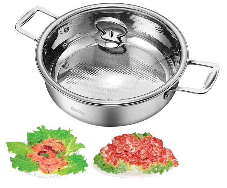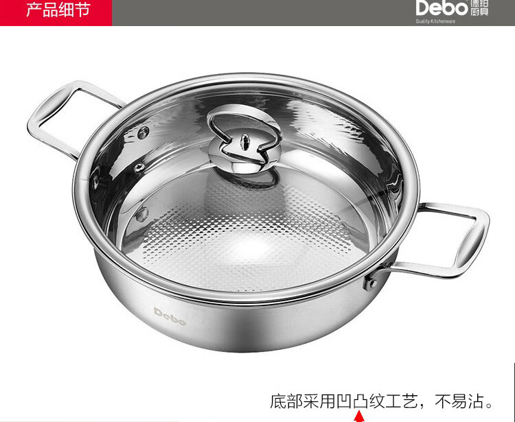 Debo德铂不锈钢汤煎锅加厚复底易清洗家用少油烟不挑灶