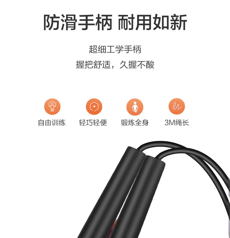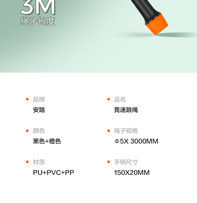安踏(ANTA)竞速健身燃脂减肥中考试训练瘦身学生专用运动成人跳绳 黑色