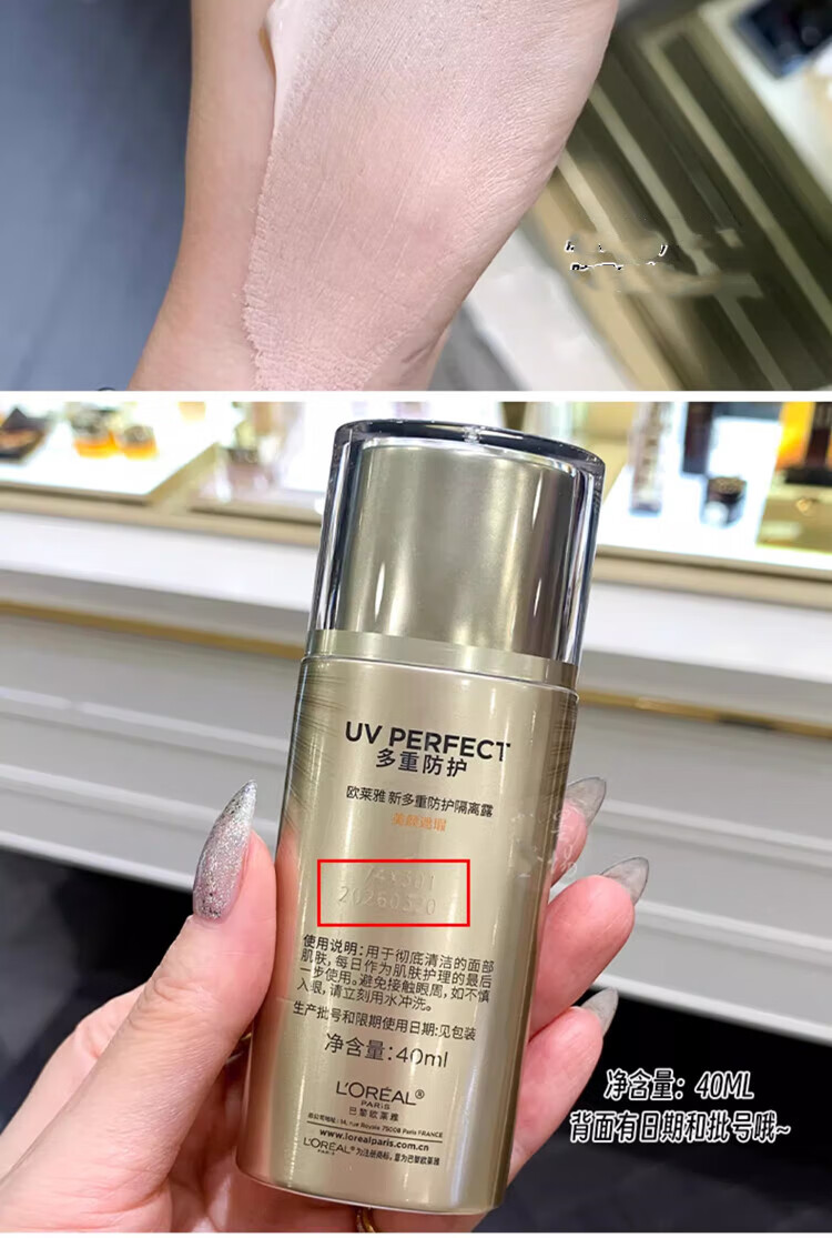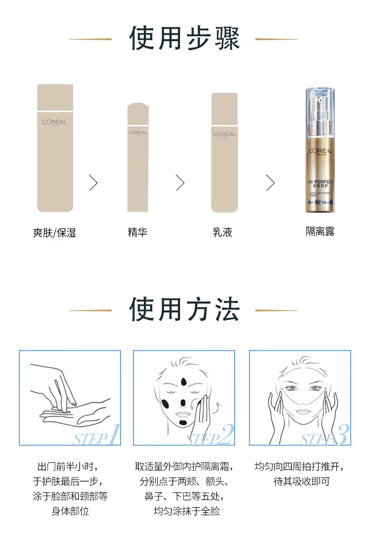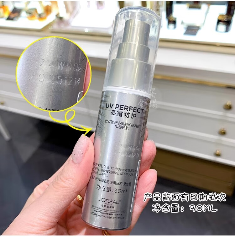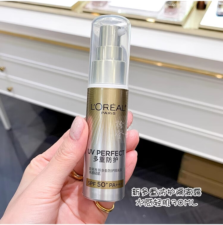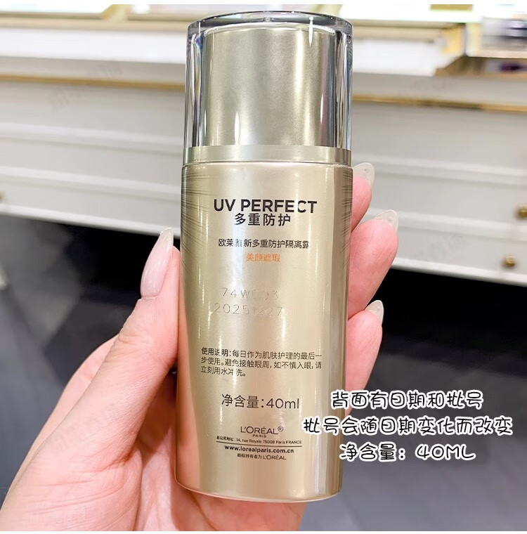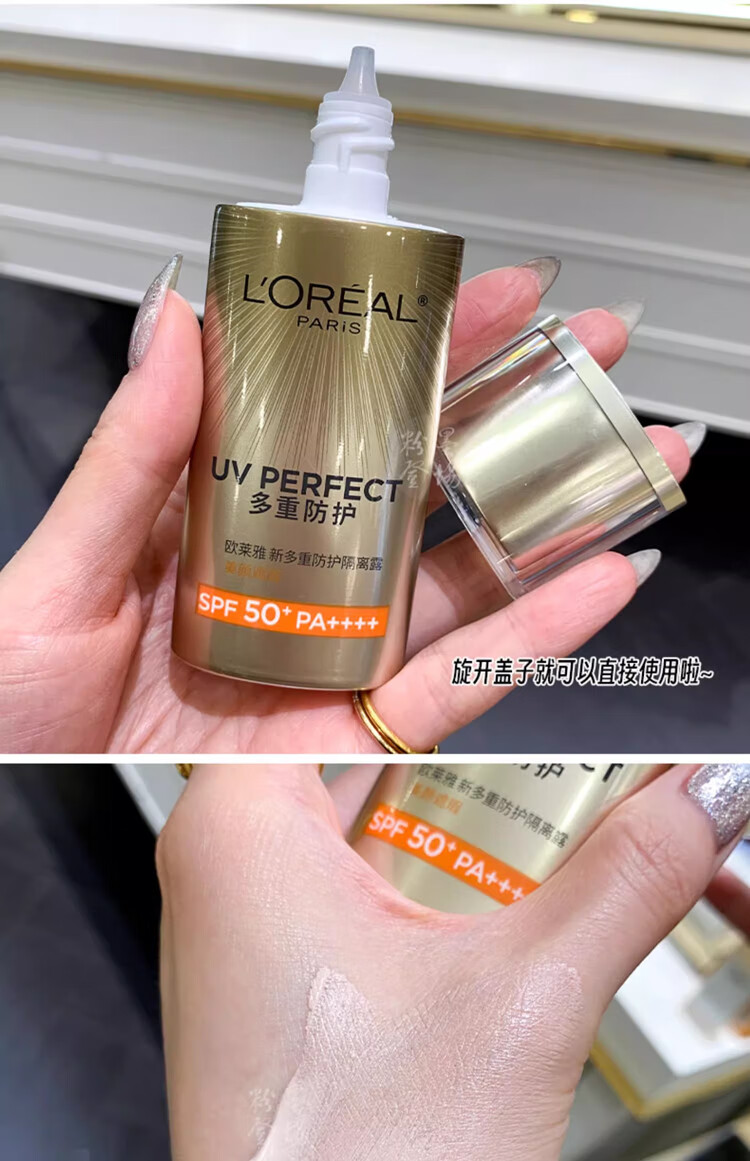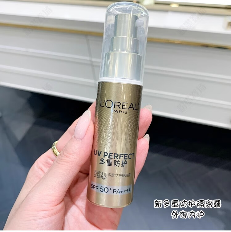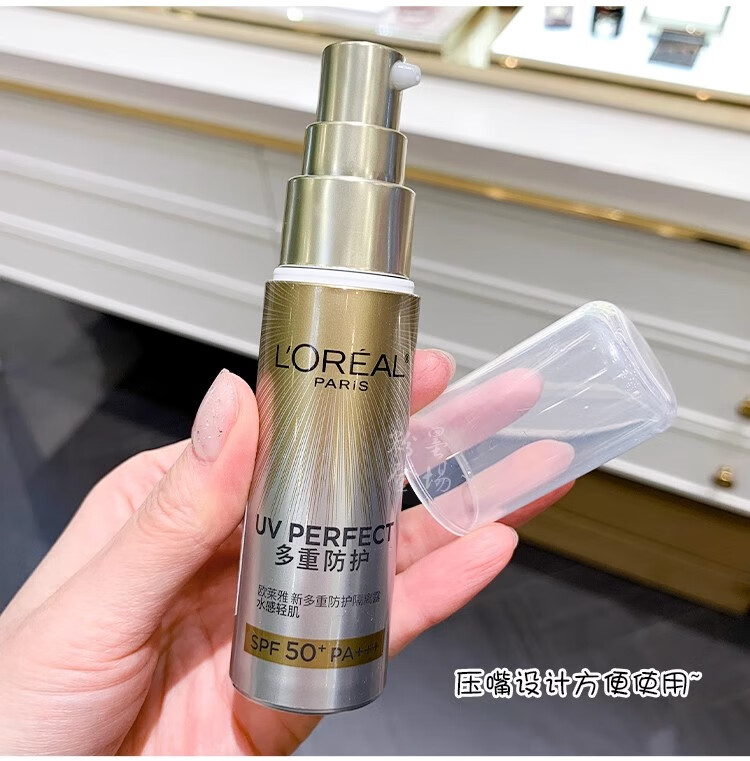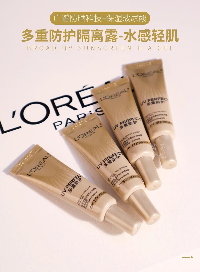 欧莱雅防晒乳霜 多重防护隔离露小金管/小银管/柔紫女士户外清爽不油腻 小金管防晒中样15ml*2支