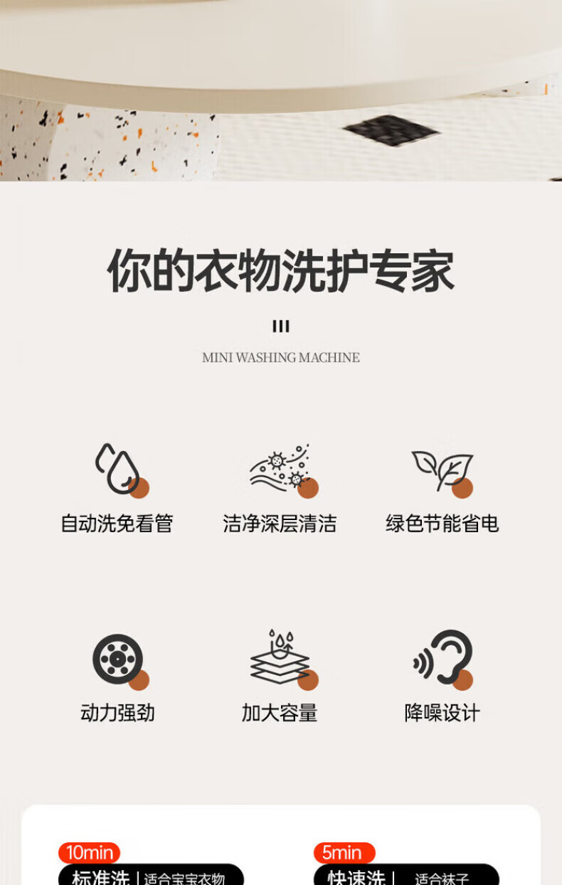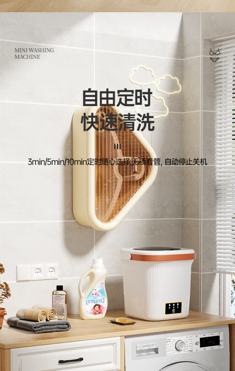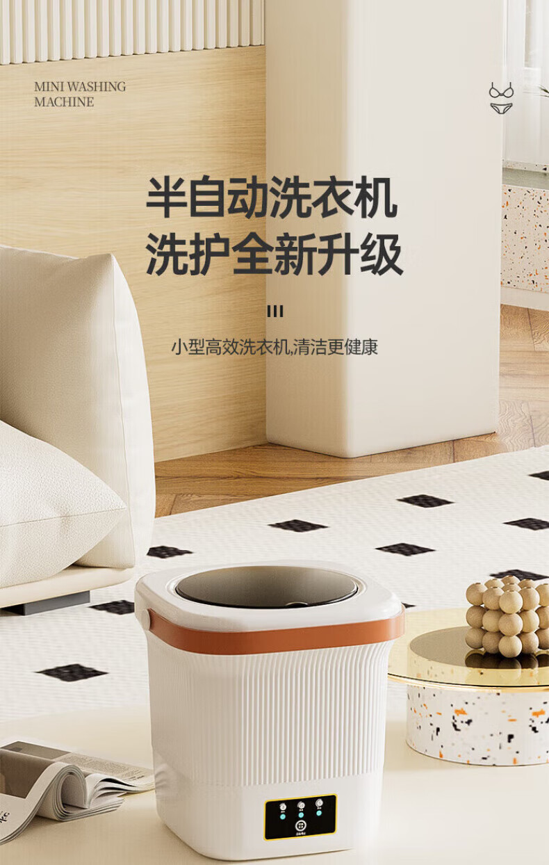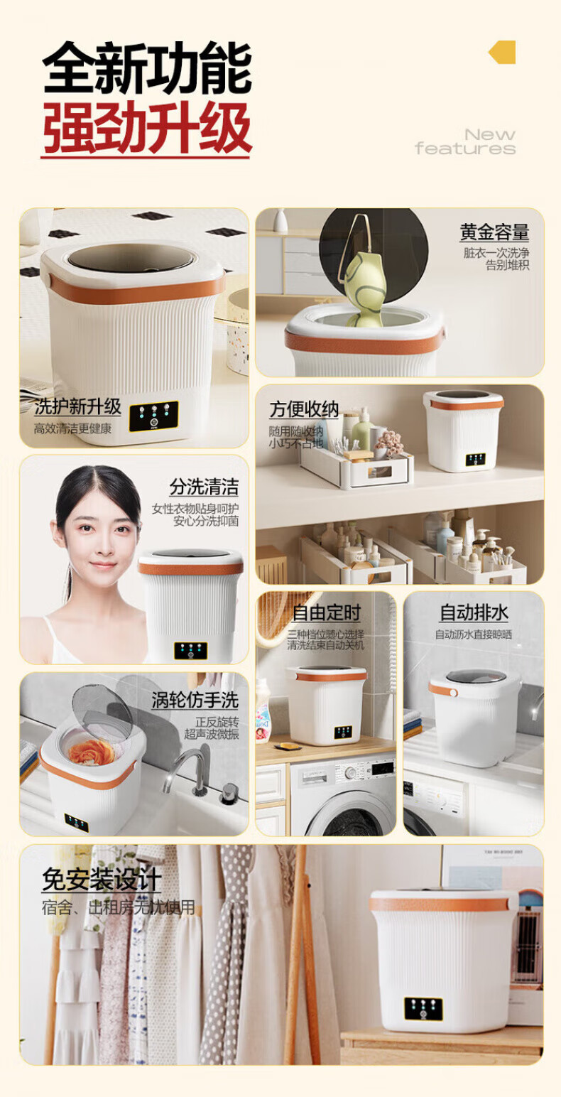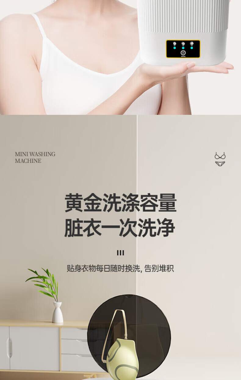 奥特优(AOTEYOU)内衣裤洗衣机洗袜子专用洗衣机小型洗衣杯迷你洗衣机双桶洗袜子机神器全自动洗脱一体婴儿宿舍便携 【效能臻享】6000mAh丨5L容量丨86%脱水率 【产品尺寸:345mm*171mm*277mm】