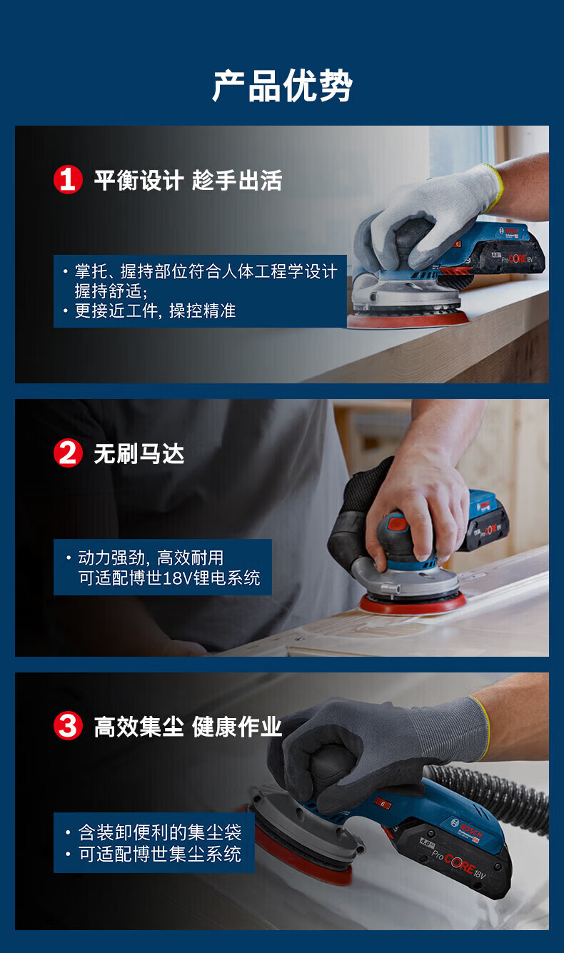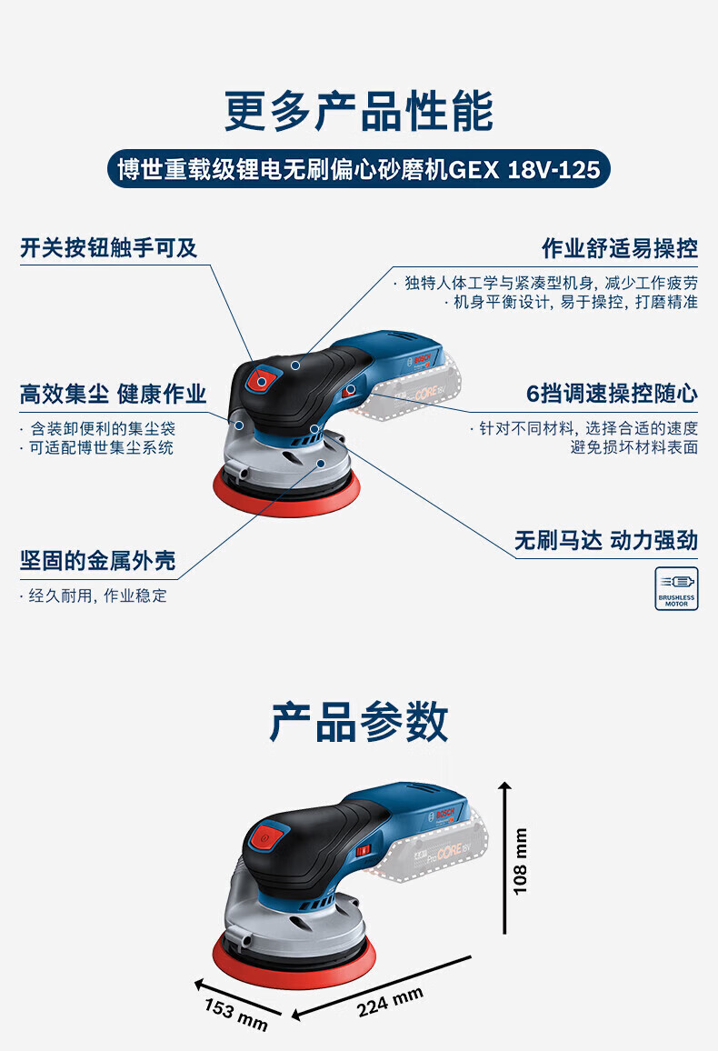 博世(BOSCH)充电砂纸机电动木工砂光机打磨无刷抛光砂磨机GEX18V-150-3 GEX18V-150-3裸机【无电池/充电器】