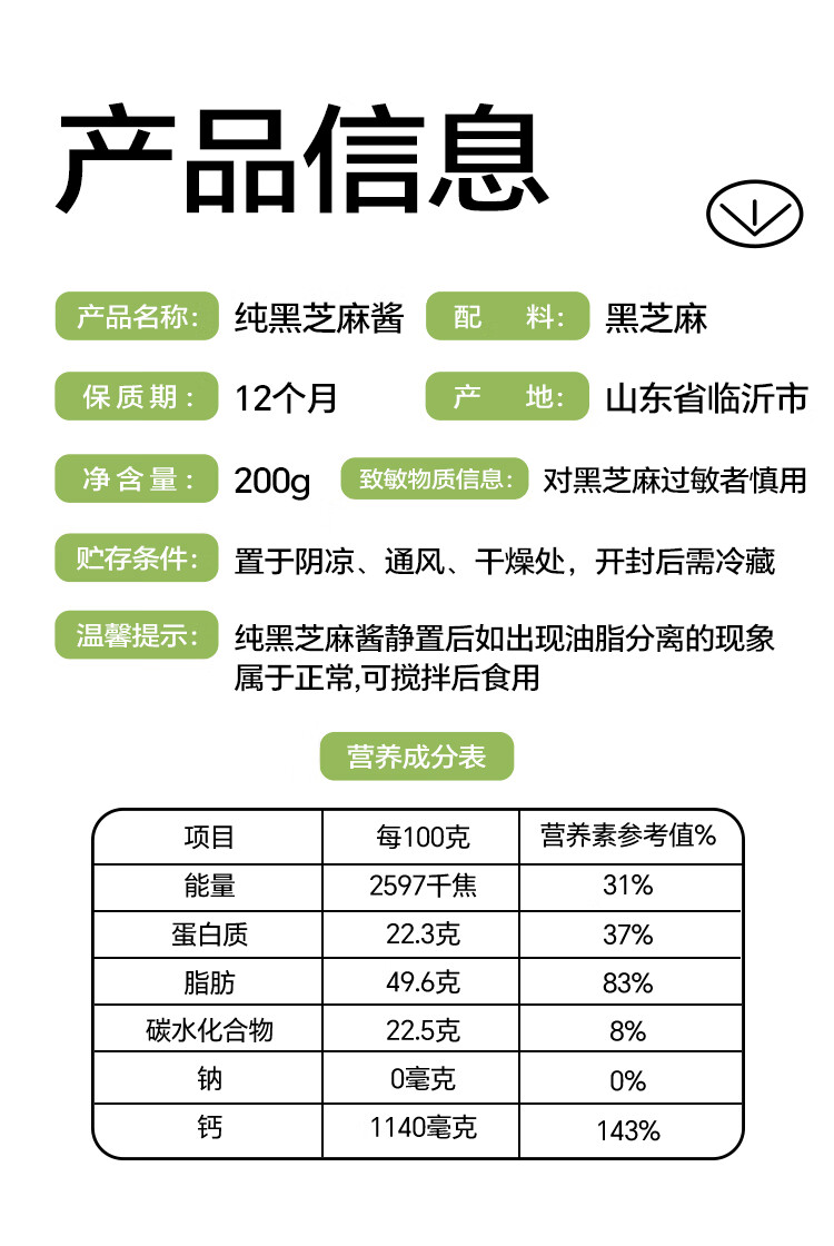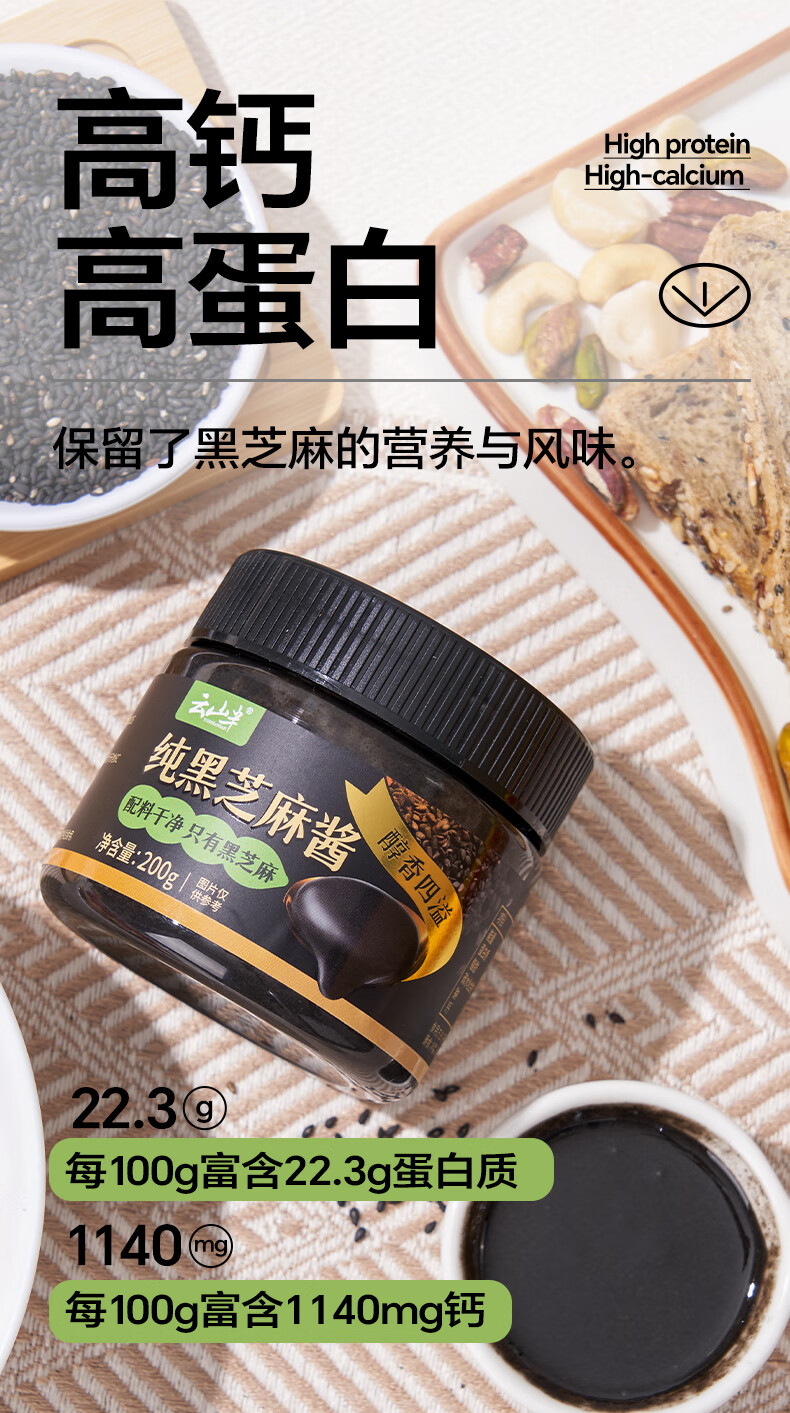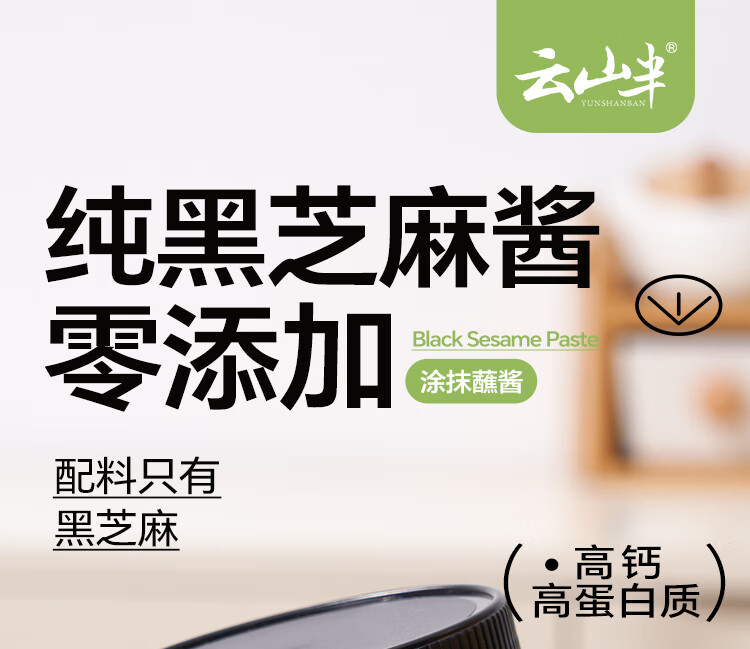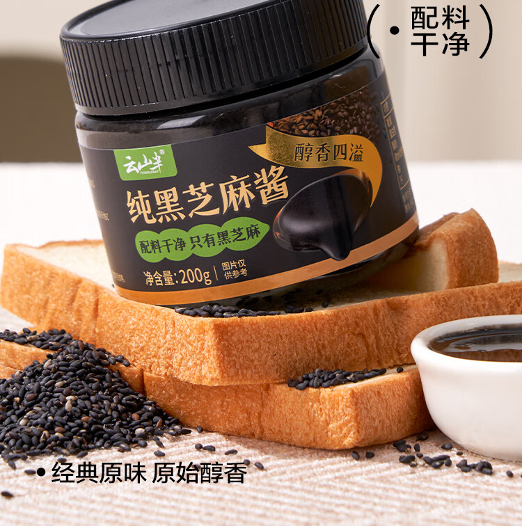 云山半纯黑芝麻酱200g 0添加剂拌面火锅蘸料面包涂抹酱老北京芝麻酱