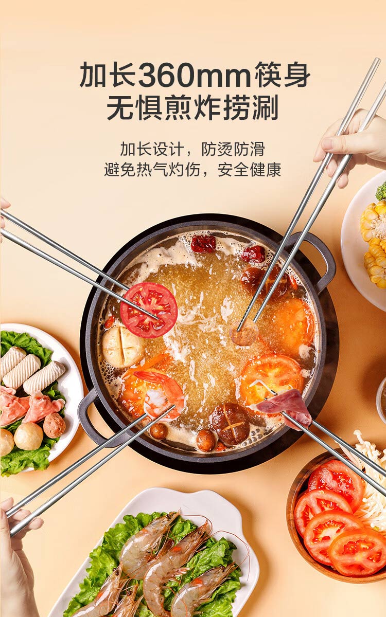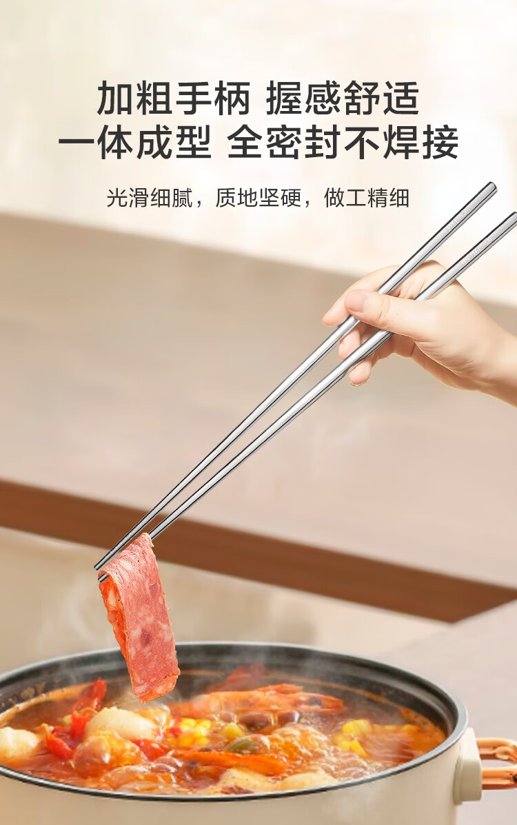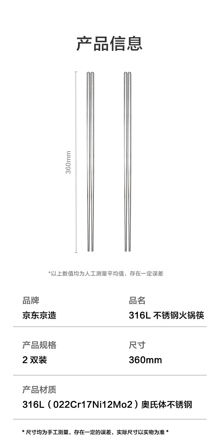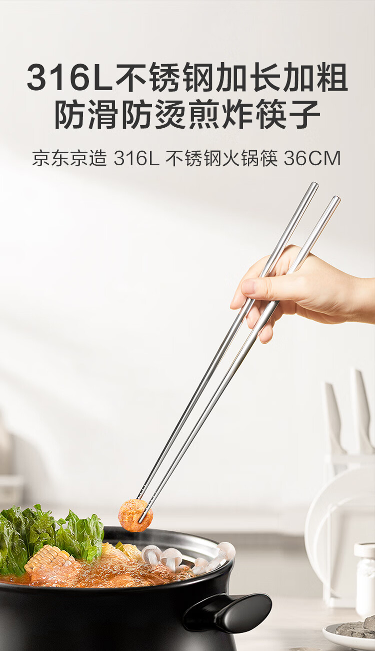 京东京造 筷子 家用食品接触级316L不锈钢加长火锅筷【抑菌防滑】36cm*2双