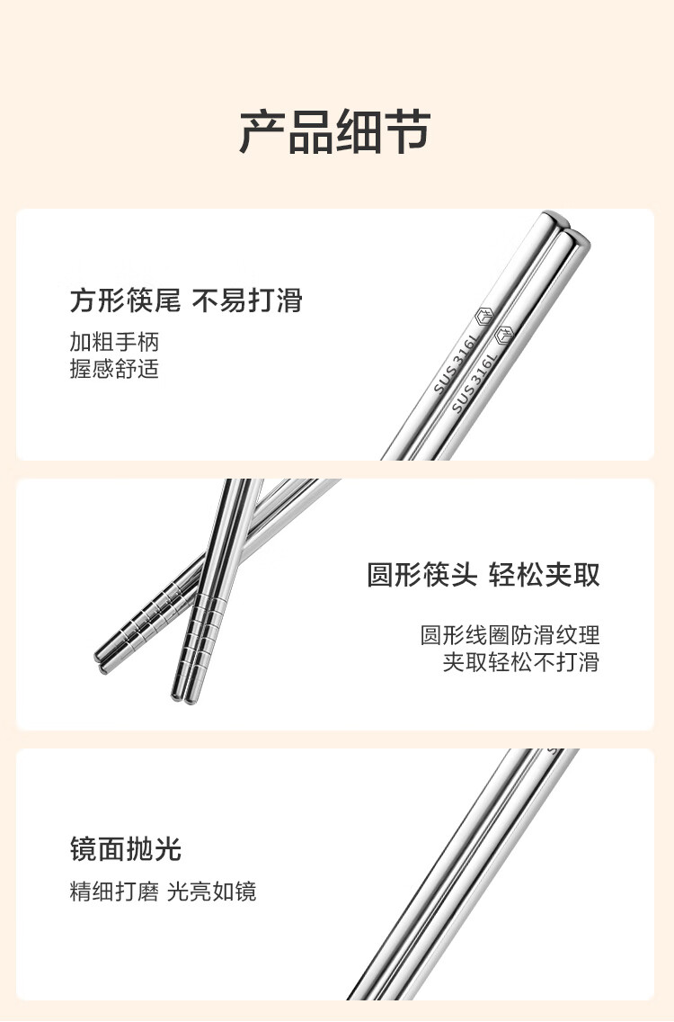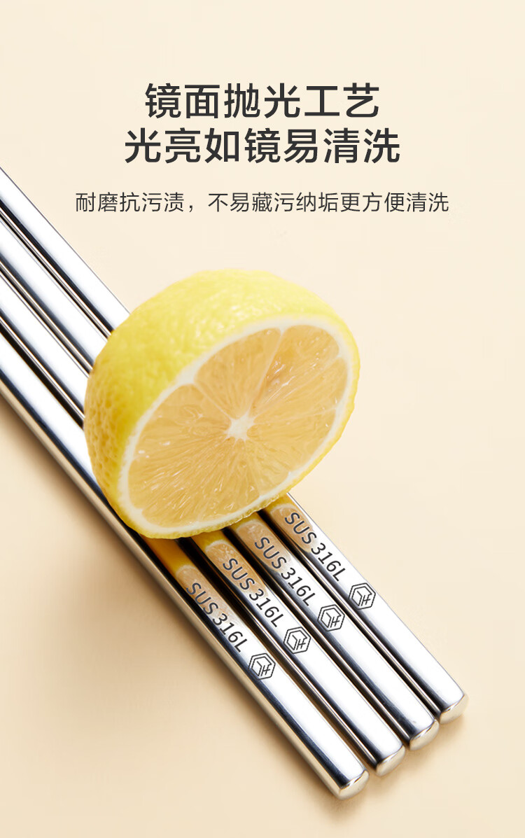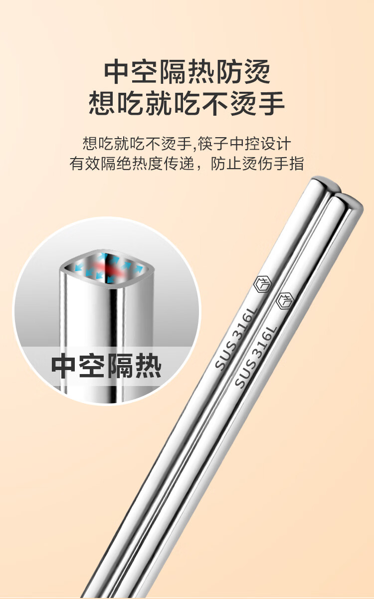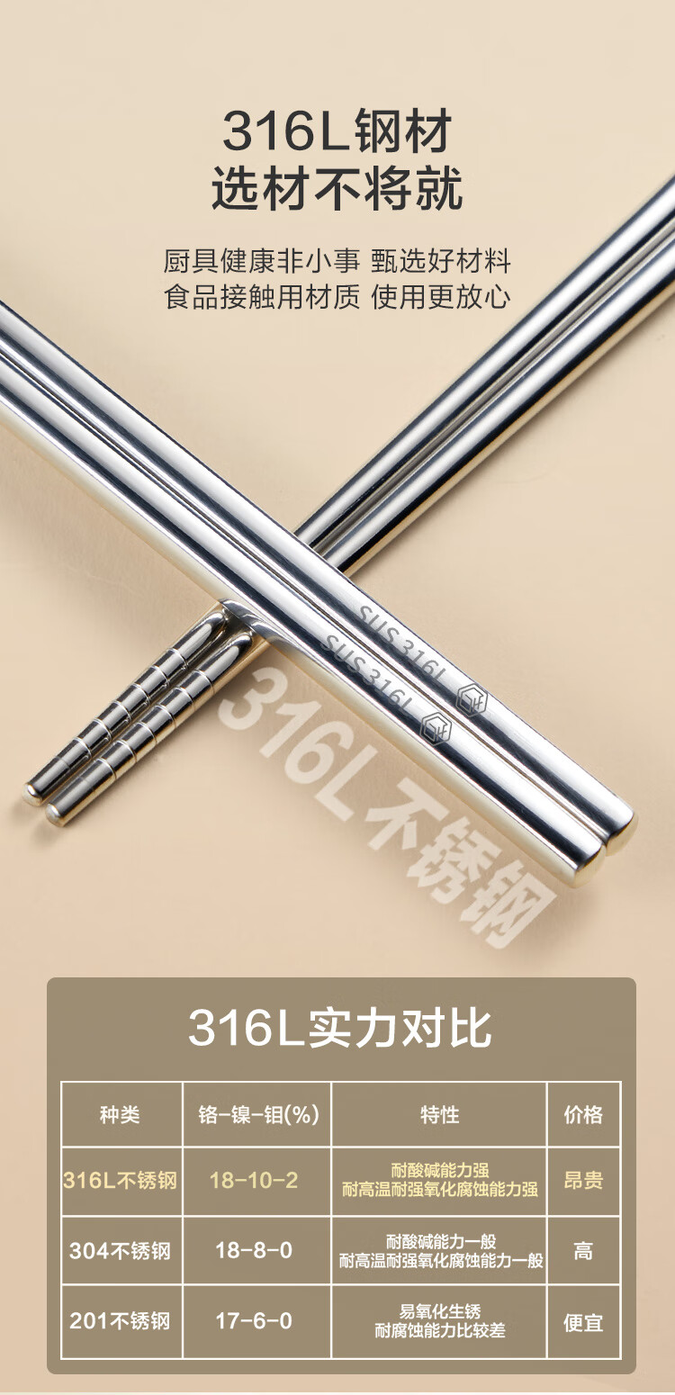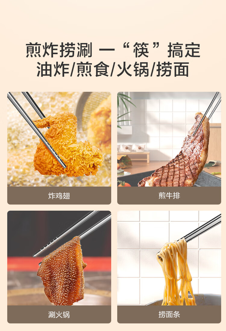 京东京造 筷子 家用食品接触级316L不锈钢加长火锅筷【抑菌防滑】36cm*2双