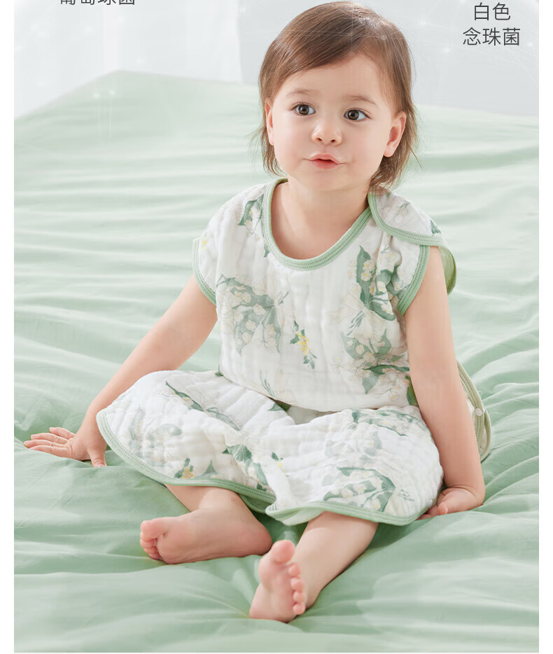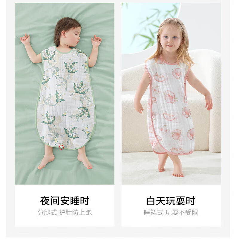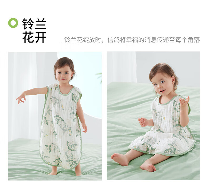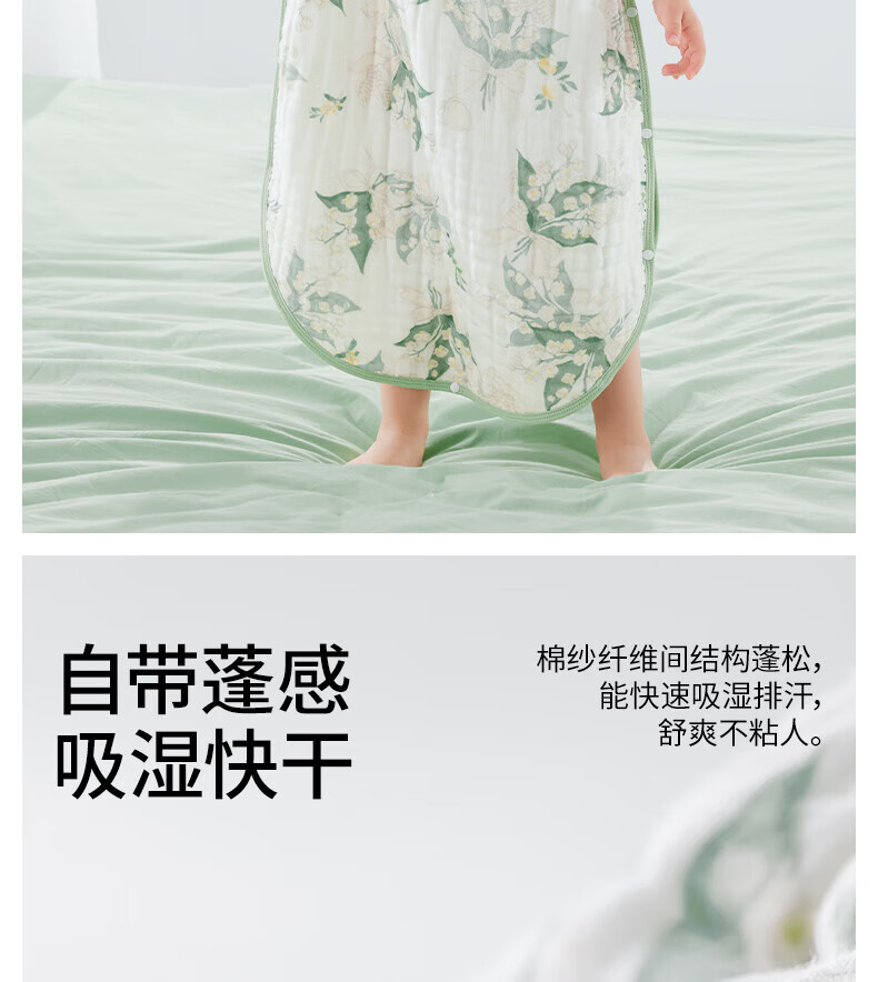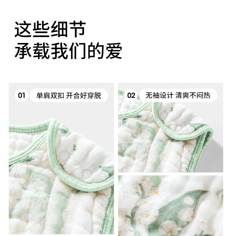 贝肽斯儿童纱布睡袋夏季薄款宝宝无袖背心睡衣防踢被子神器前4后2铃兰 L