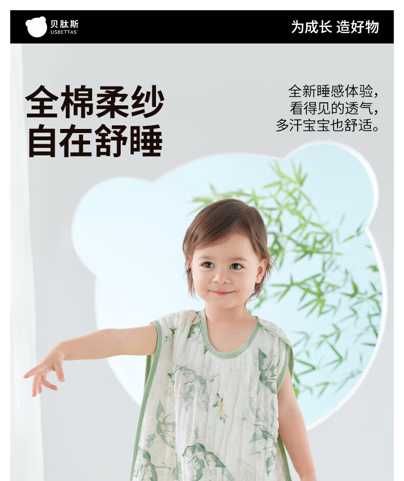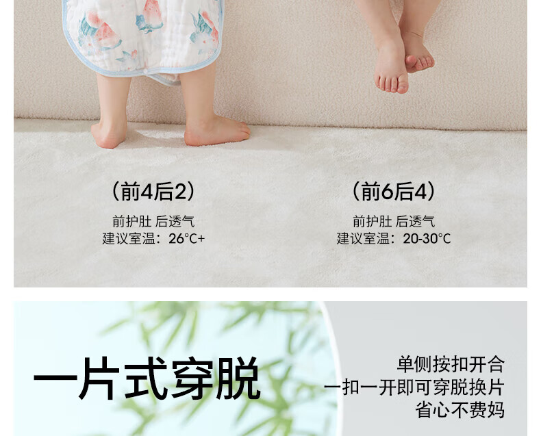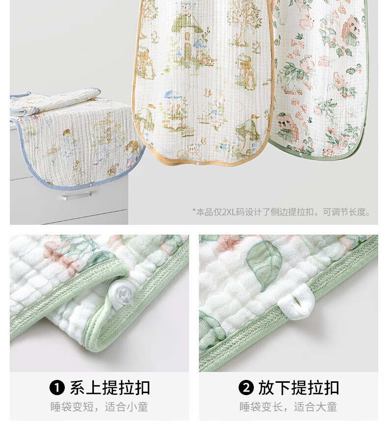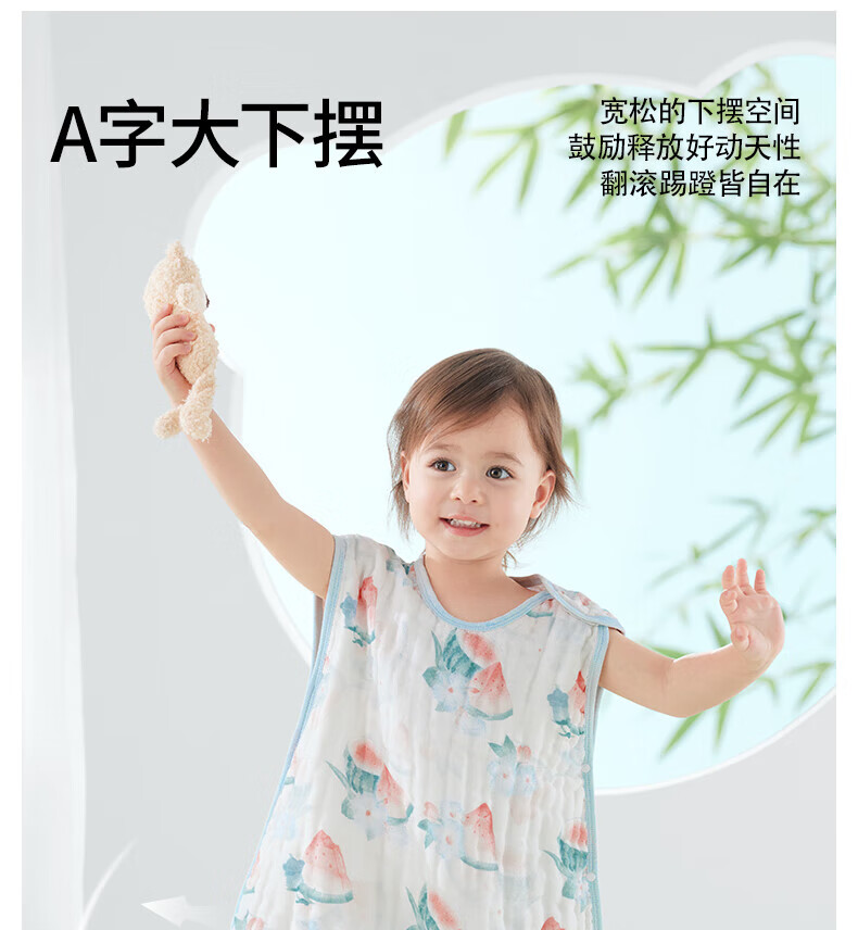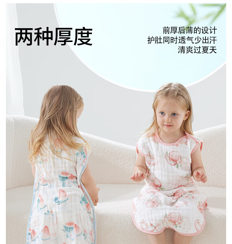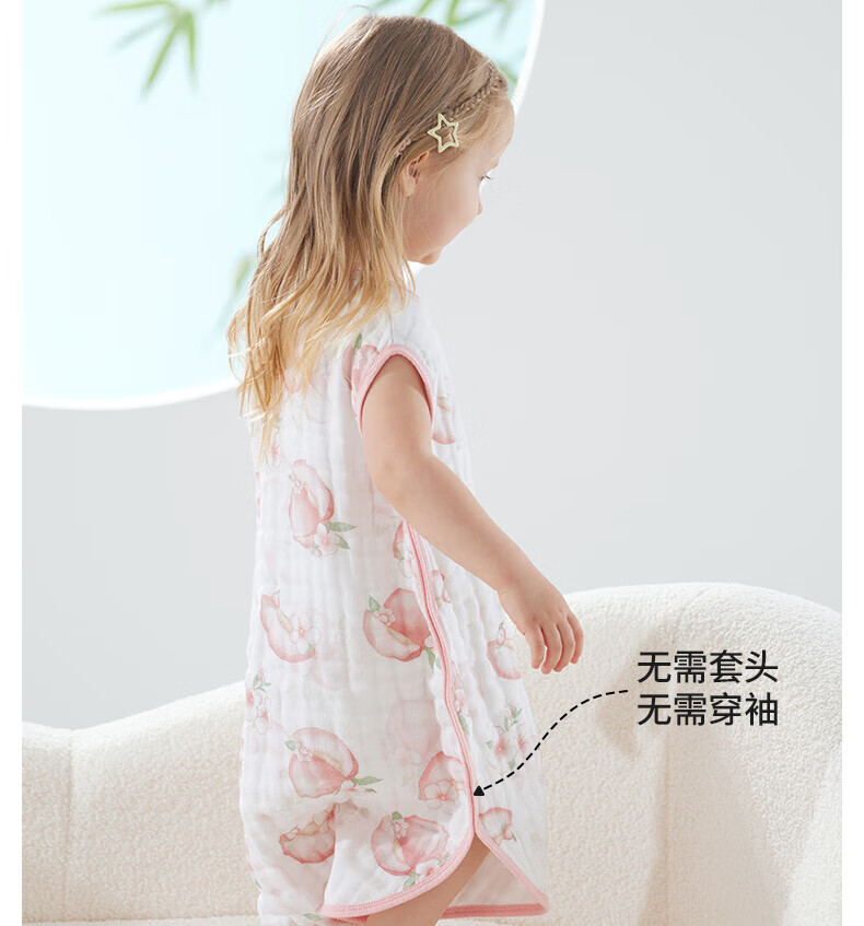 贝肽斯儿童纱布睡袋夏季薄款宝宝无袖背心睡衣防踢被子神器前4后2铃兰 L