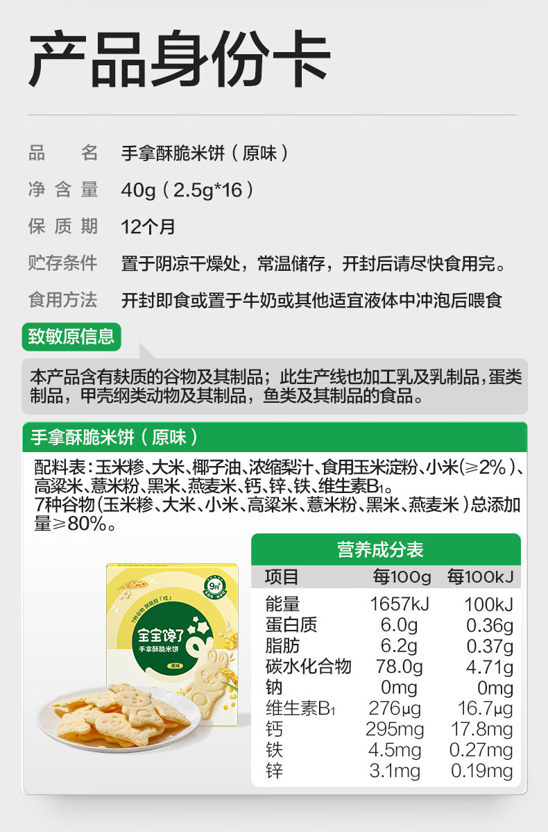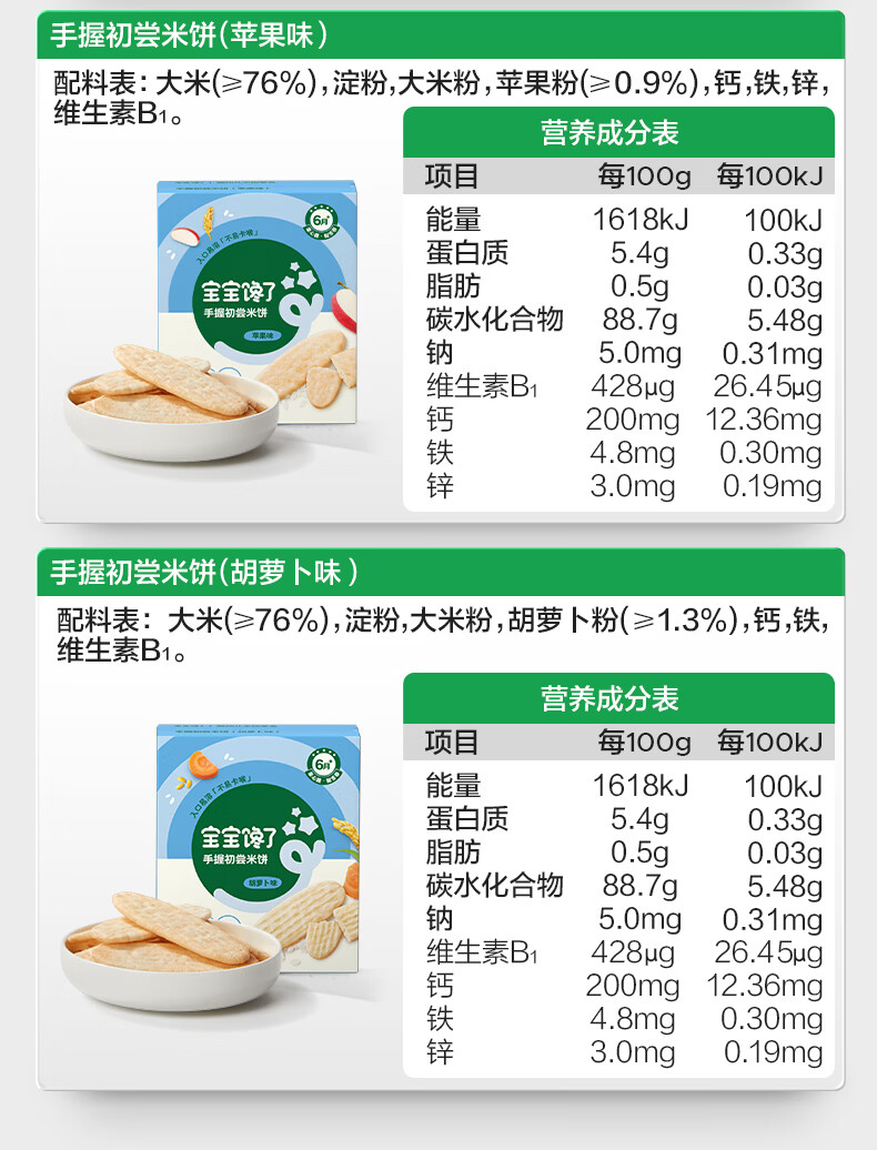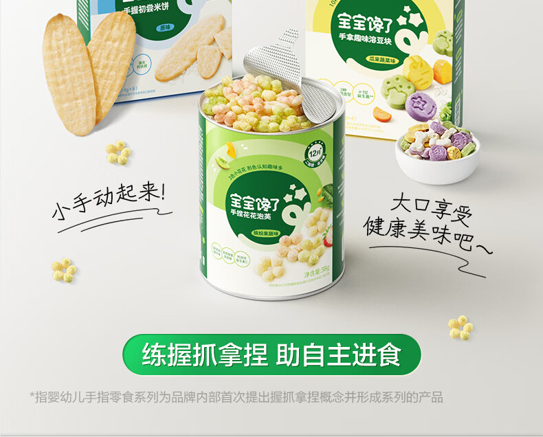 宝宝馋了婴幼儿手指零食系列米饼溶豆泡芙6月+宝宝磨牙棒儿童饼干营养辅食 【9月+】手拿酥脆米饼(原味)40g