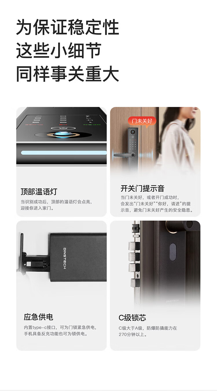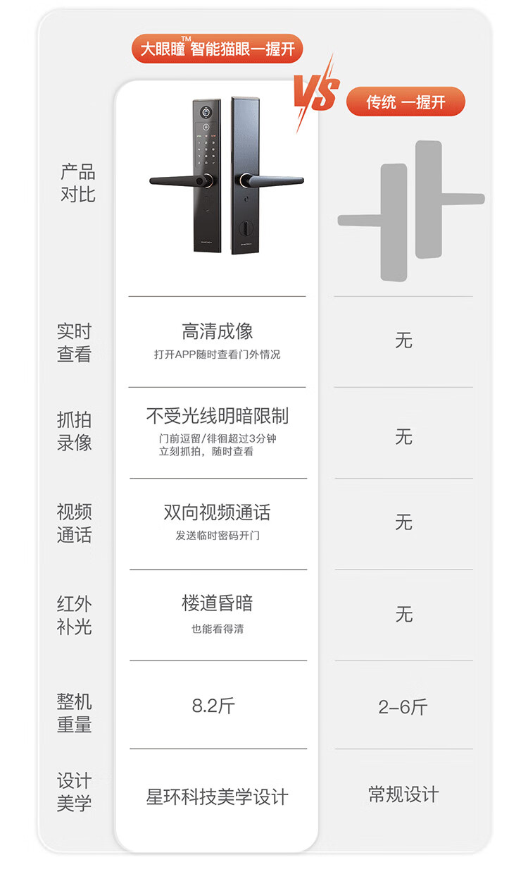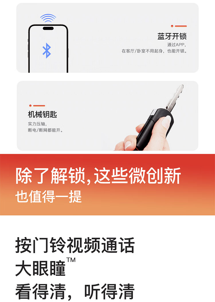 鼎山科技 人脸识别全自动智能门锁指纹锁家用电子锁防盗门锁密码锁A8PLUS 【人脸款】A8 Plus中国红