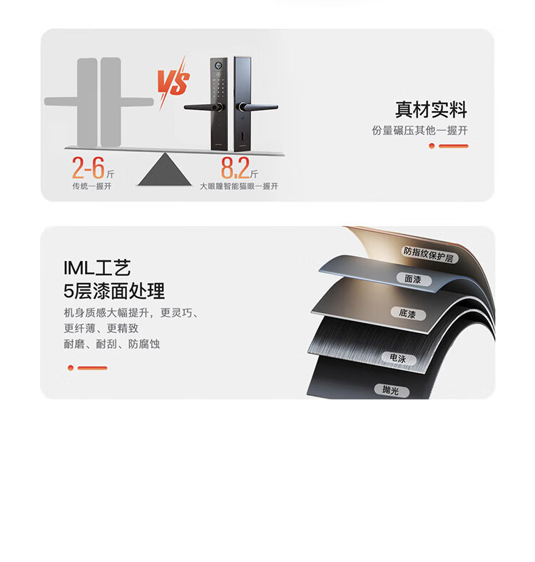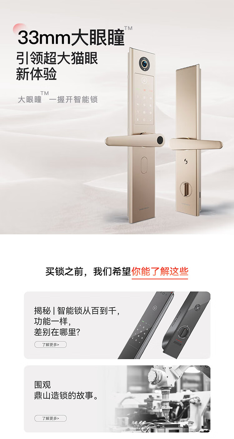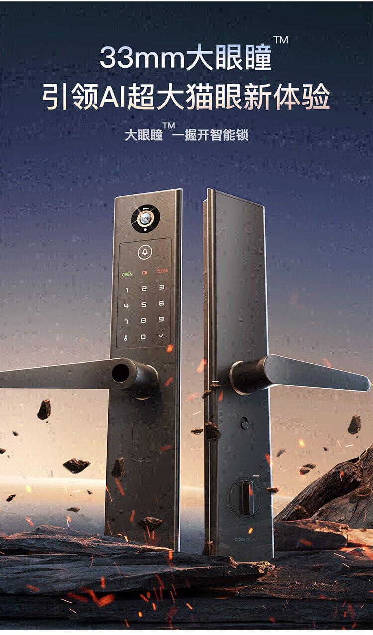 鼎山科技猫眼可视智能门锁家用大门密码锁 入户电子锁 防盗门指纹锁H8C 暮烟灰